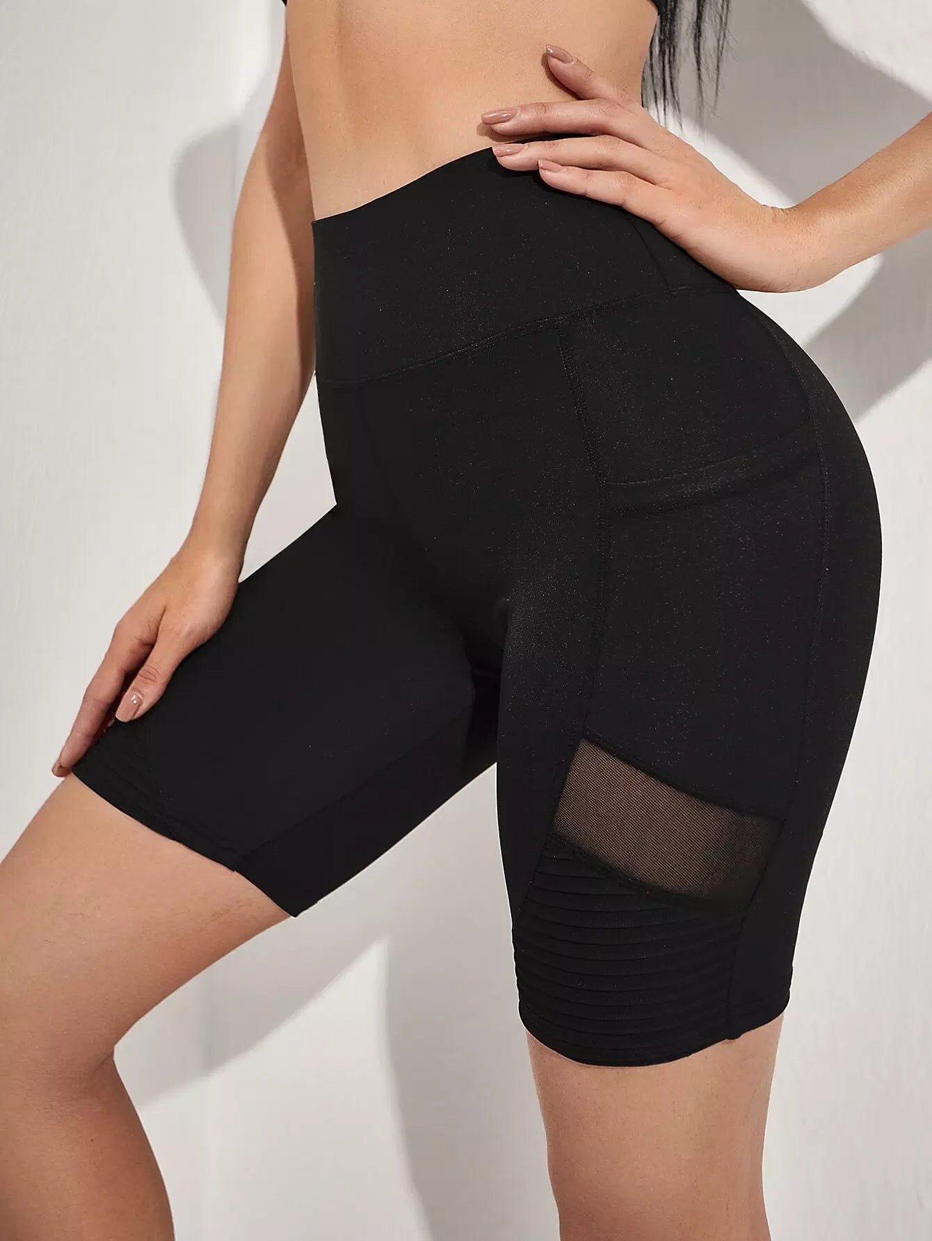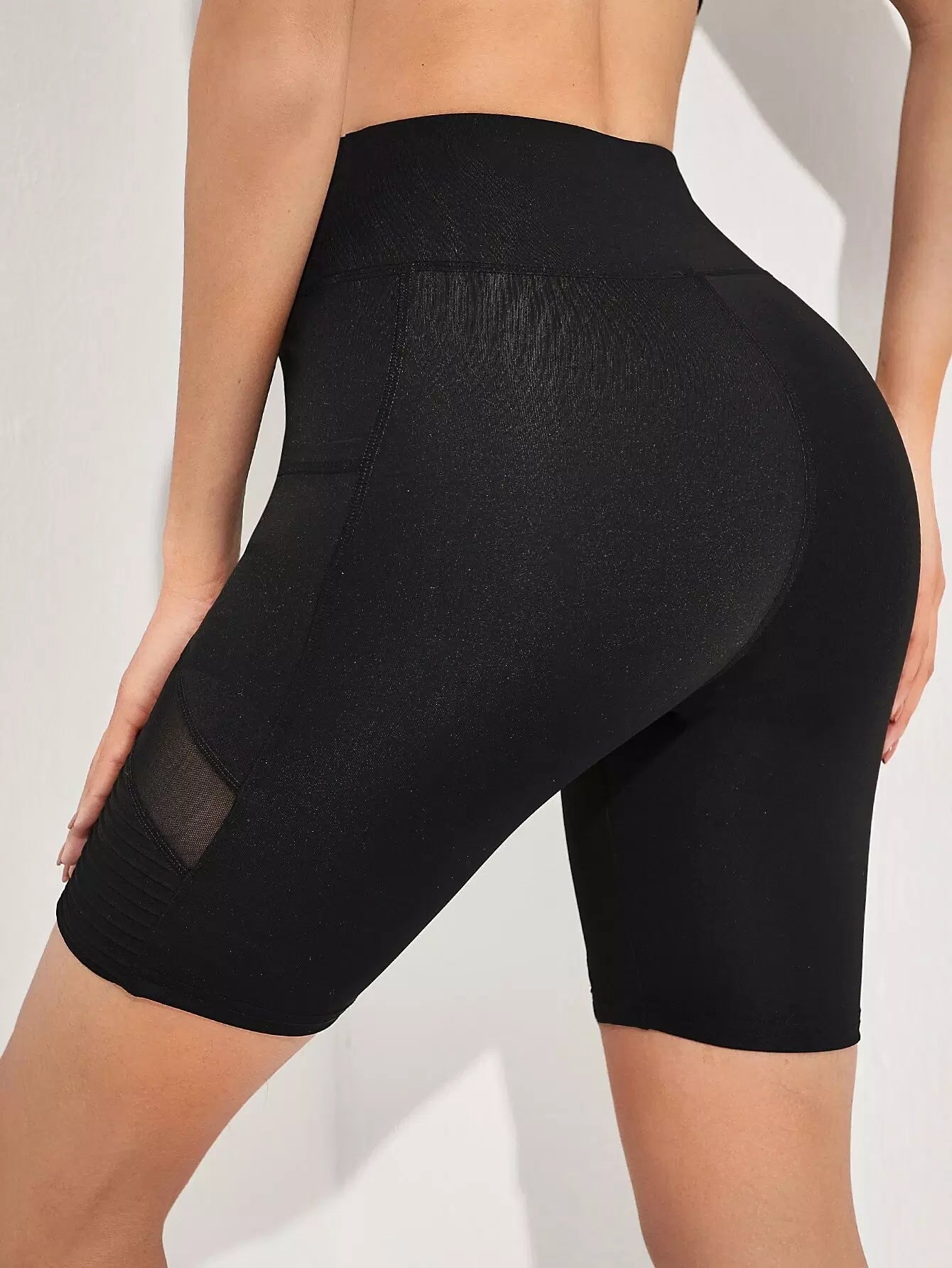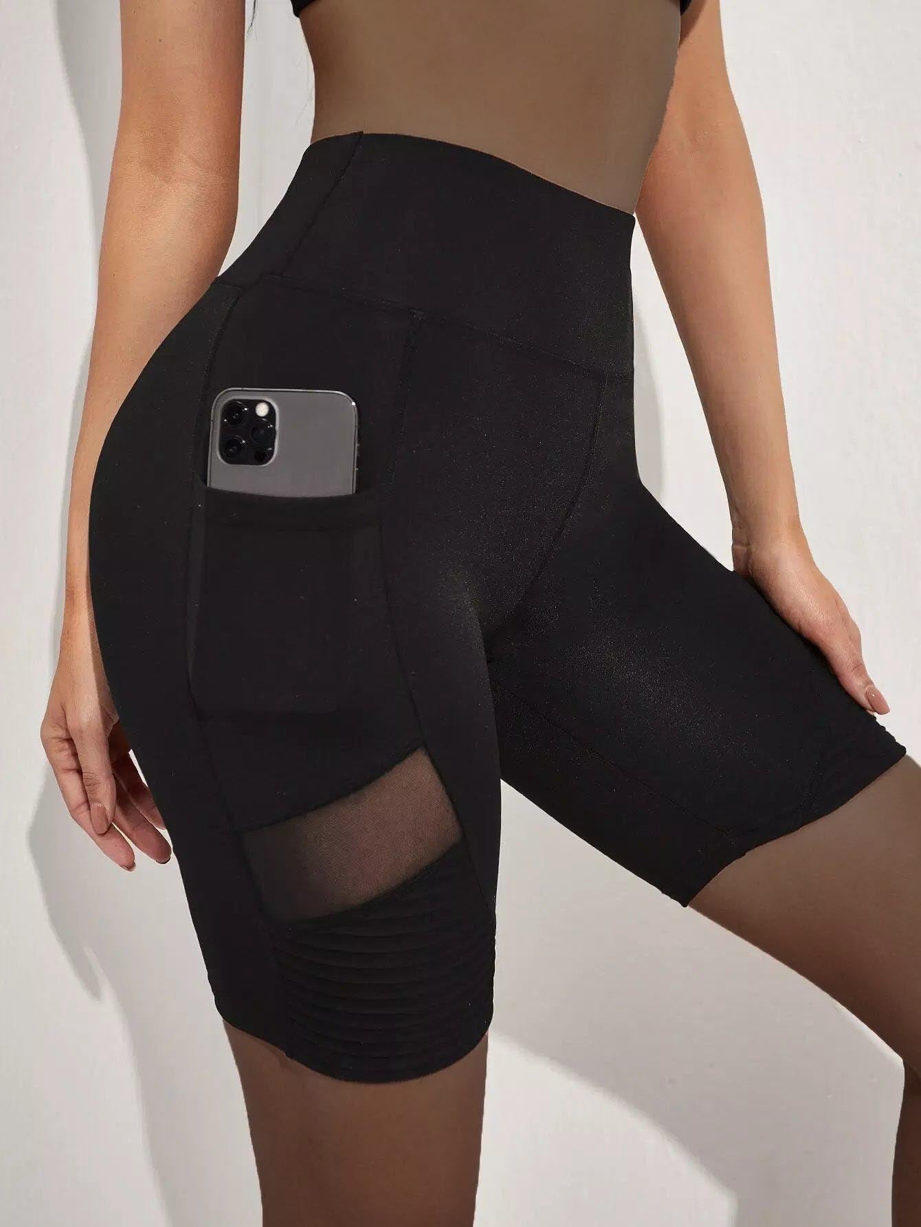 شورت رياضي شبكي بلون متباين مع جيب للهاتف