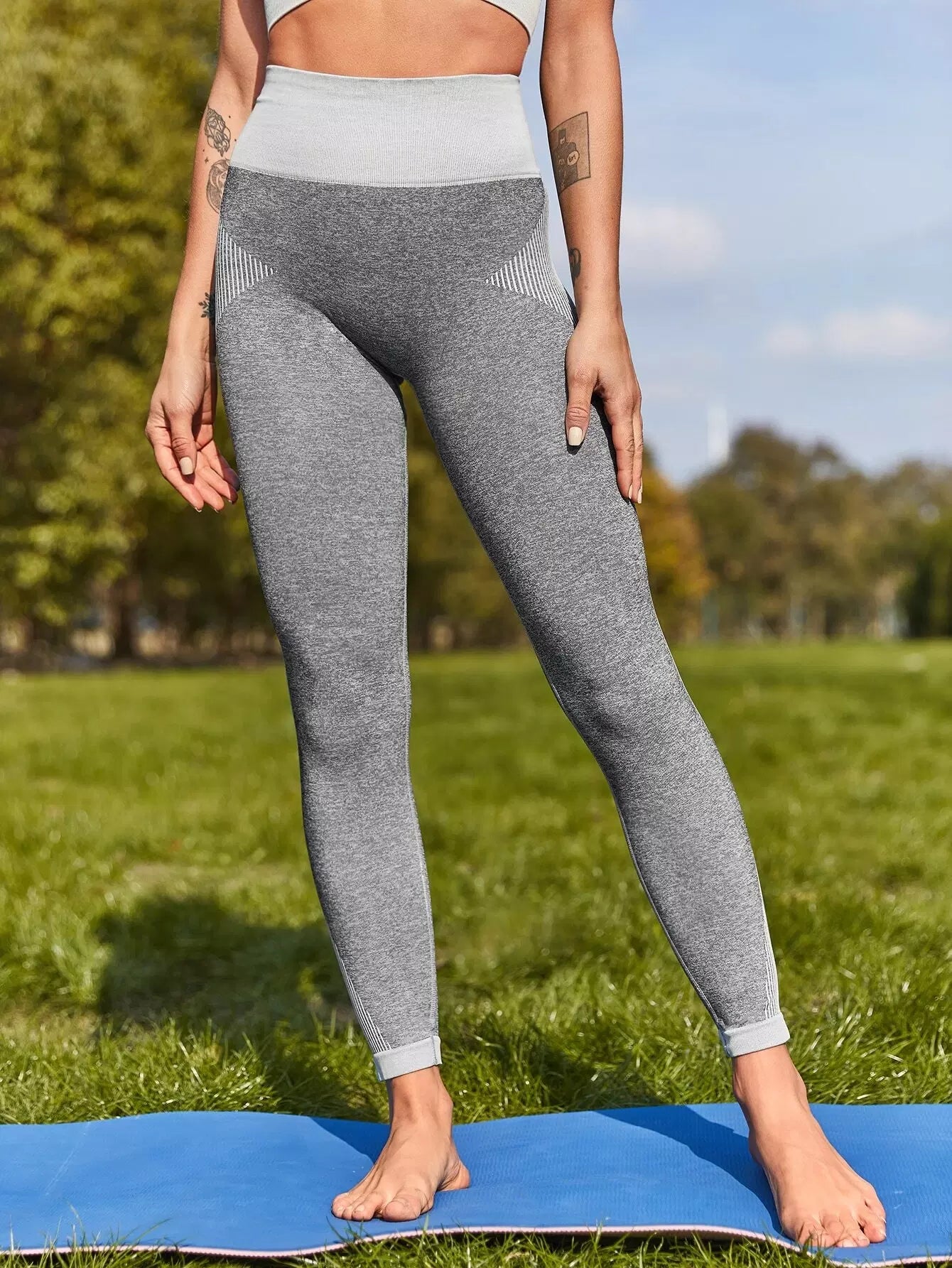 بنطلون ضيق رياضي عريض الخصر عريض الخصر بلون مغاير