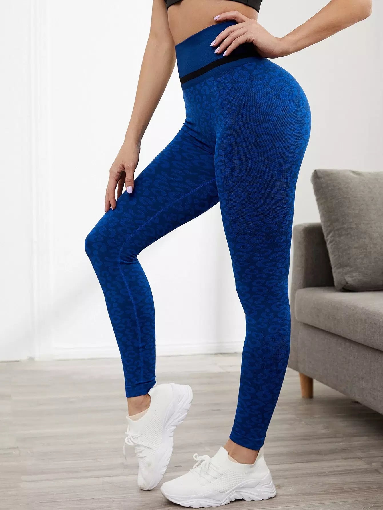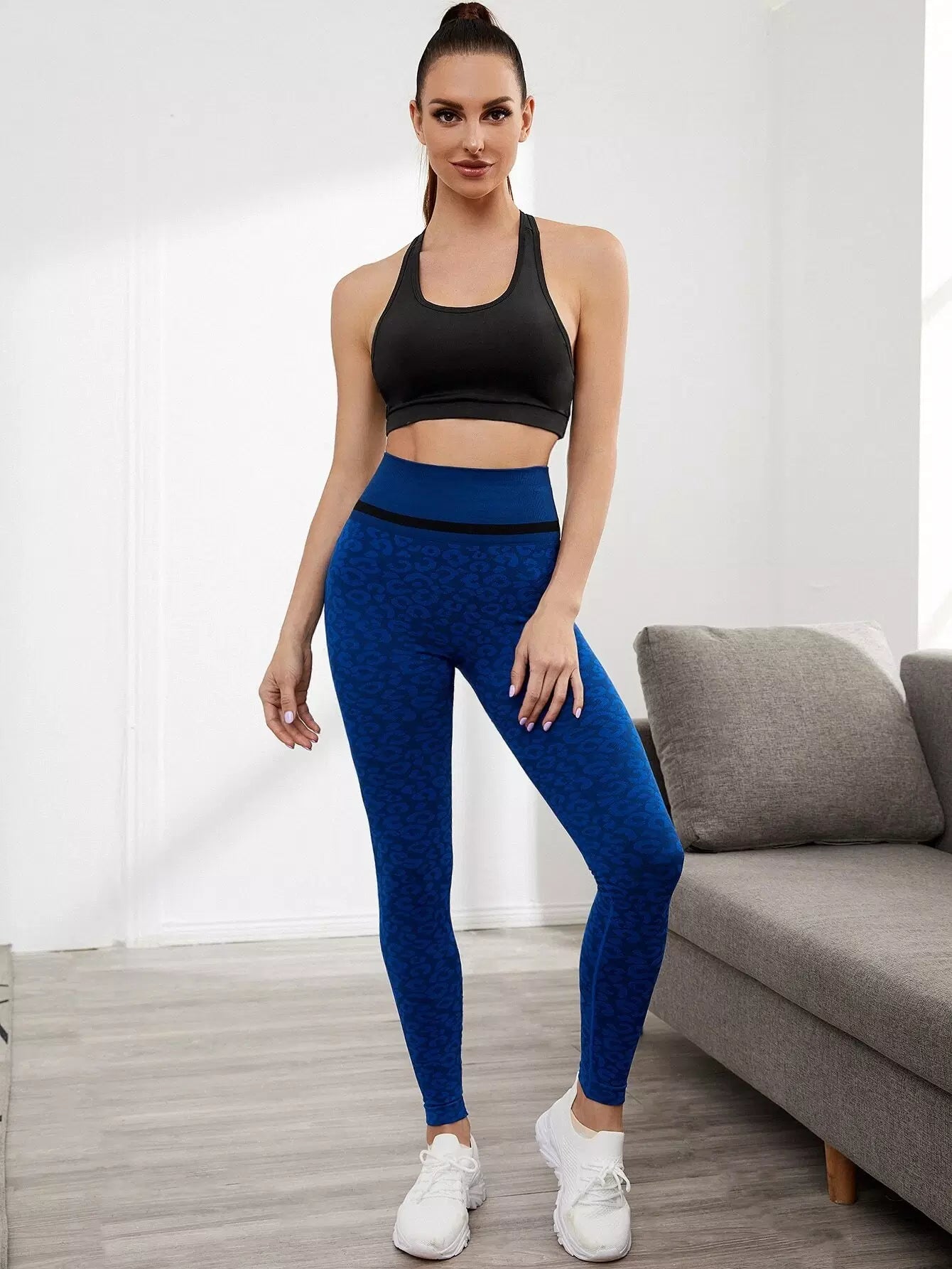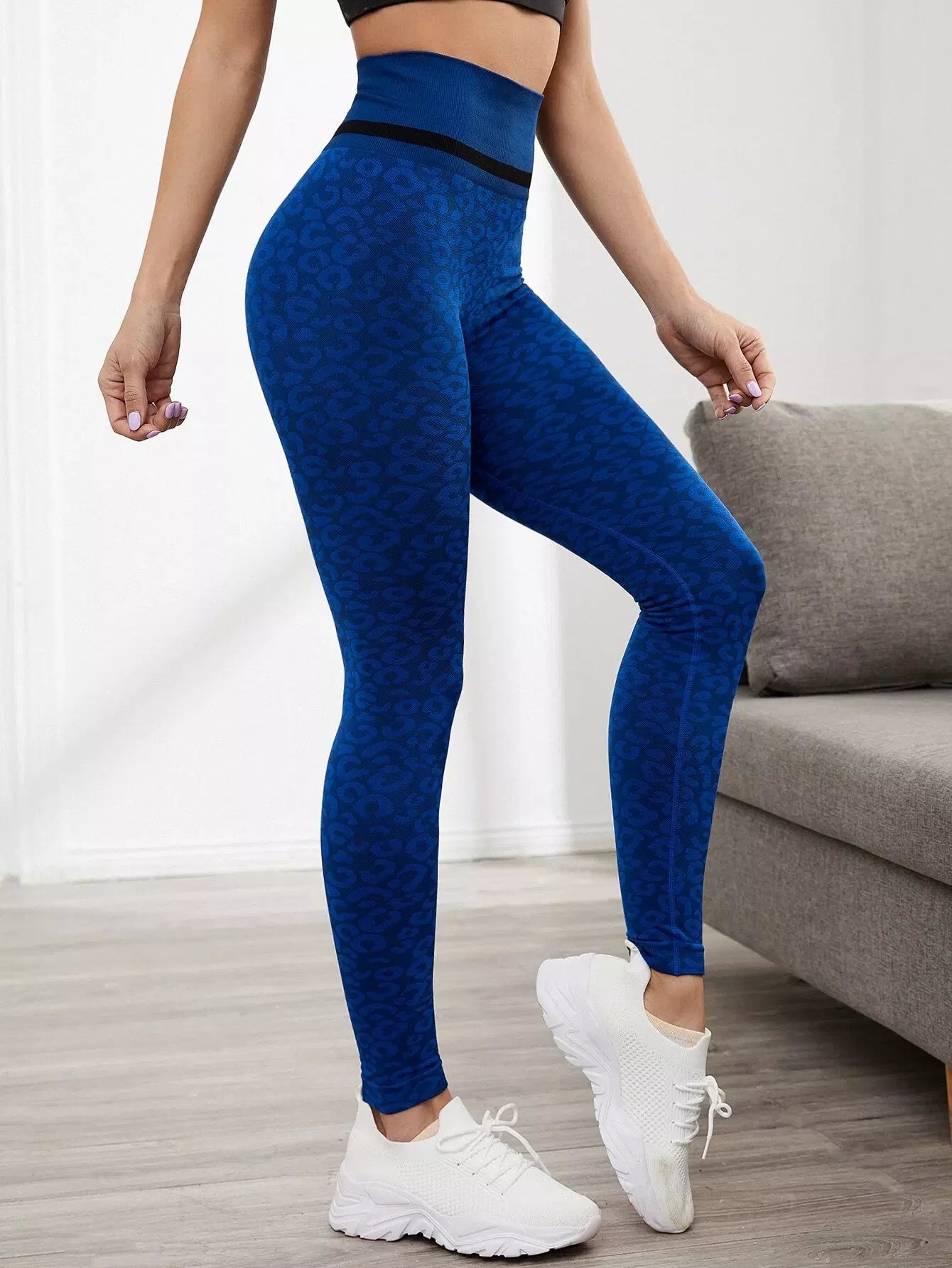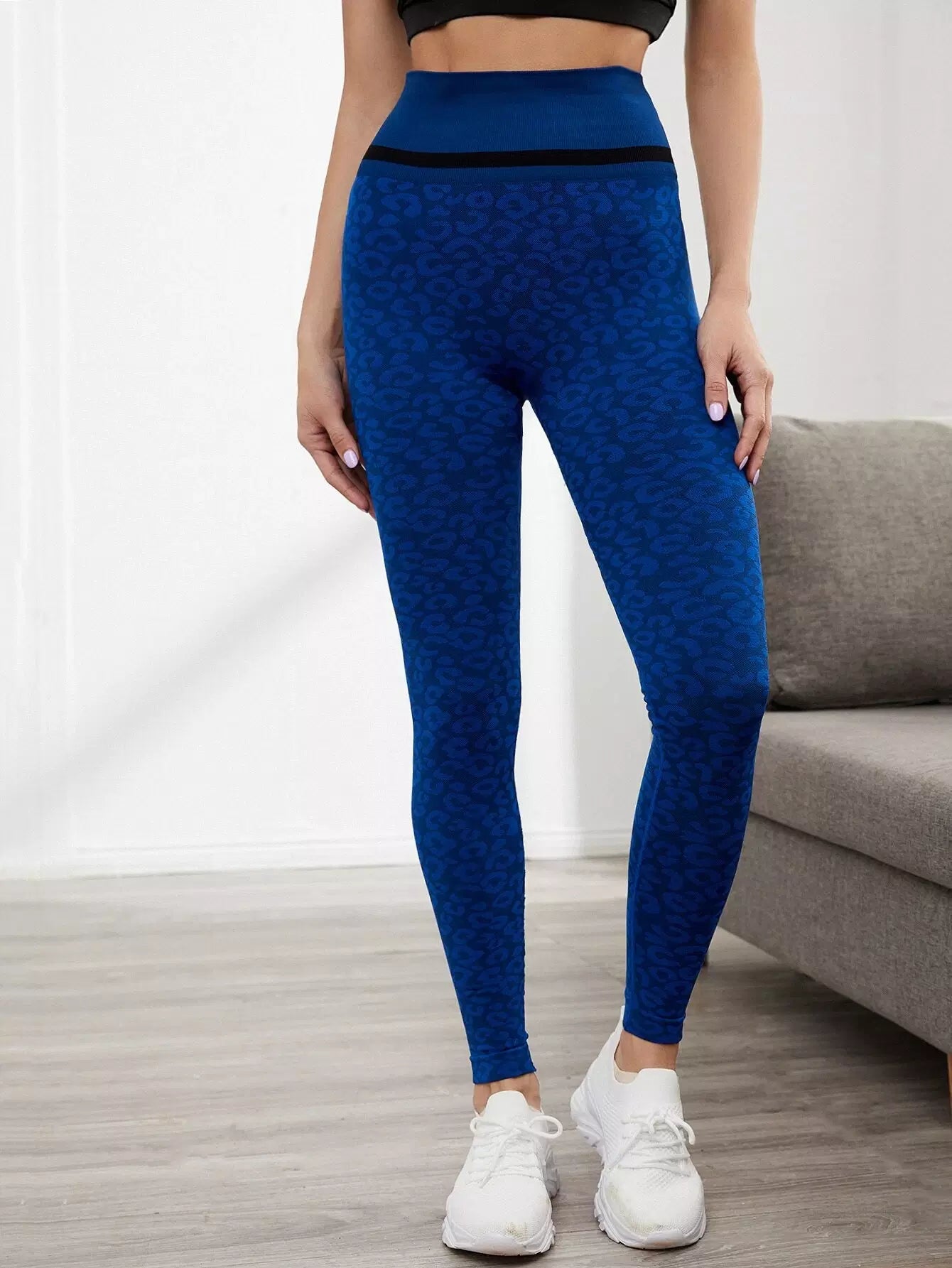 للنساء - بنطال ضيق رياضي بطبعة دلماسية وحزام خصر عريض