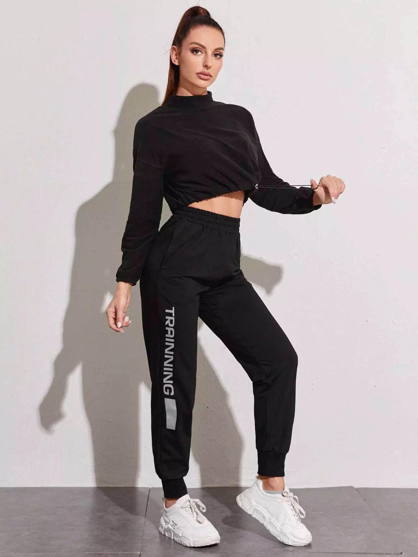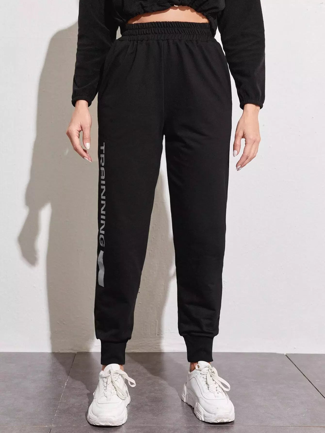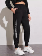 بنطلون رياضي بخصر مطاطي مزين برسومات حروف مرنة