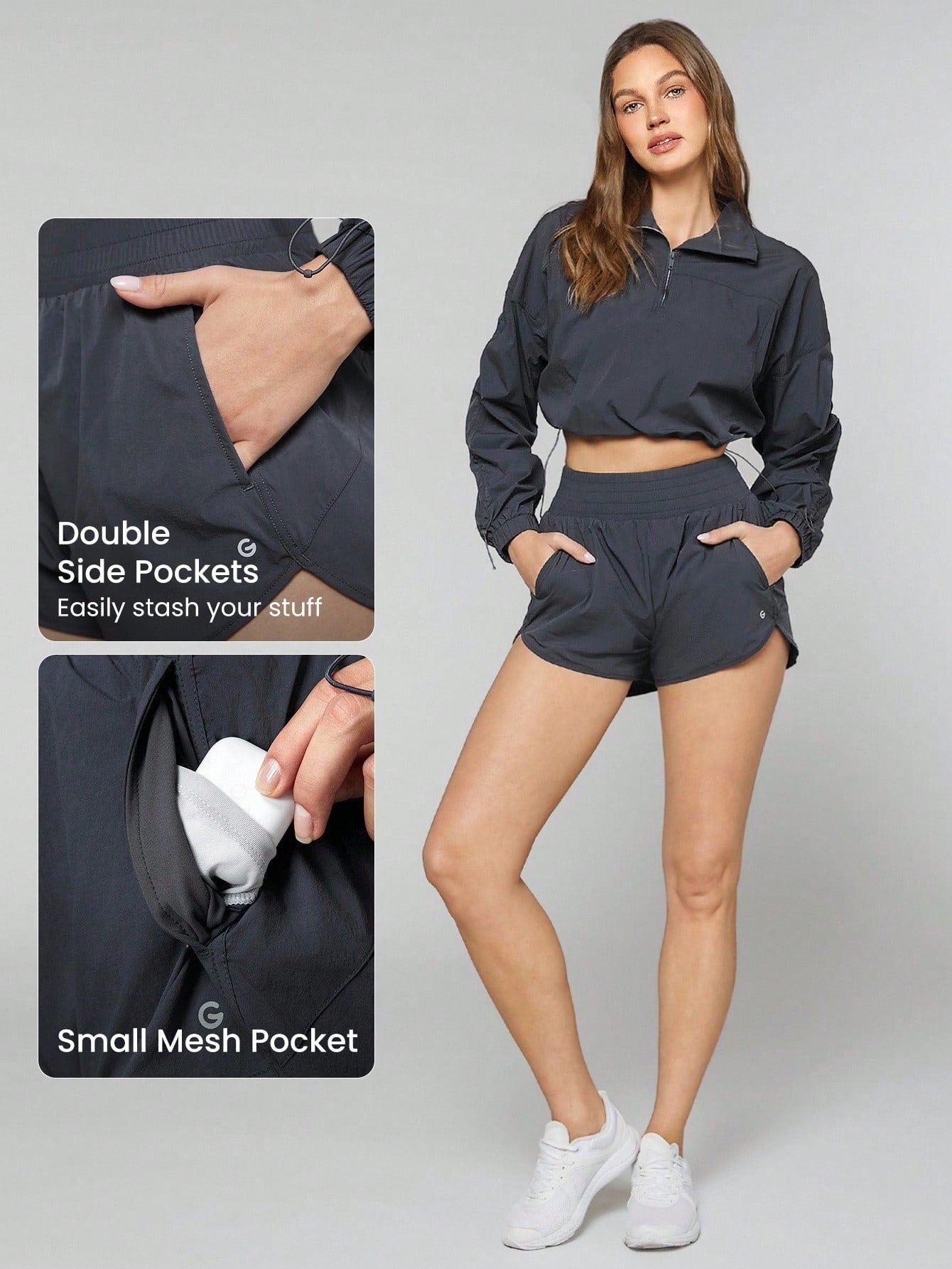 GLOWMODE Woven Airy High-Rise Butt-Lifting Running Shorts With Pockets Low Impact Casual Daily Gym Summer
