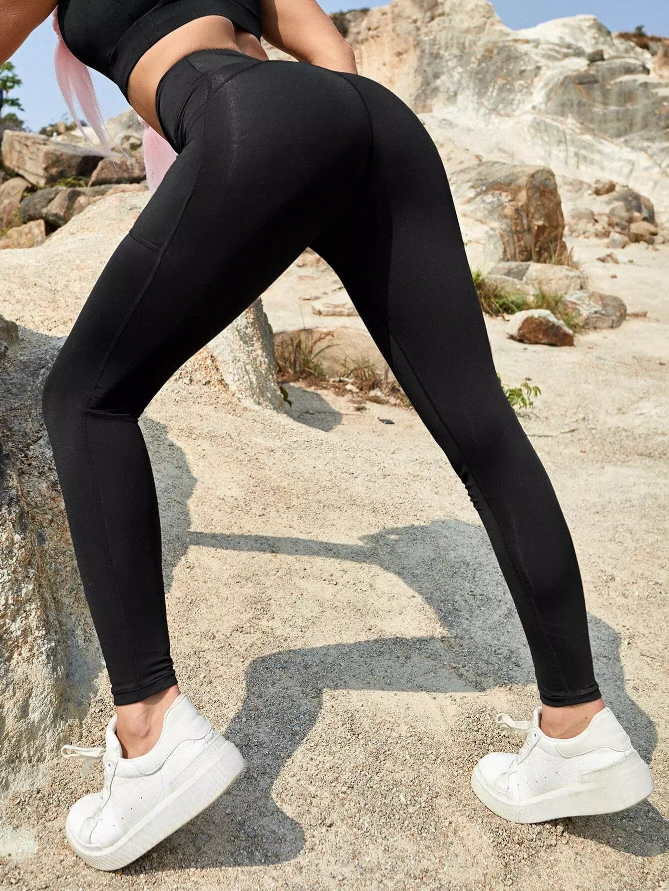 بنطال ضيق رياضي بخصر عالٍ مع جيب للهاتف