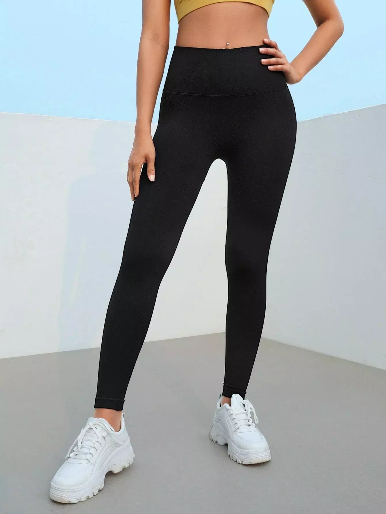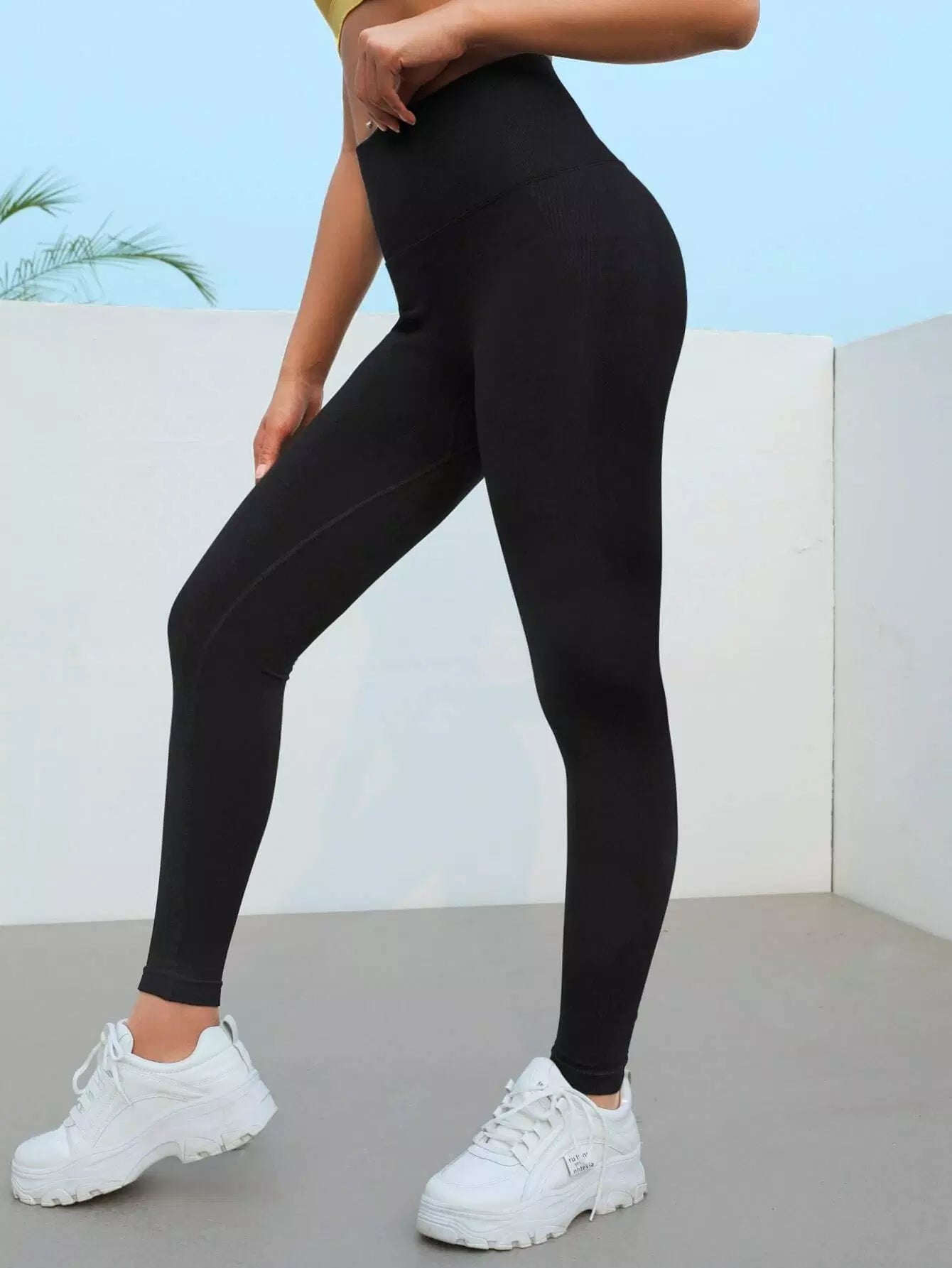 بنطلون ضيق رياضي بحزام خصر عريض بدون خياطة