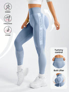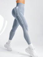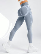 Seamluxe Sport Women's High Waisted Letter Print Olive Green Seamless Sports Leggings