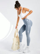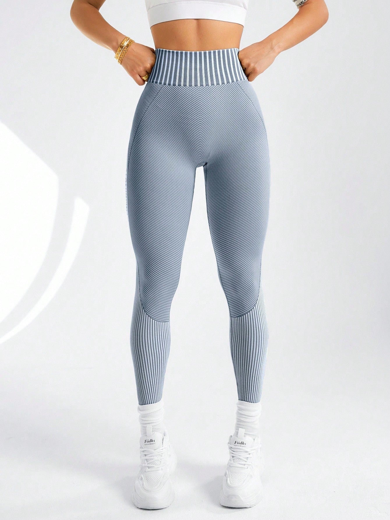 بنطلون رياضي نسائي عالي الخصر بدون درزات مطبوع عليه حروف من Seamluxe Sport باللون الأخضر الزيتوني