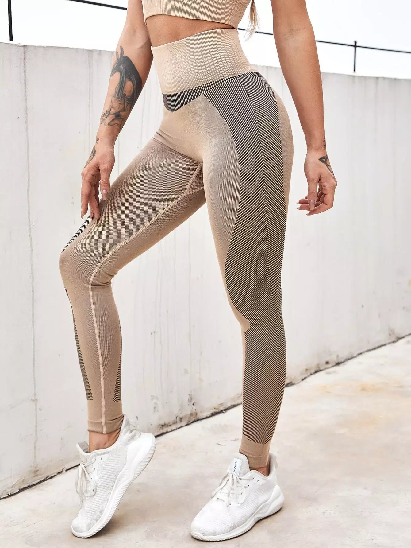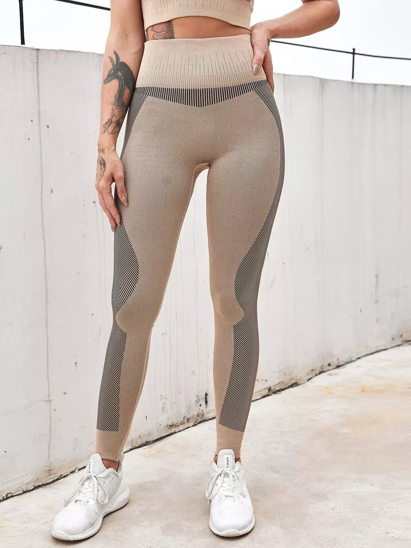 النساء - طماق رياضية مخططة واسعة النطاق على الخصر