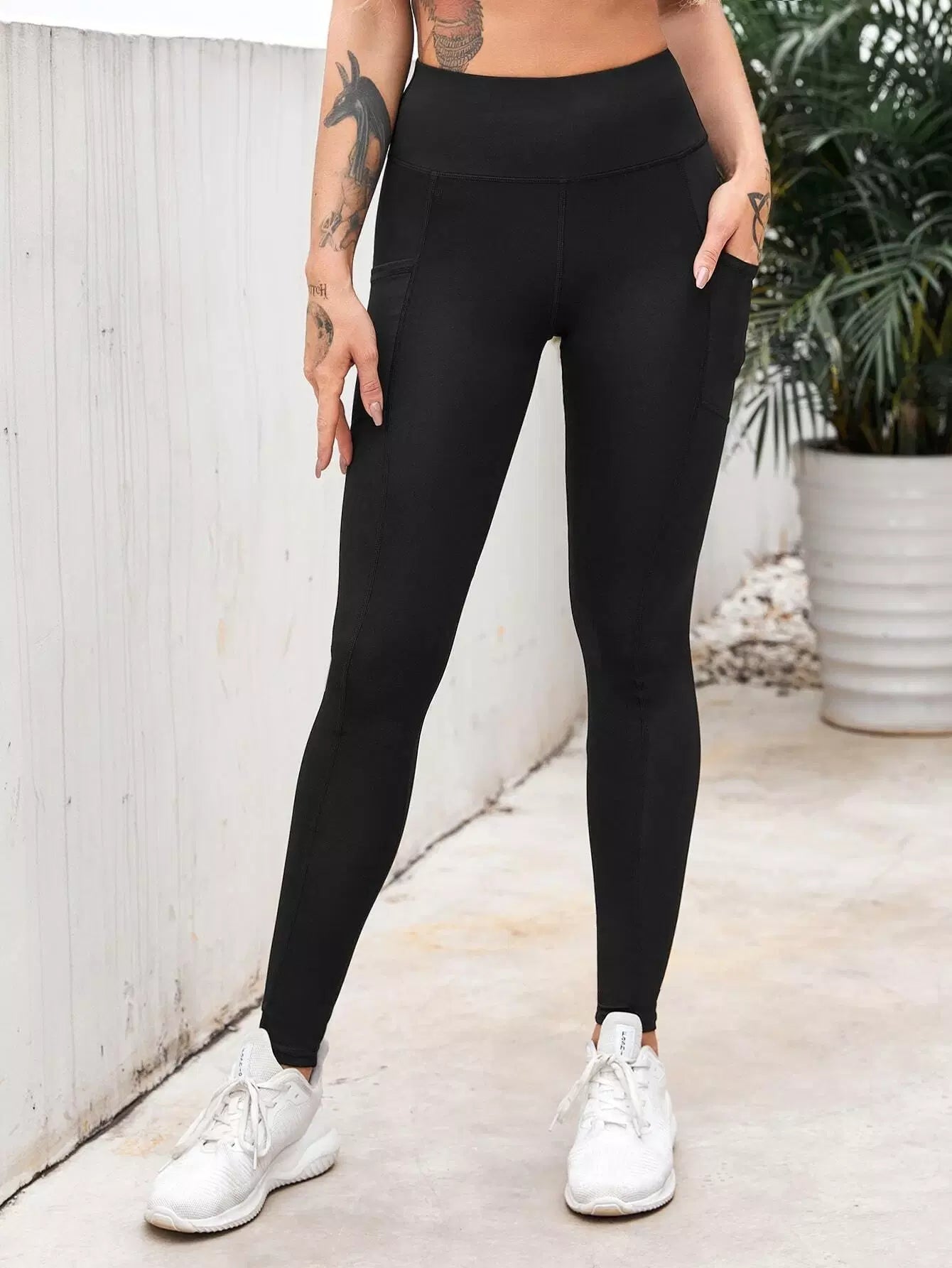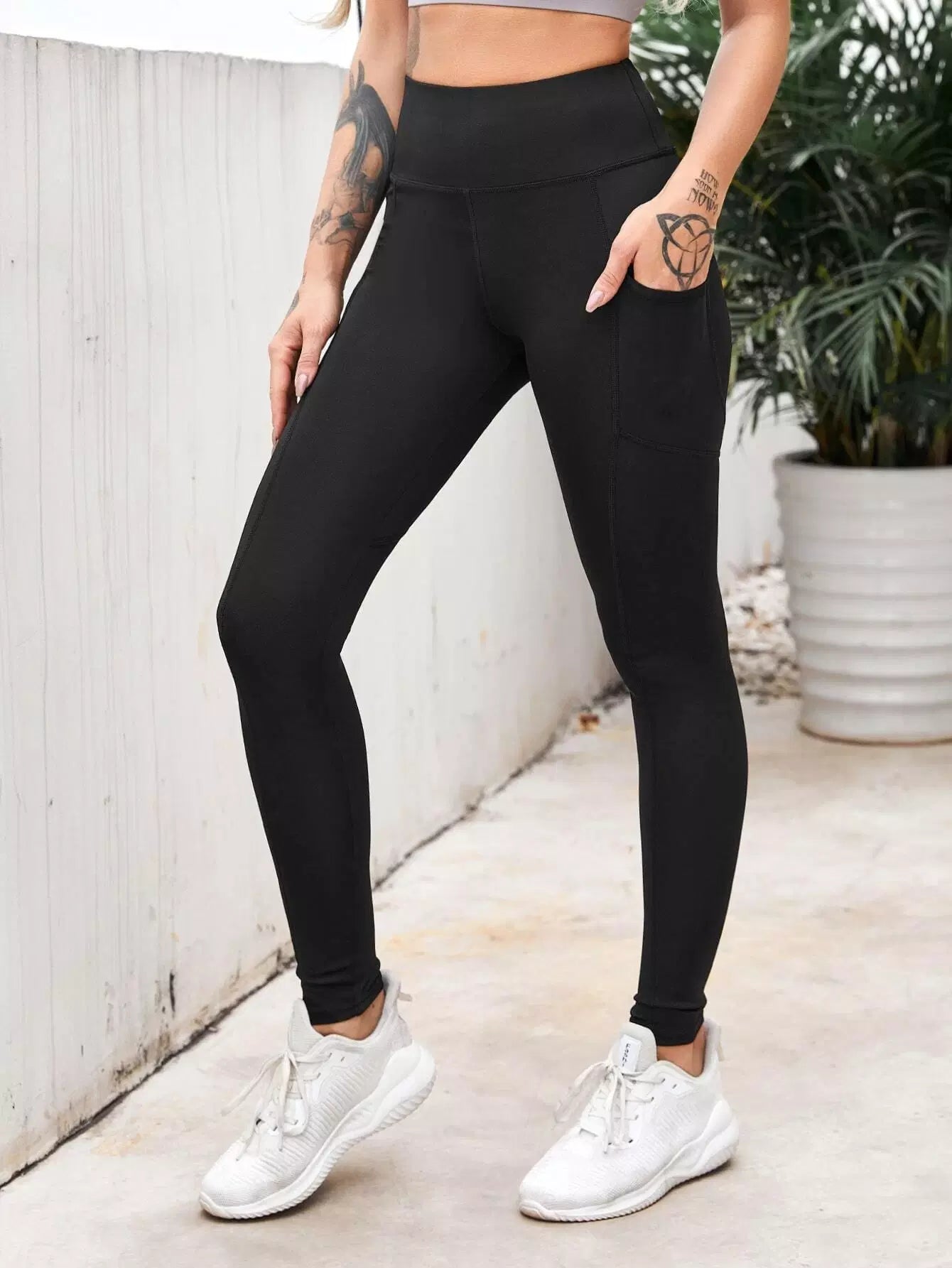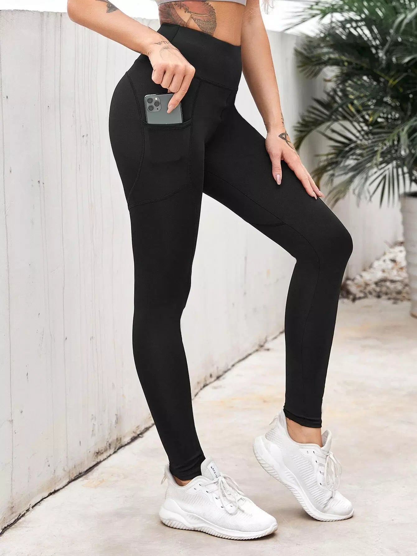 بنطلون ضيق رياضي عريض الخصر بحزام عريض مع جيب للهاتف