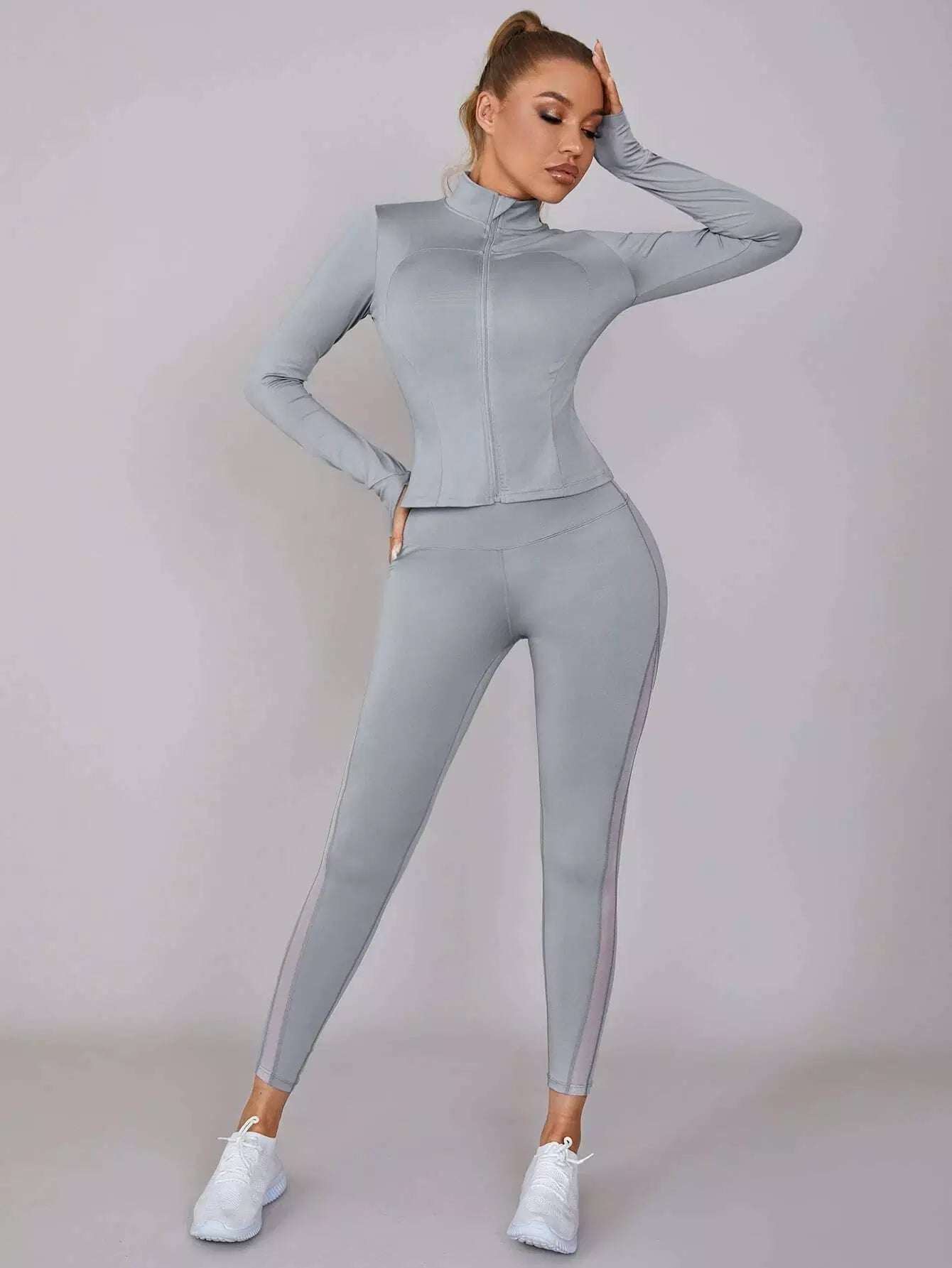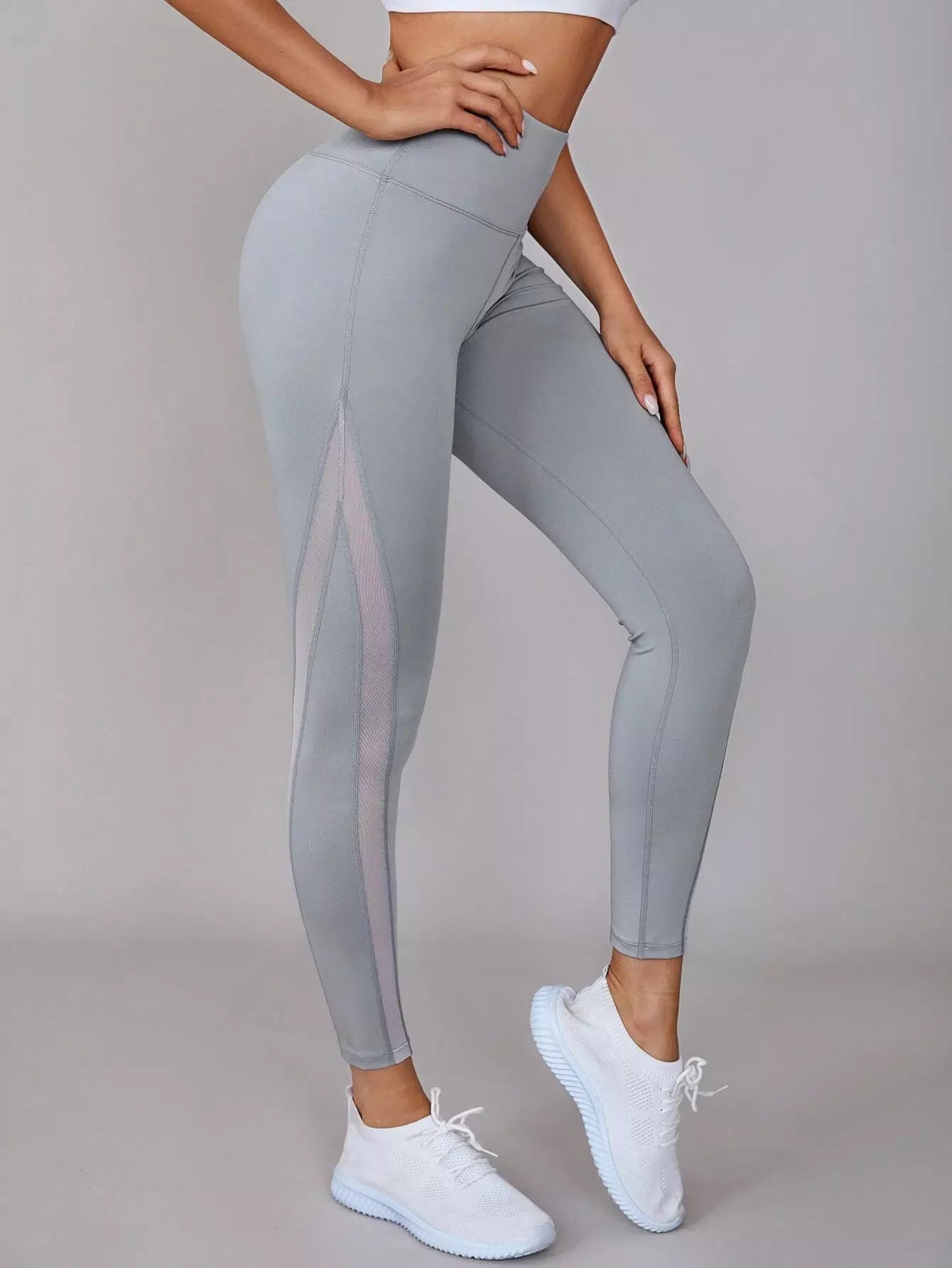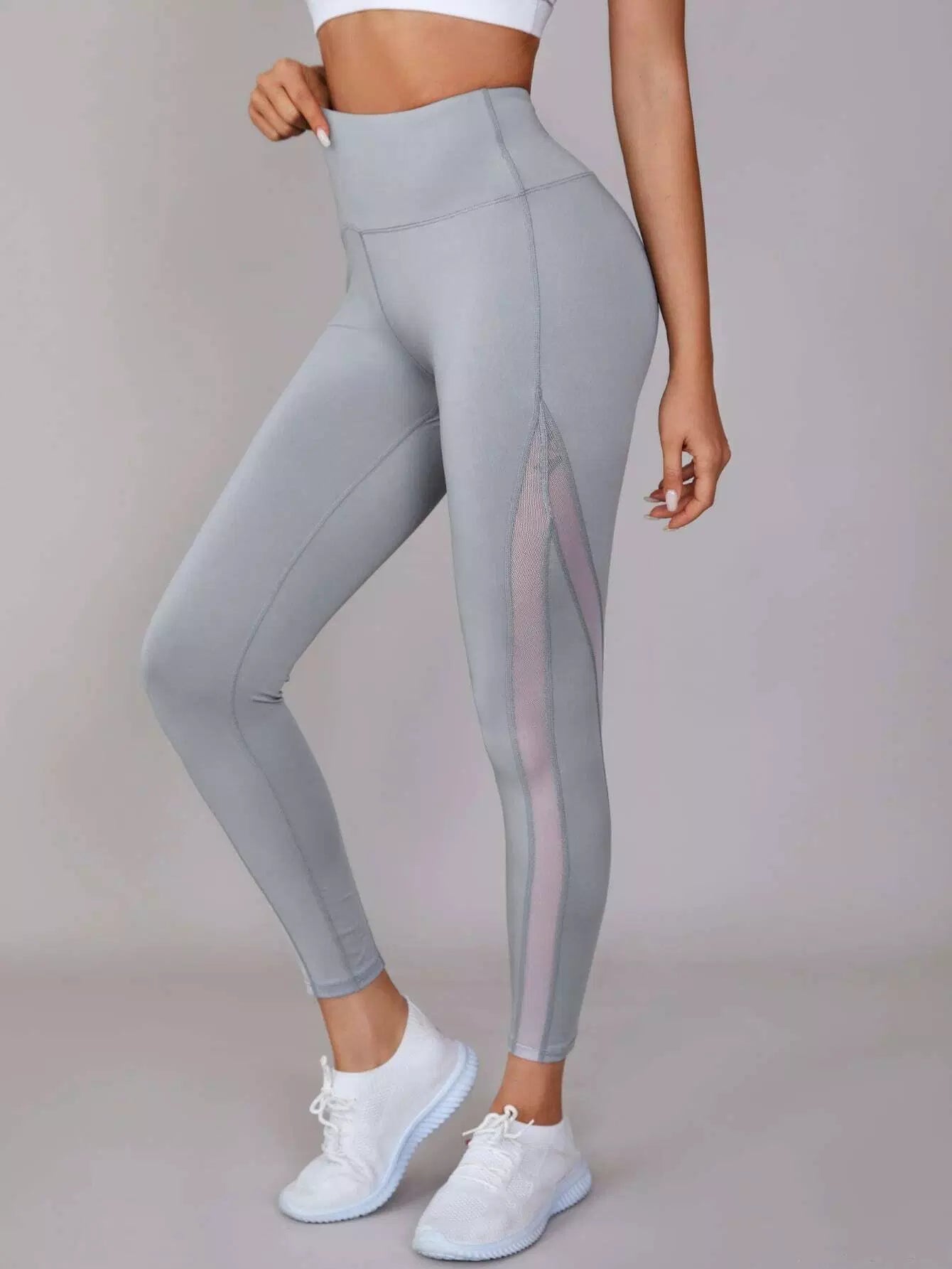 بنطلون ضيق رياضي بحزام خصر عريض شبكي داخلي