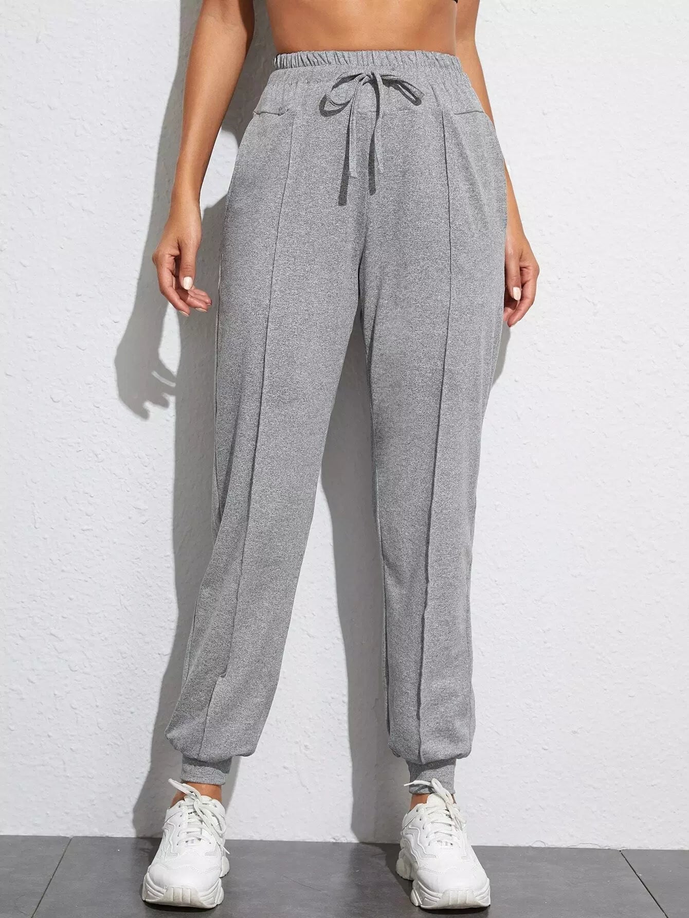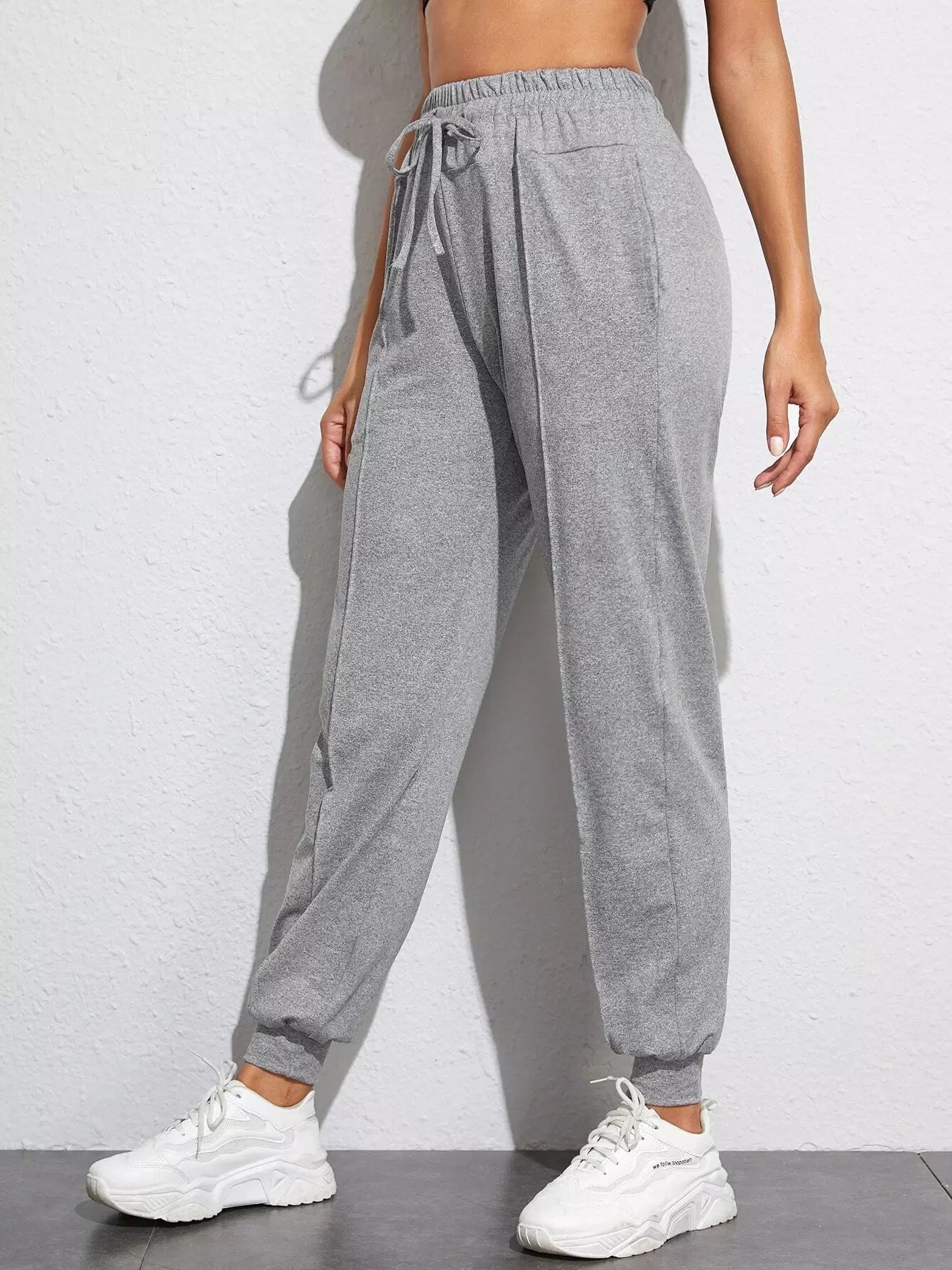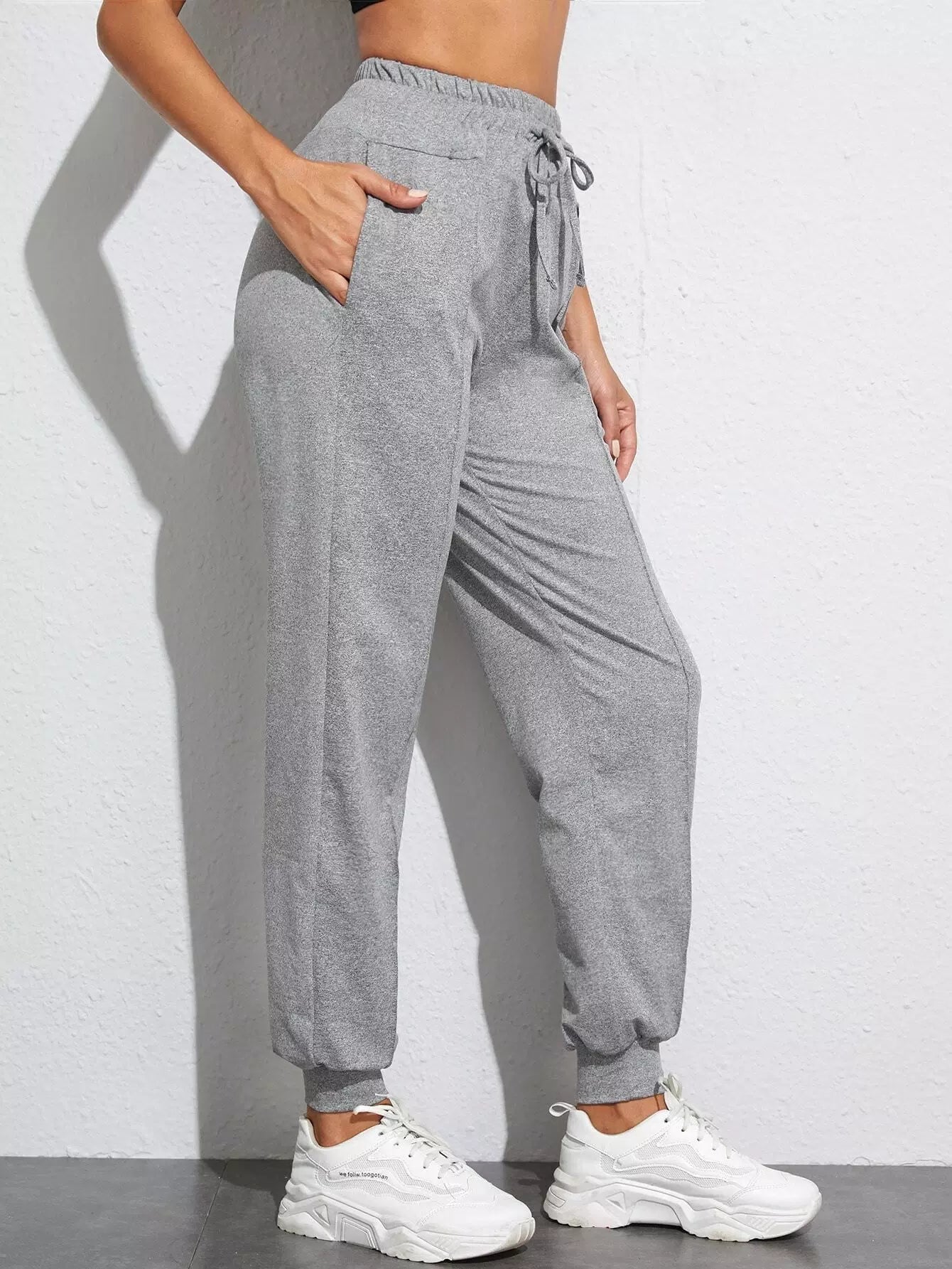بنطلون رياضي بجيب مائل سادة برباط خصر مائل