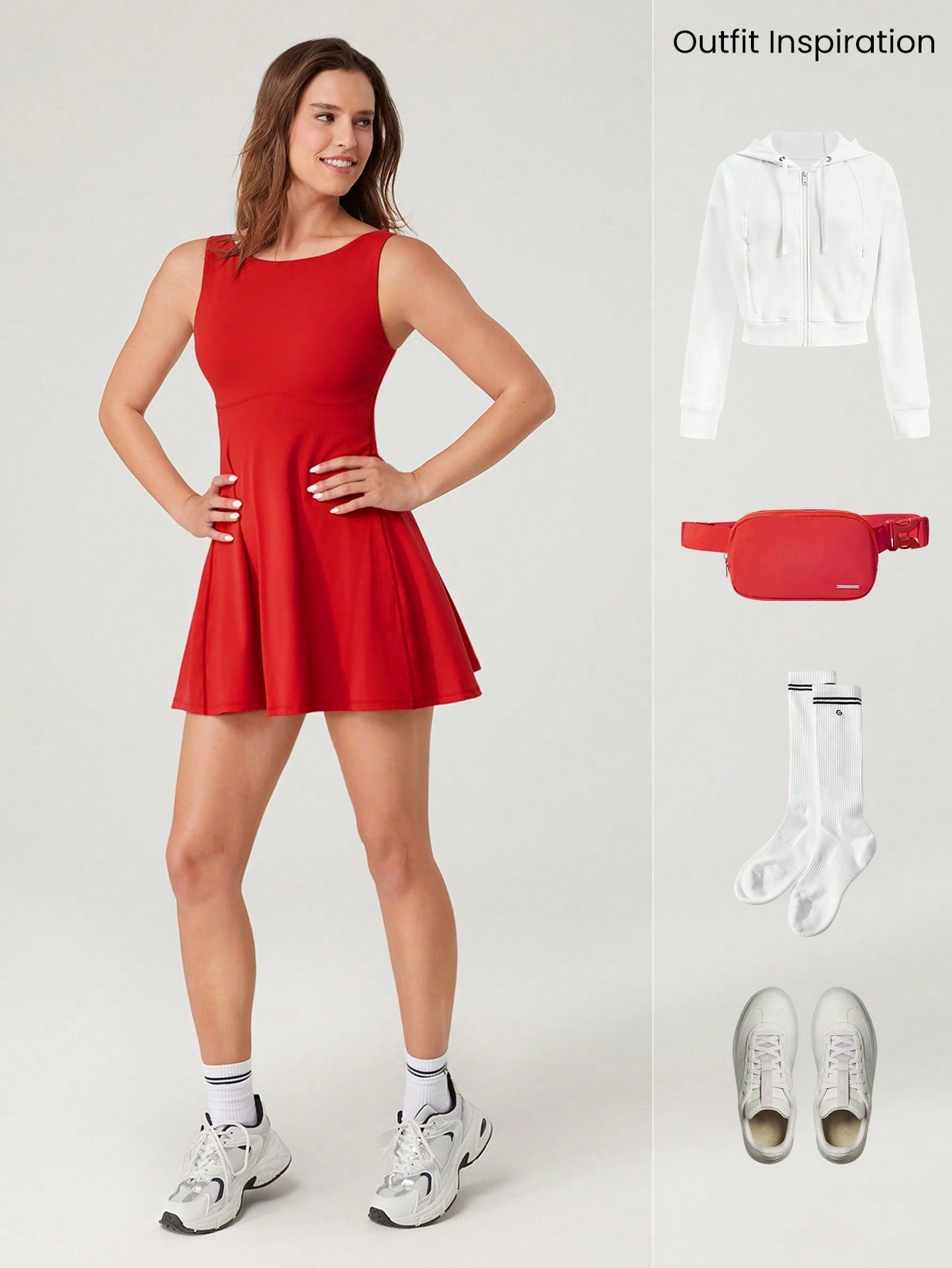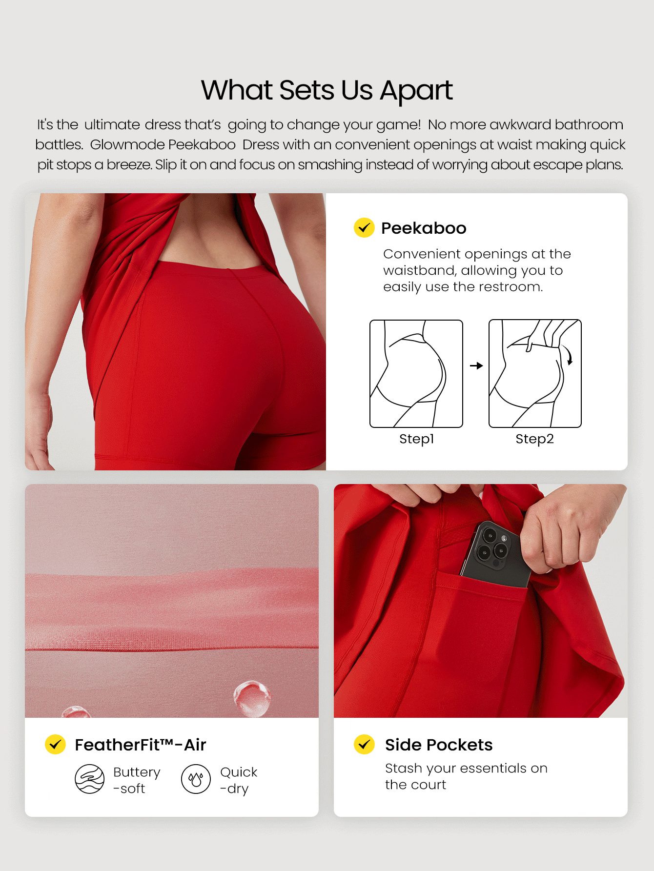 فستان GLOWMODE FeatherFit™-Air Peekaboo المنحني بدون ظهر بكتف واحد مع شورت مدمج منخفض