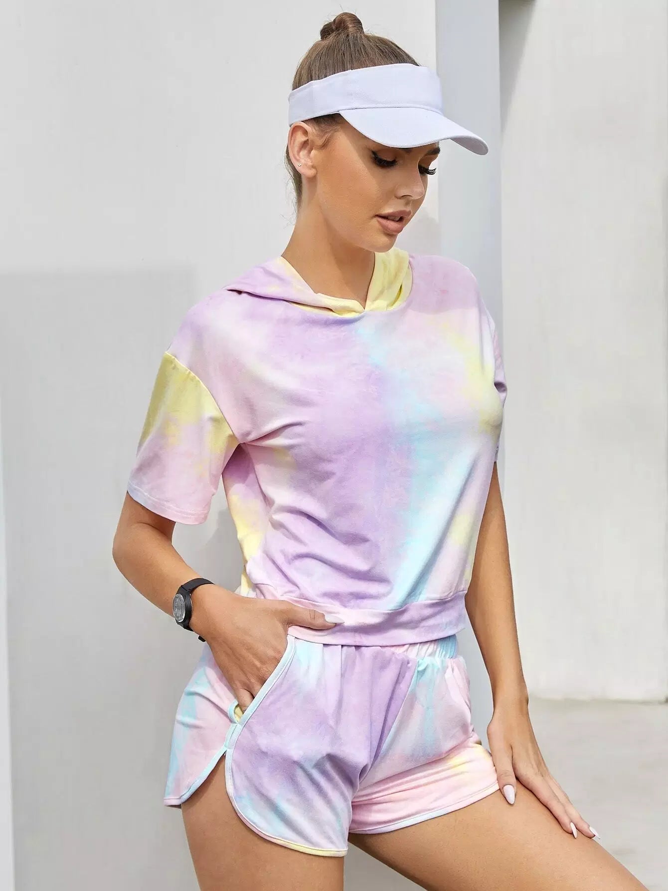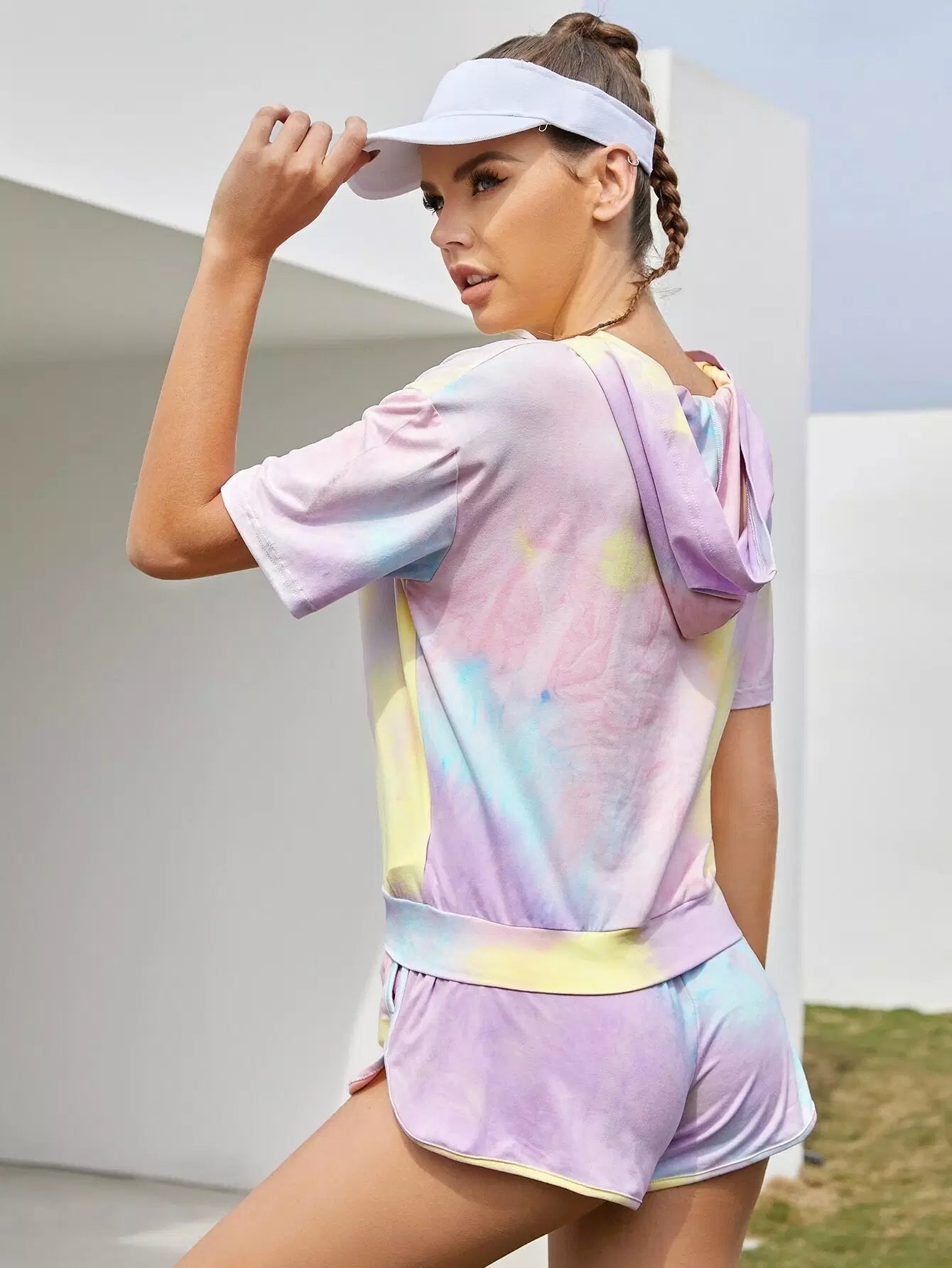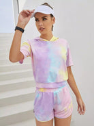 طقم رياضي بقلنسوة منسدل الكتف مصبوغ بربطة عنق مصبوغة بألوان العرق
