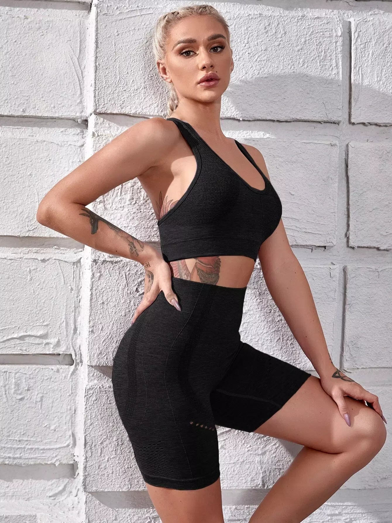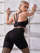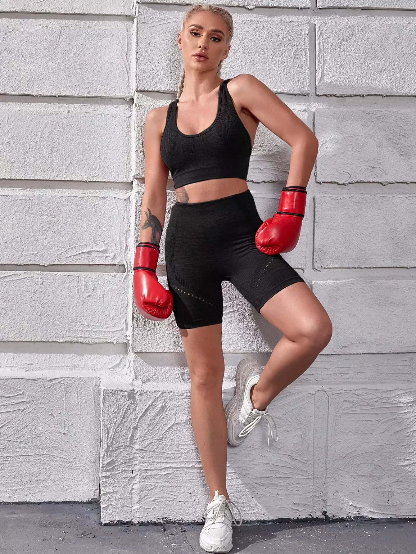النساء - حمالة صدر رياضية بدون ظهر وشورت لراكبي الدراجات النارية