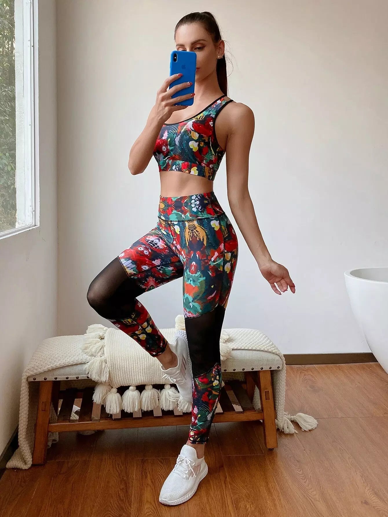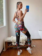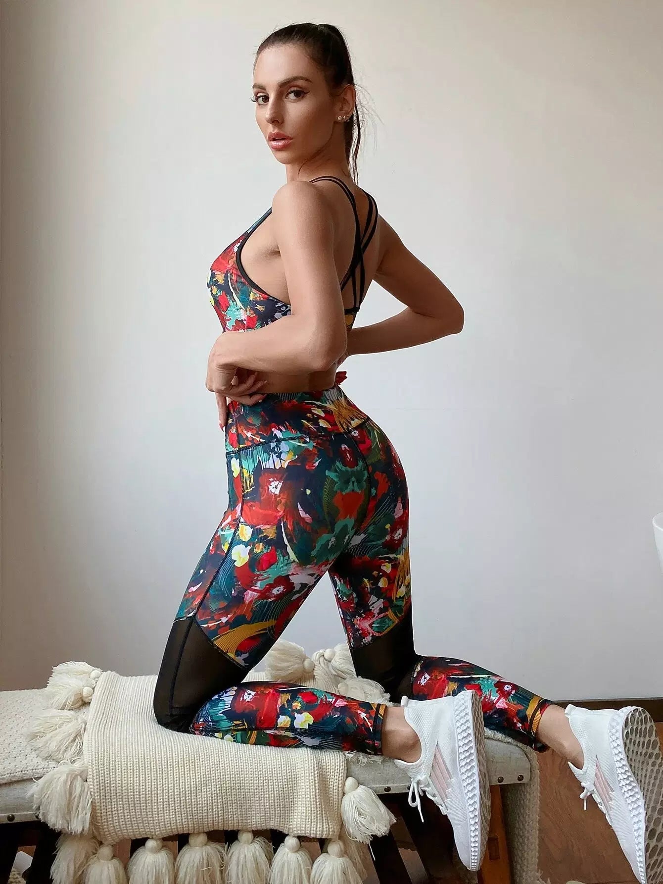 حمالة صدر رياضية متقاطعة وبنطلون ضيق شبكي