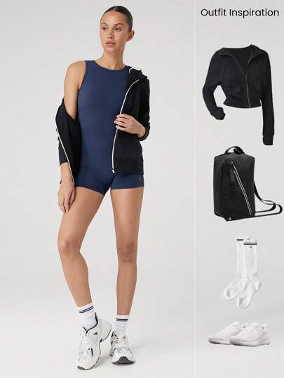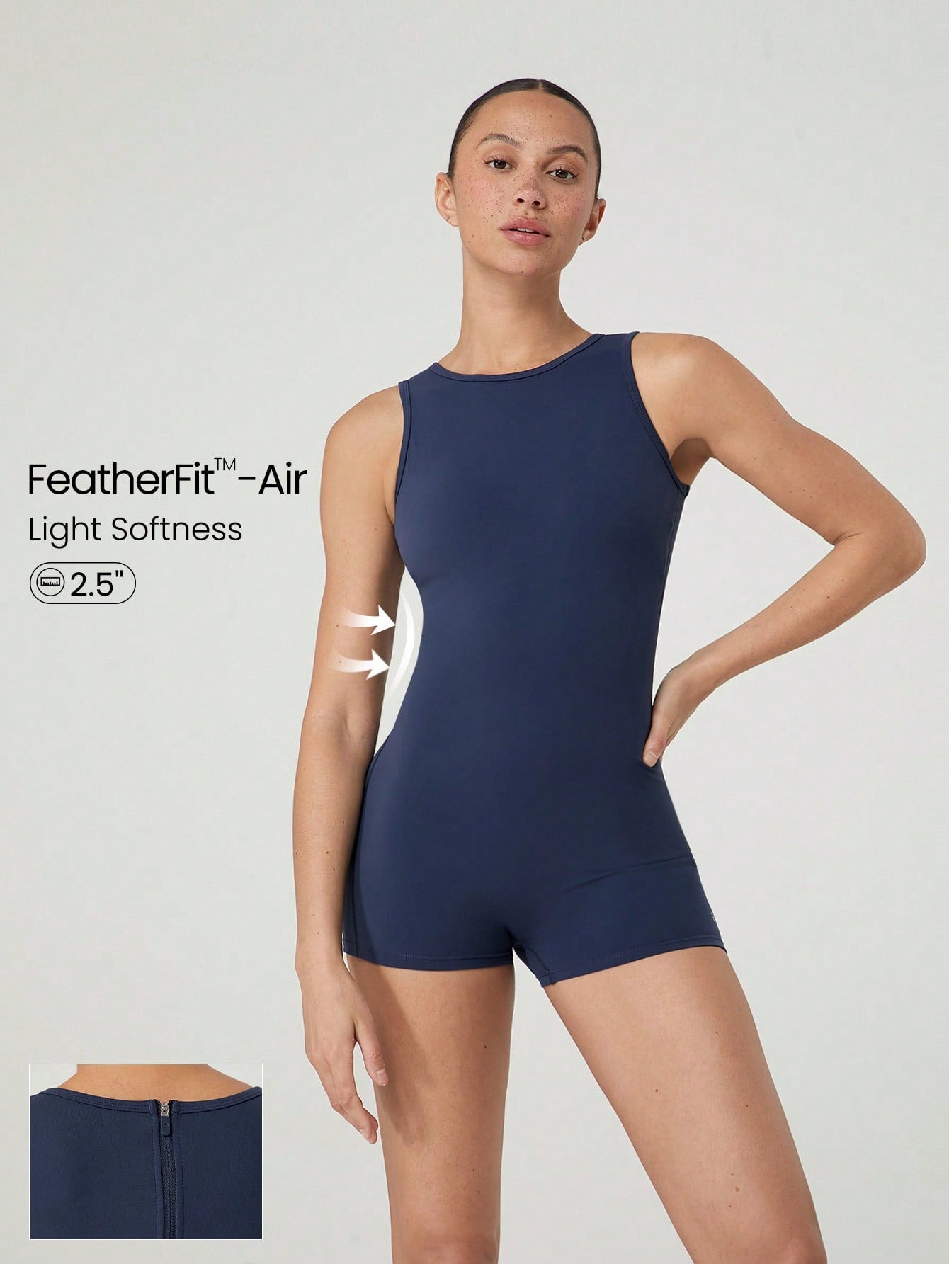 جمبسوت GLOWMODE 2.5 بوصة FeatherFit™ - سريع الجفاف ويمتص العرق بسحاب خلفي ورقبة دائرية عالية وجمبسوت رومبير منخفض التأثير لممارسة اليوجا والبيلاتس في الاستوديو وارتداء يومي غير رسمي وأكواب قابلة للإزالة