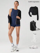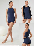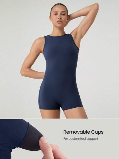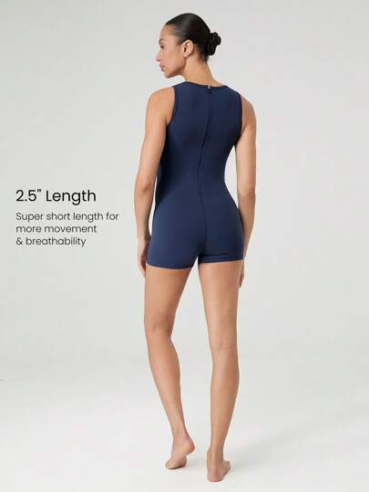 women GLOWMODE 2.5" FeatherFitâ„¢-Air Sweat-Wicking Quick-Dry Back Zip High Round-Neck Bodysuit Jumpsuit Romper Low Impact Yoga Pilates Studio Daily Casual Wear Removable Cups