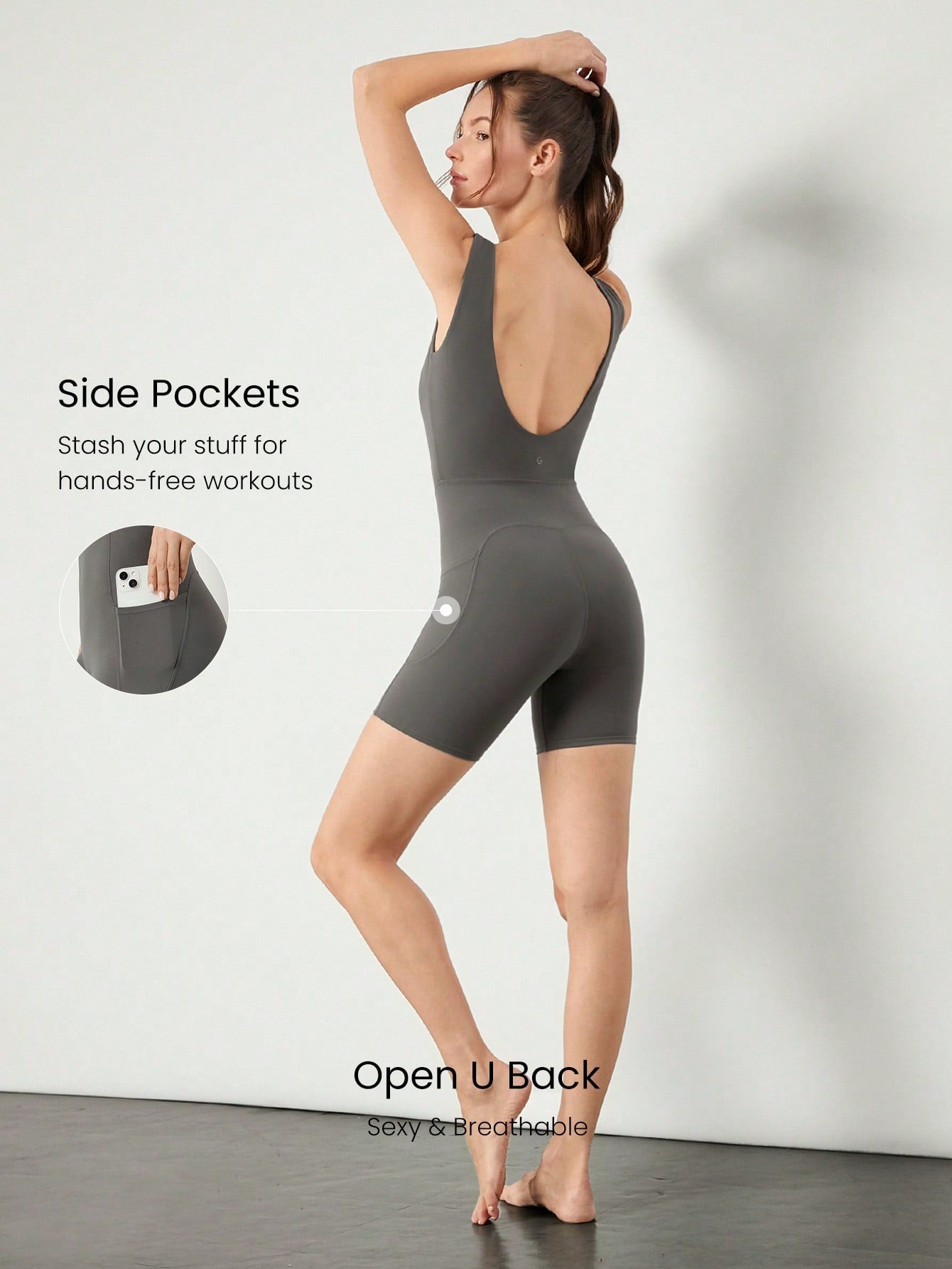 GLOWMODE 6" FeatherFitâ„ One Hit Wonder Tummy Control2.0 Full Underarm U-Back Jumpsuit Romper With