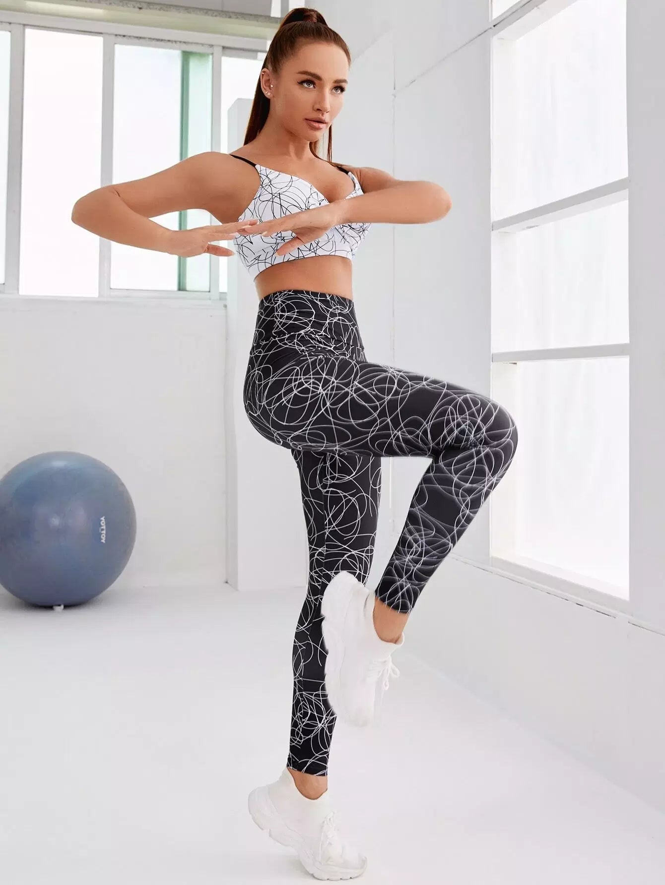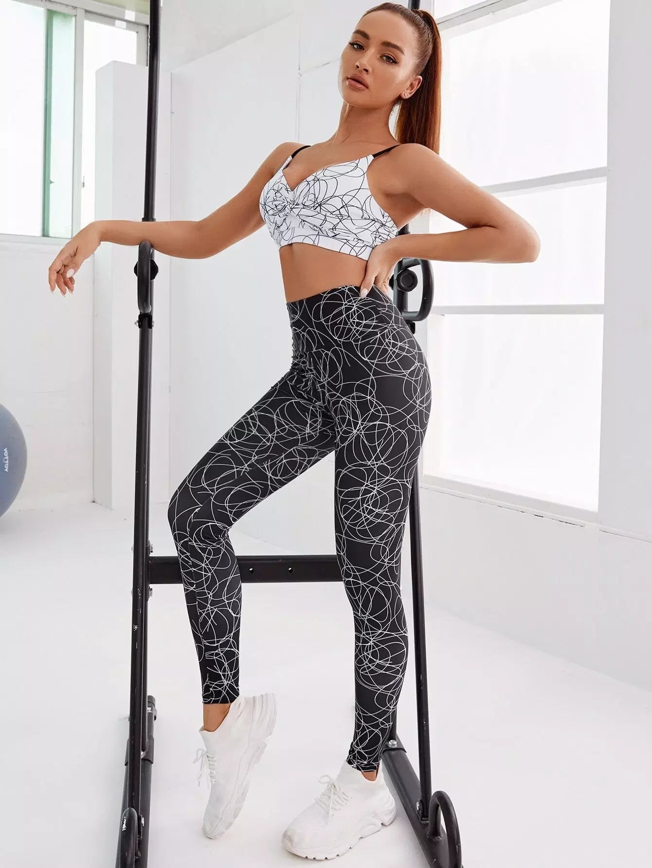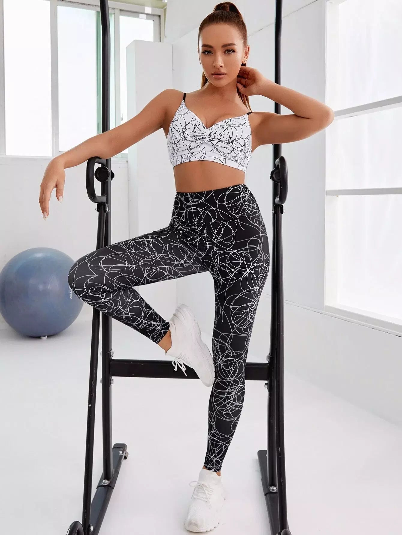 حمالة صدر رياضية بطبعة جرافيكية مع بنطال ضيق