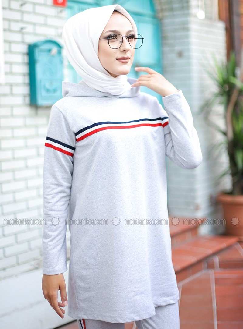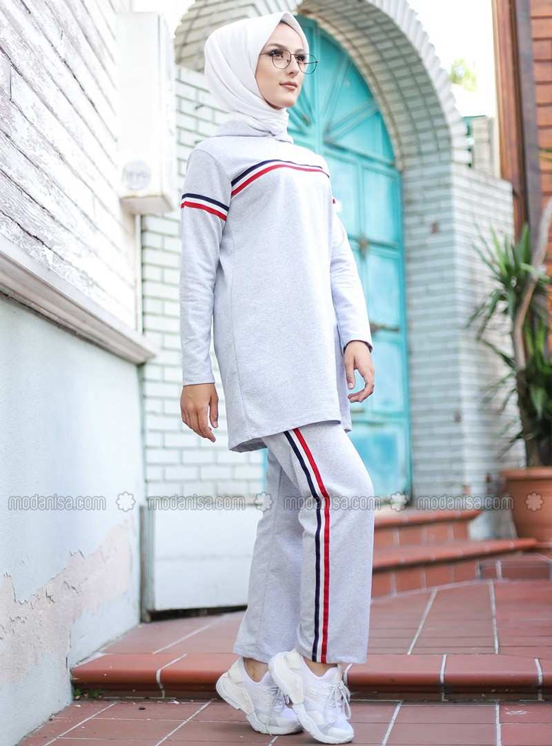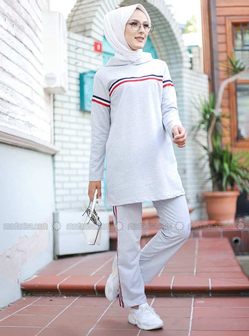 طقم رياضي باللون الرمادي