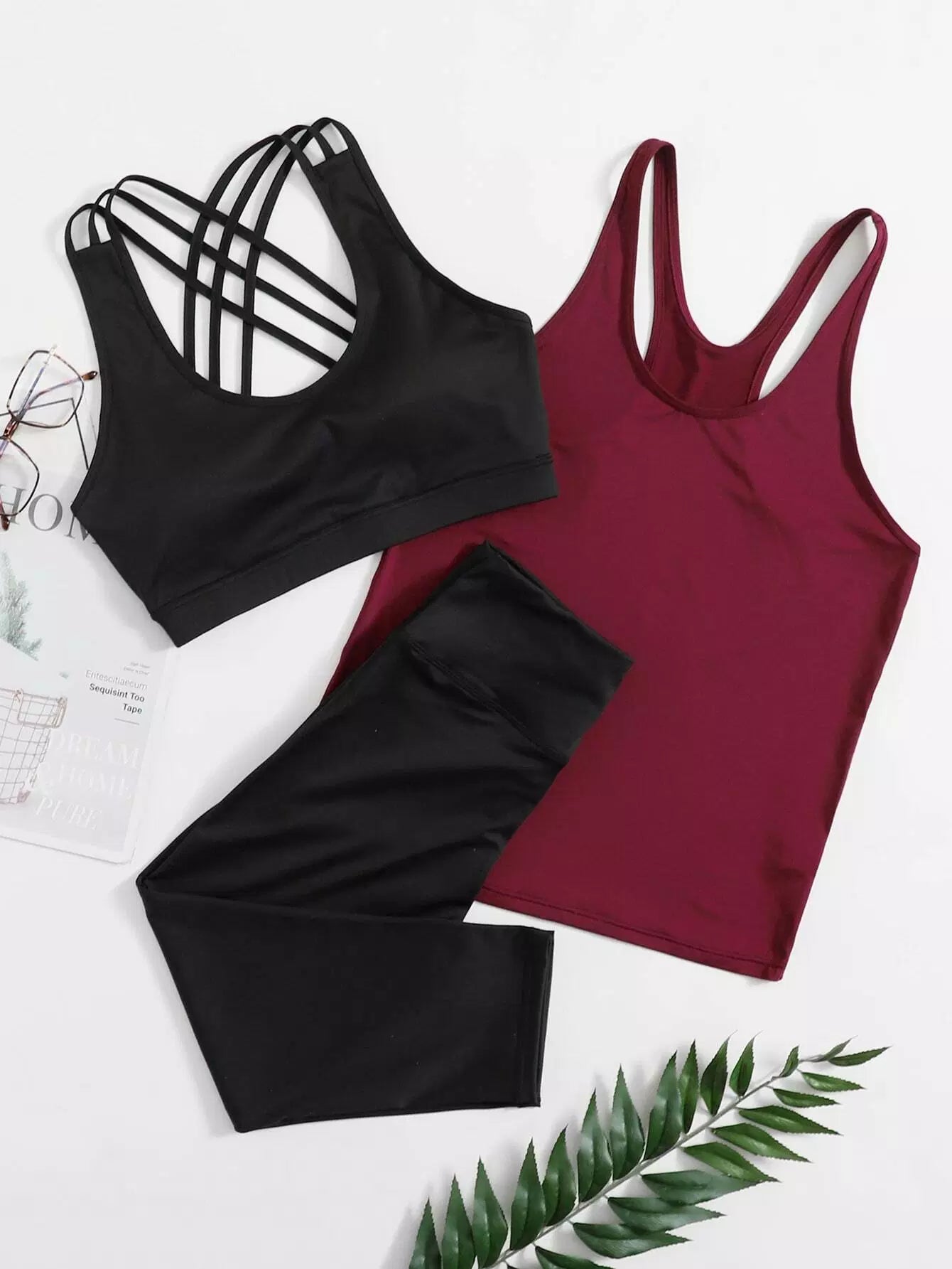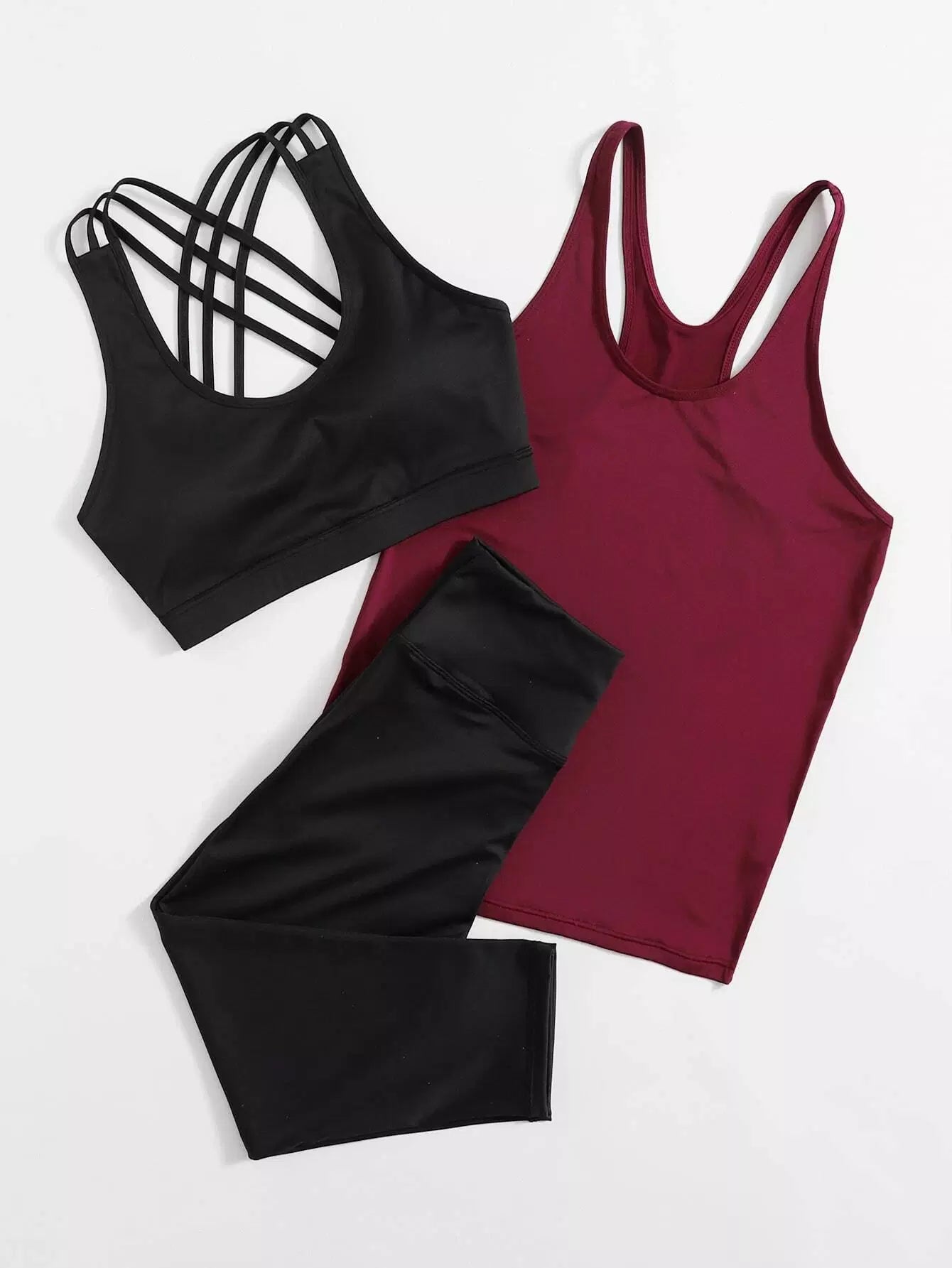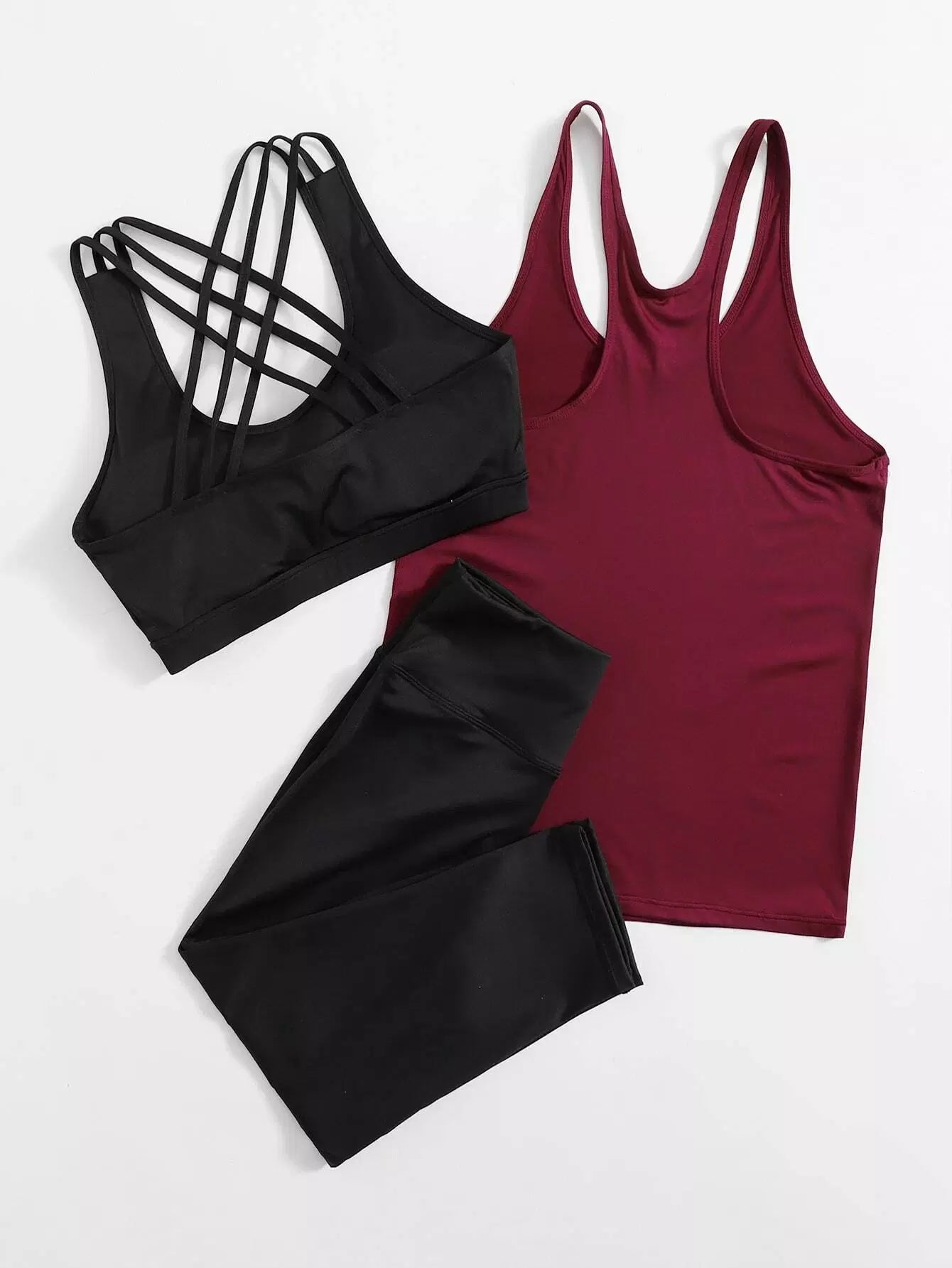 حمالة صدر رياضية مطاطية عالية التمدد متقاطعة من الخلف وقميص رياضي وبنطال ضيق