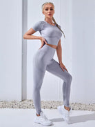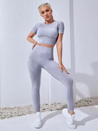 تي شيرت رياضي قصير بقصّة من الخلف بقصّة طويلة مع بنطال ضيق