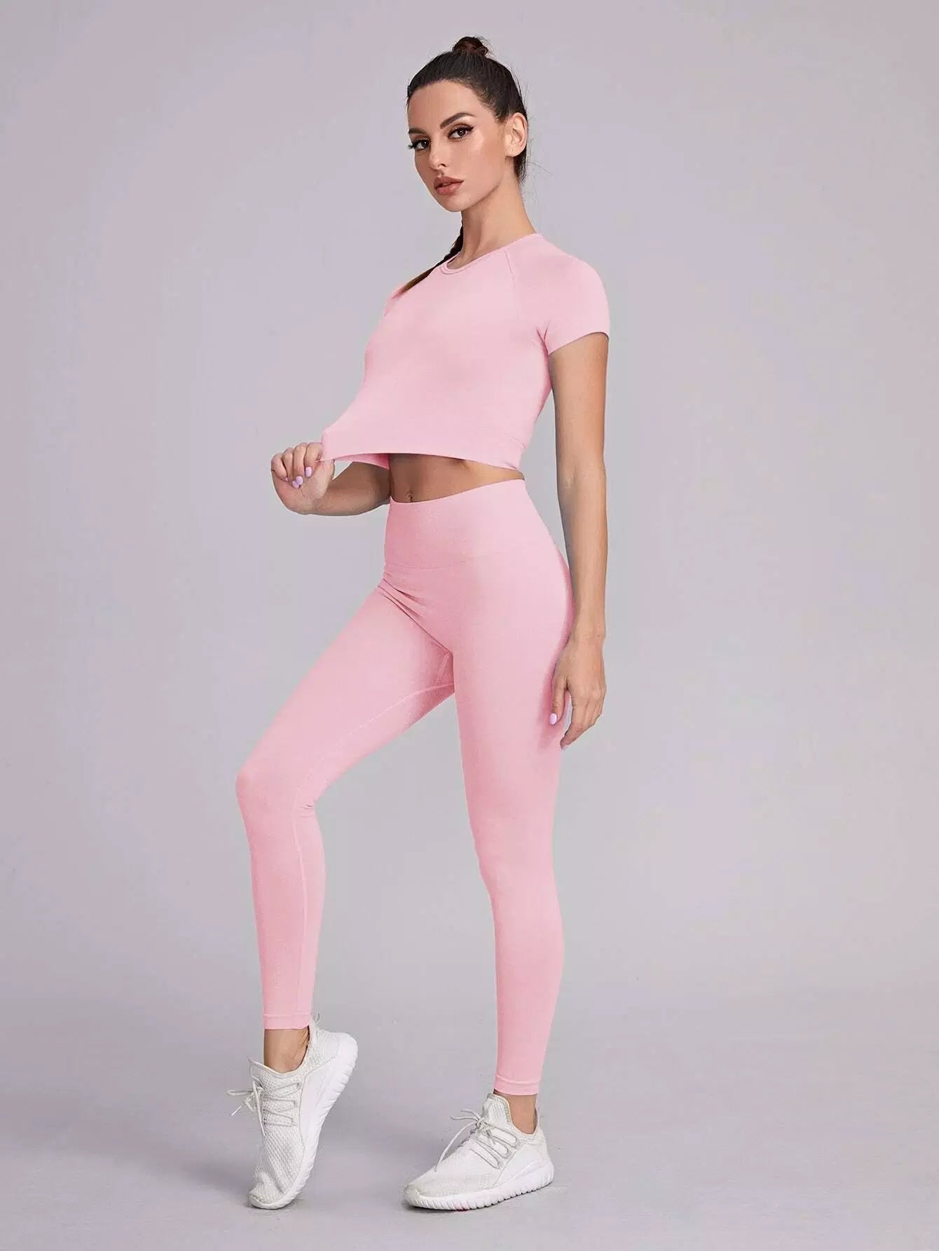 تي شيرت رياضي بأكمام راجلان وبنطلون ضيق