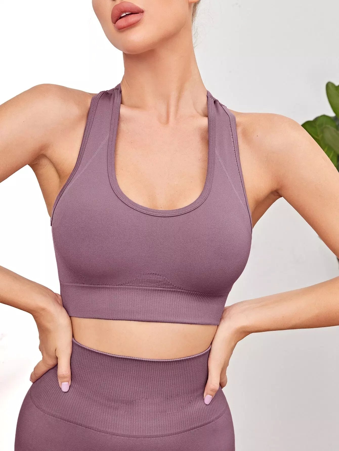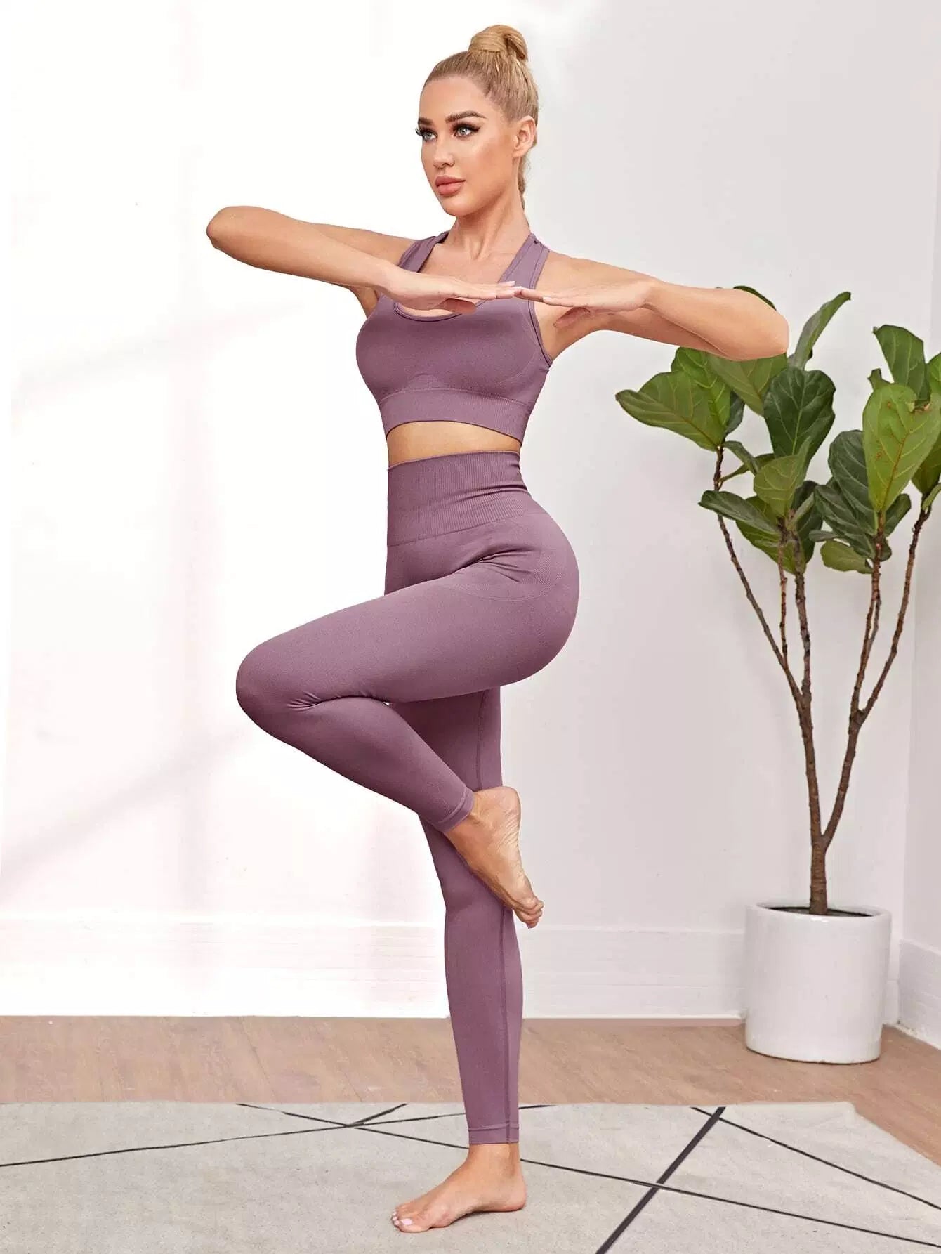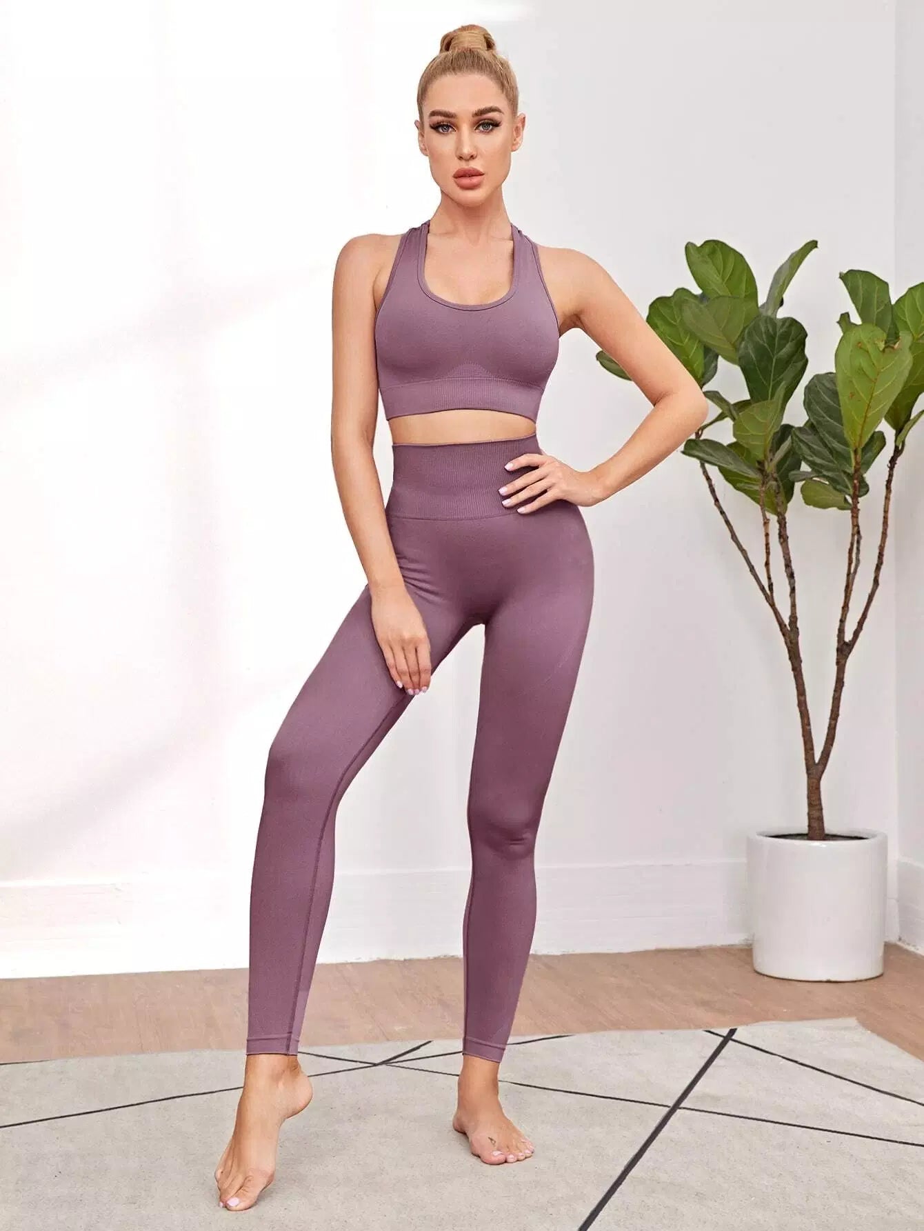 حمالة صدر رياضية بدون أكمام بظهر رياضي وسروال ضيق بدون درزات