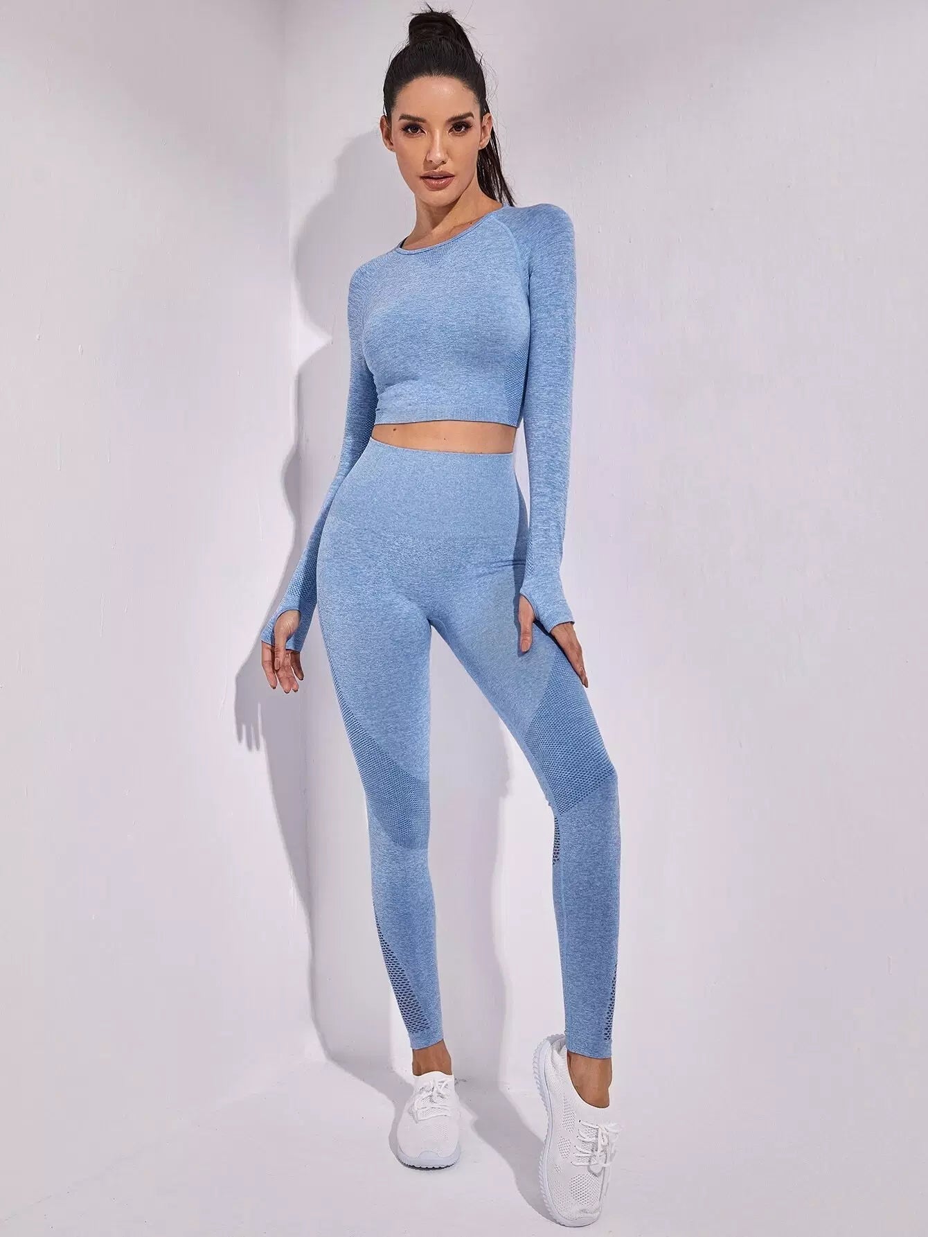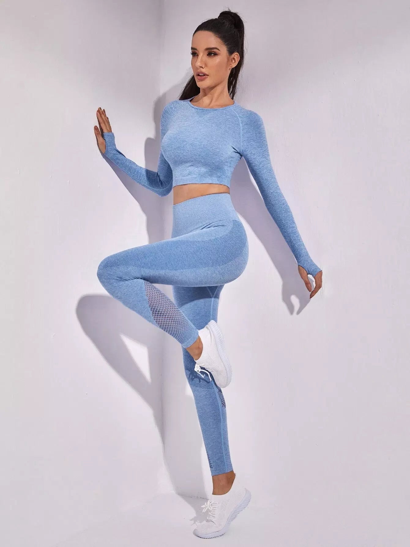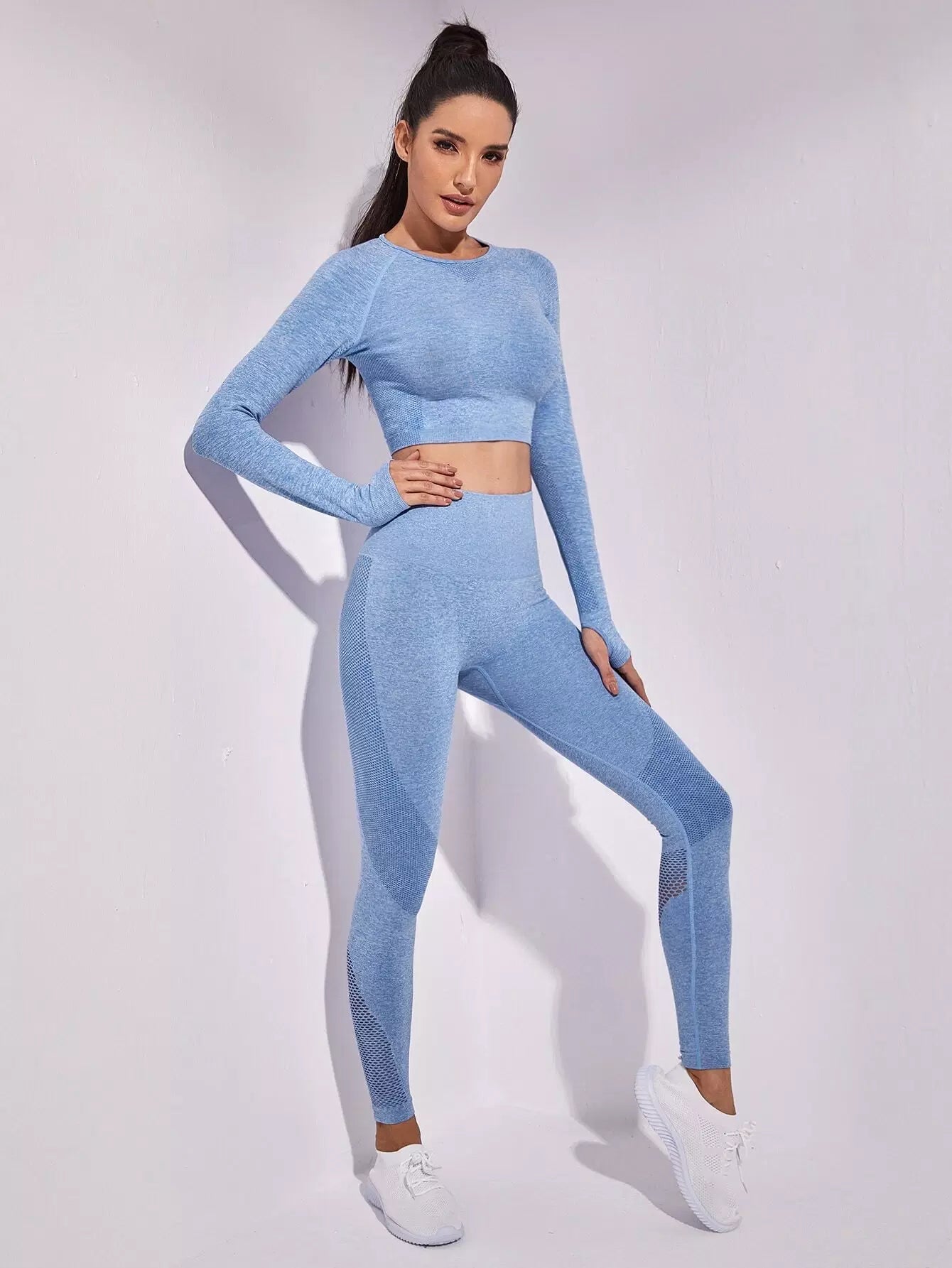 طقم رياضي من شبكة صيد السمك فائقة المرونة بدون درزات