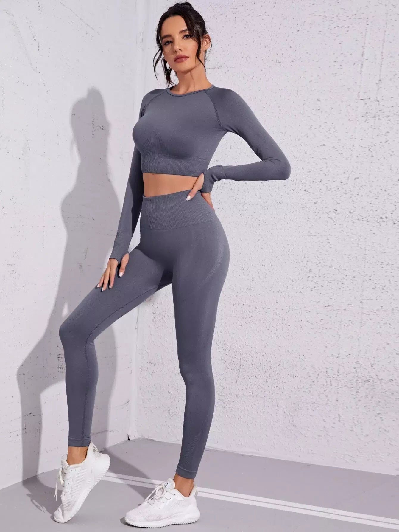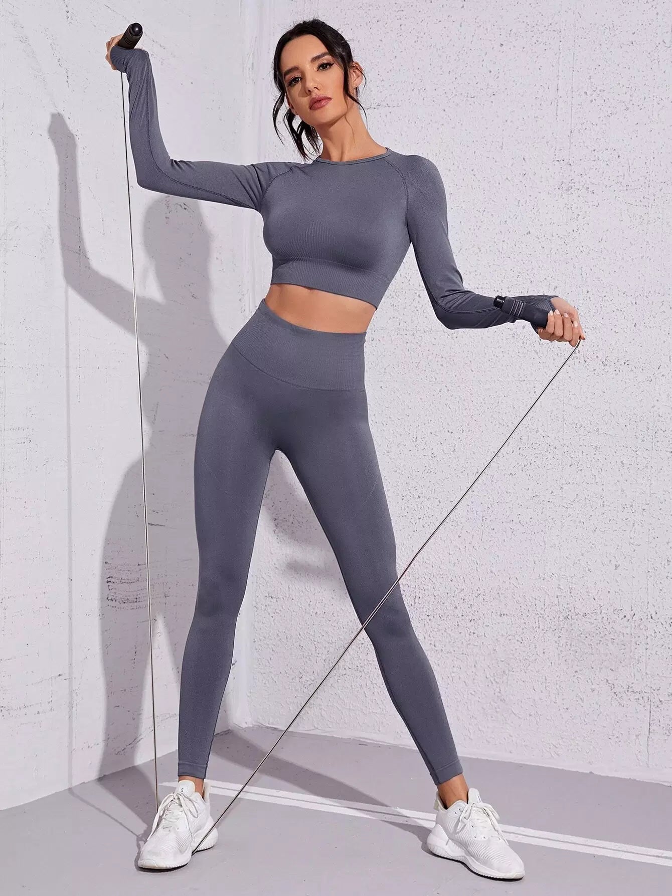 طقم رياضي بأكمام راجلان بأكمام من دون خياطة بأبهامين
