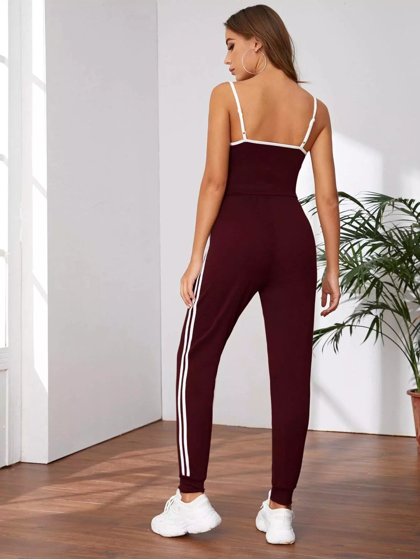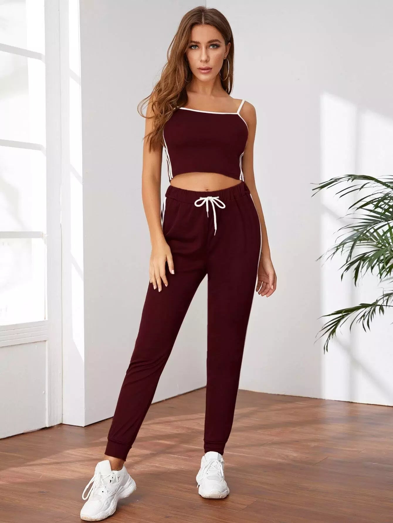 بلوزة كامي مخططة من الجانب وبنطال رياضي برباط خصر