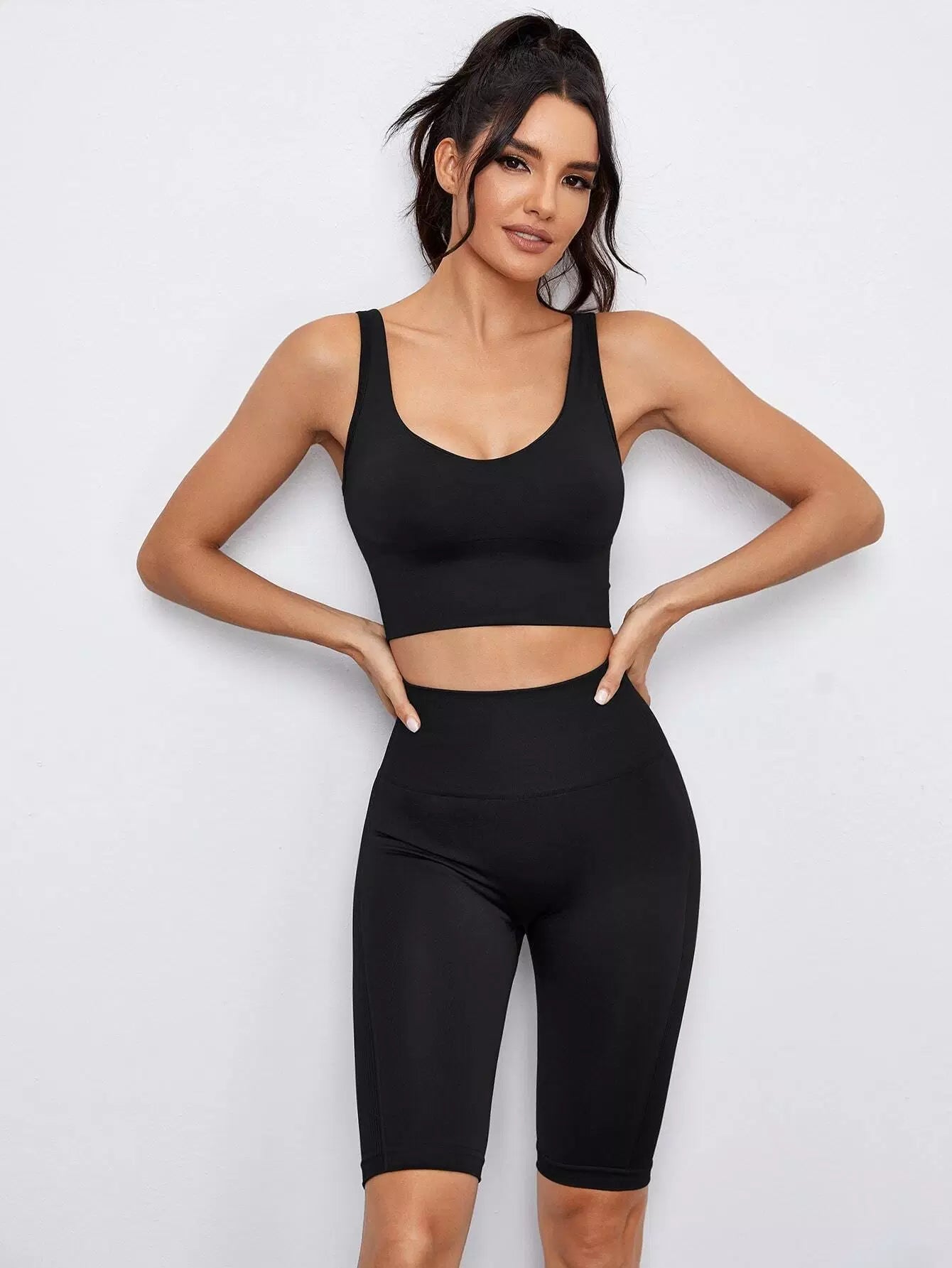 حمالة صدر رياضية سادة وشورت رياضي قصير لراكبي الدراجات النارية