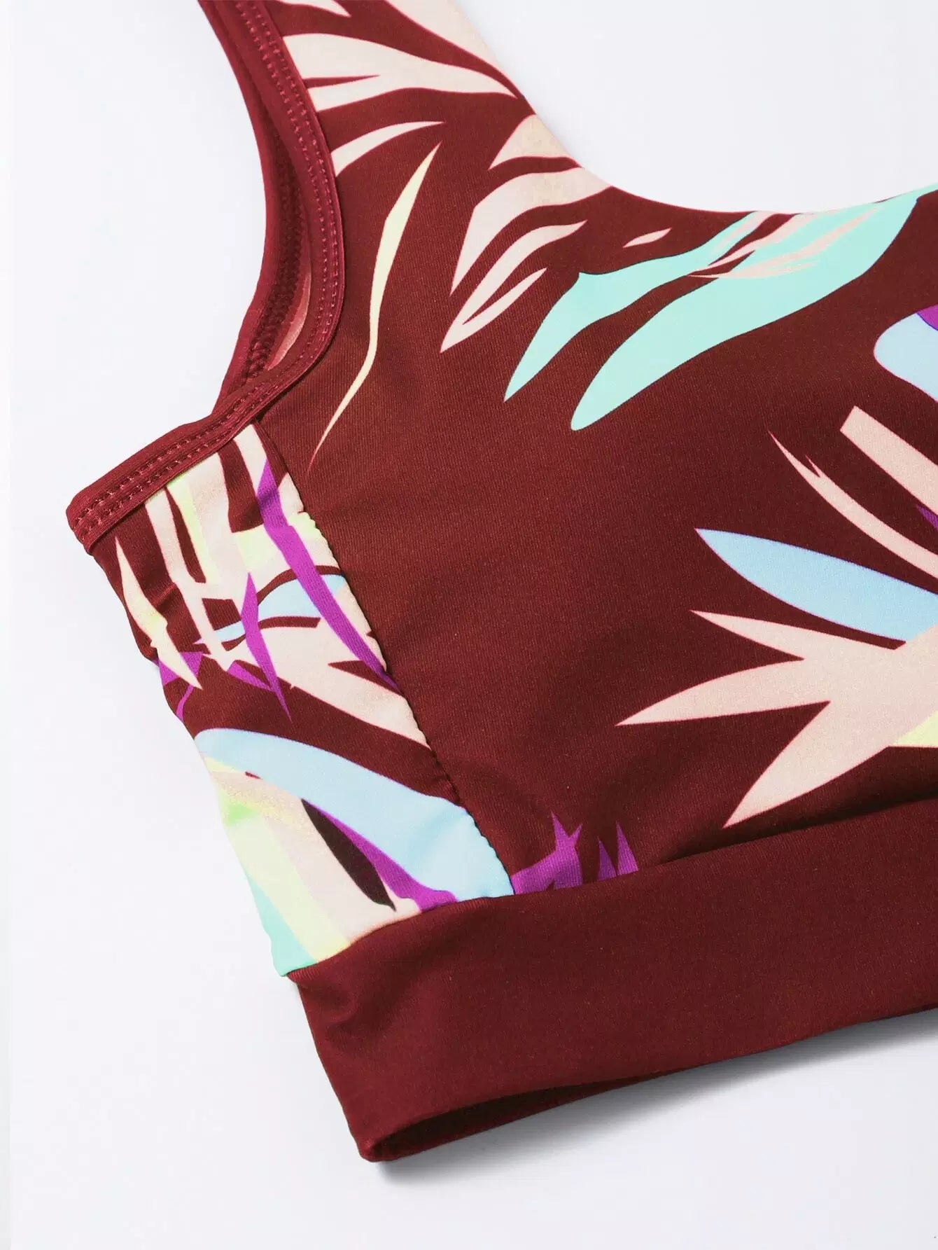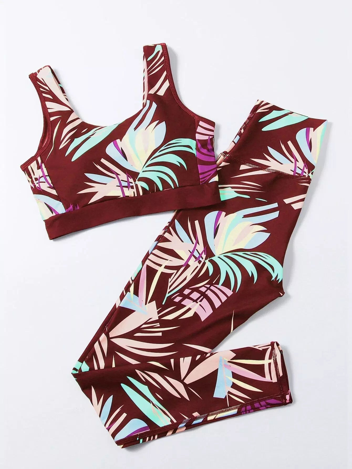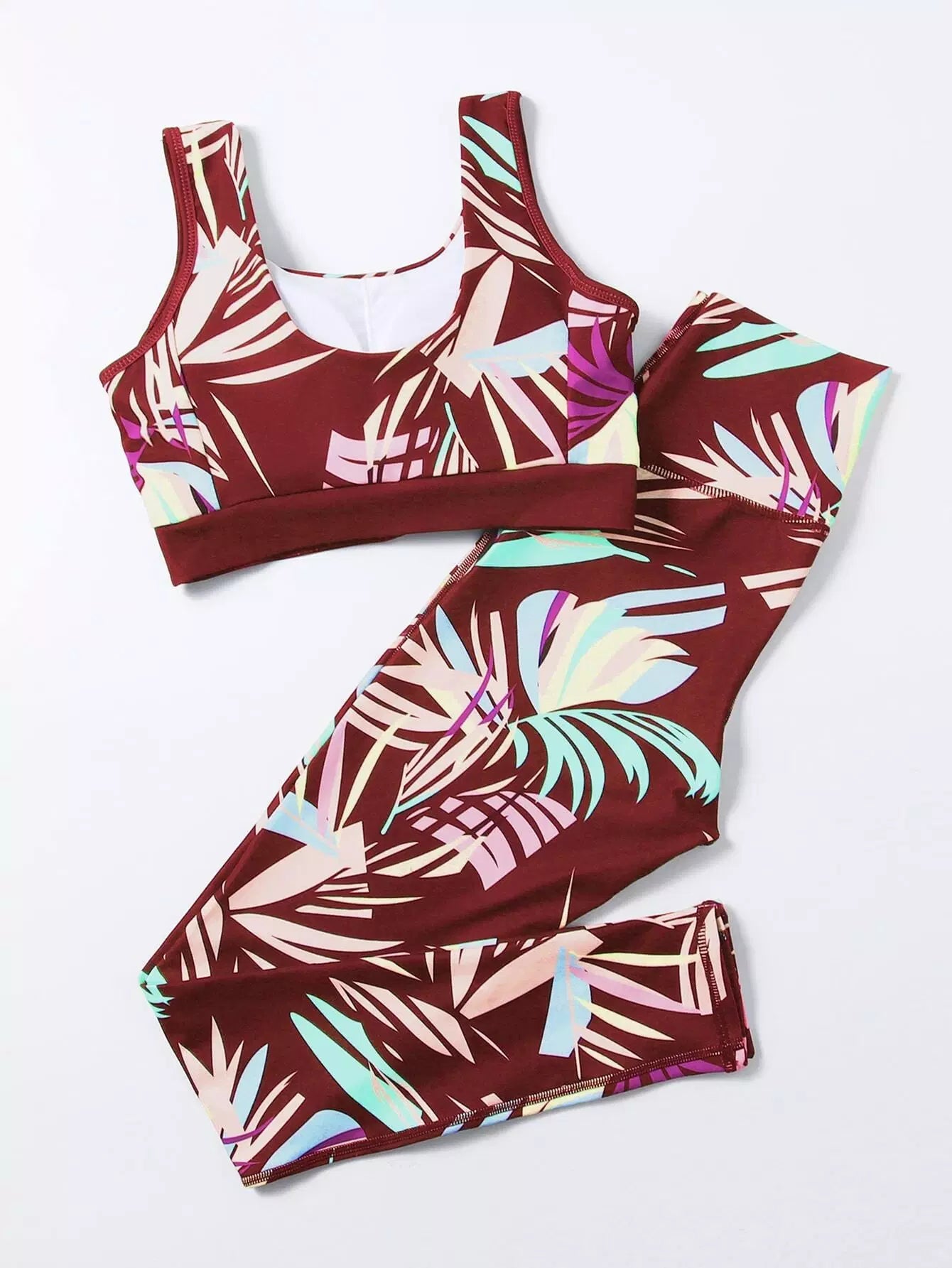 طقم رياضي بطبعة أوراق شجر مرن للغاية