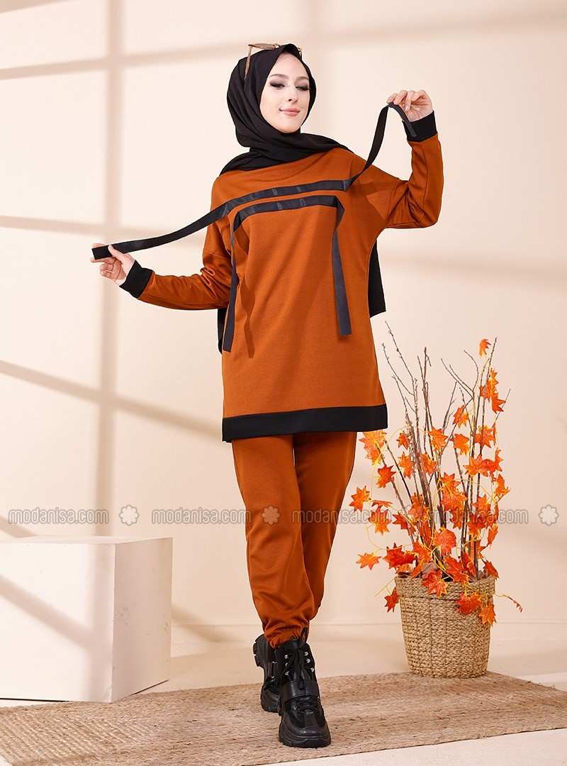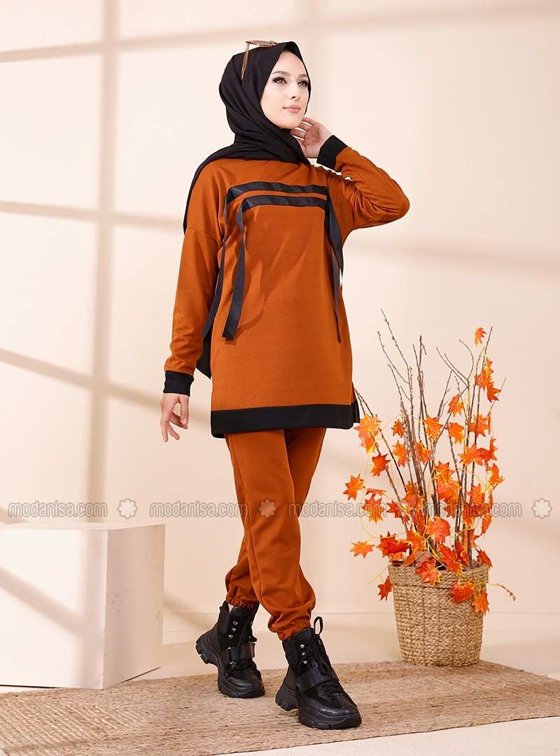 طقم بدلة رياضية برقبة دائرية من تيرا كوتا