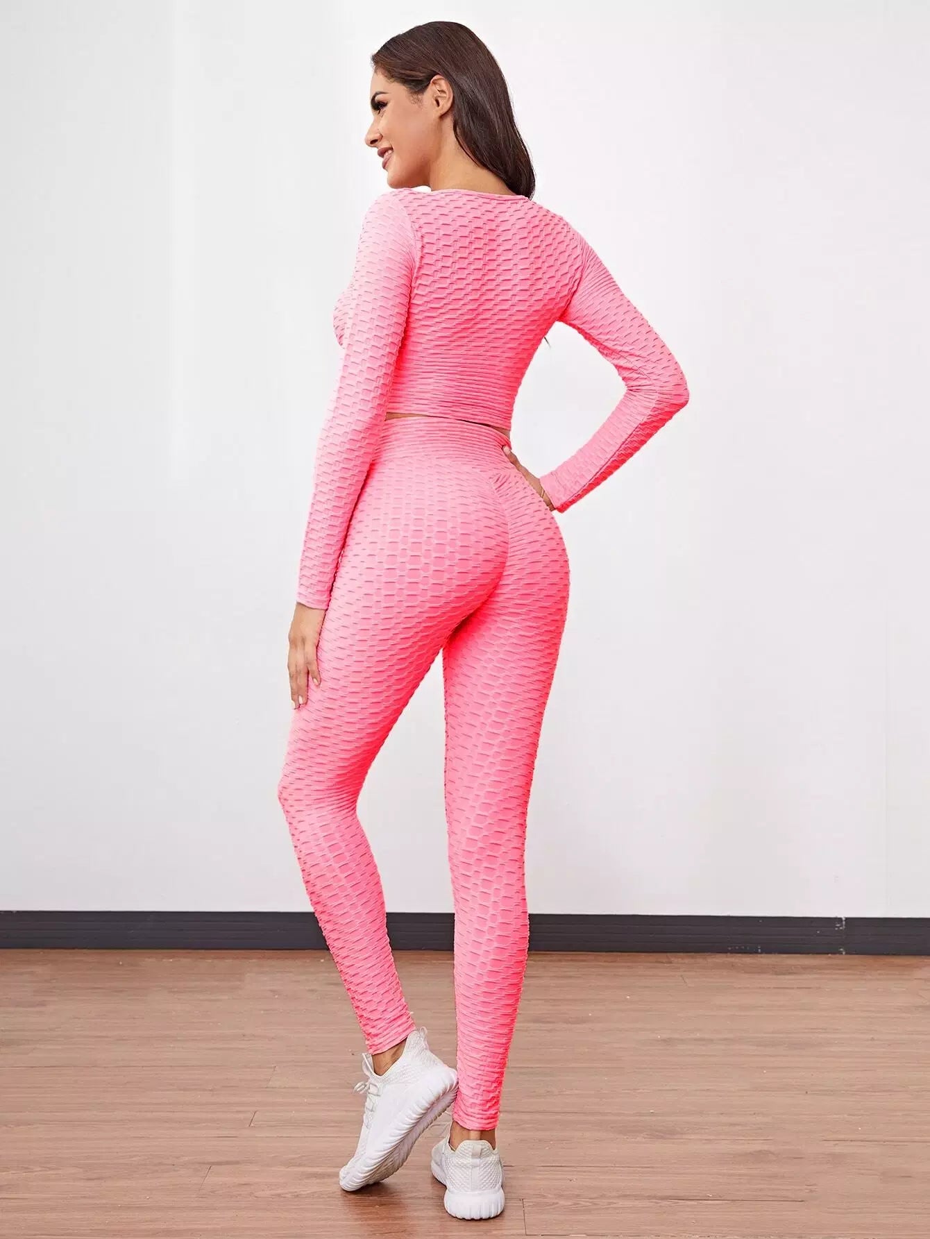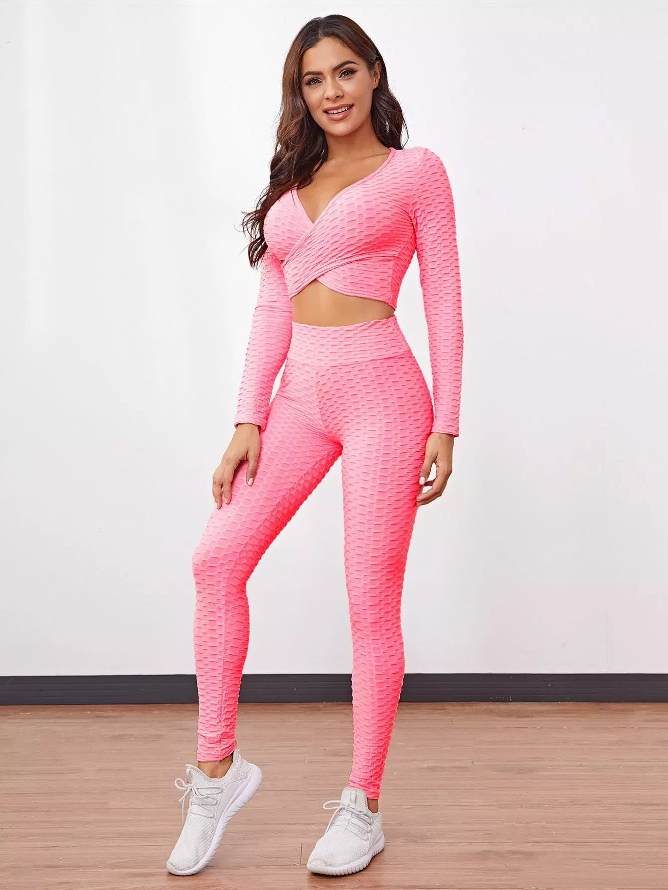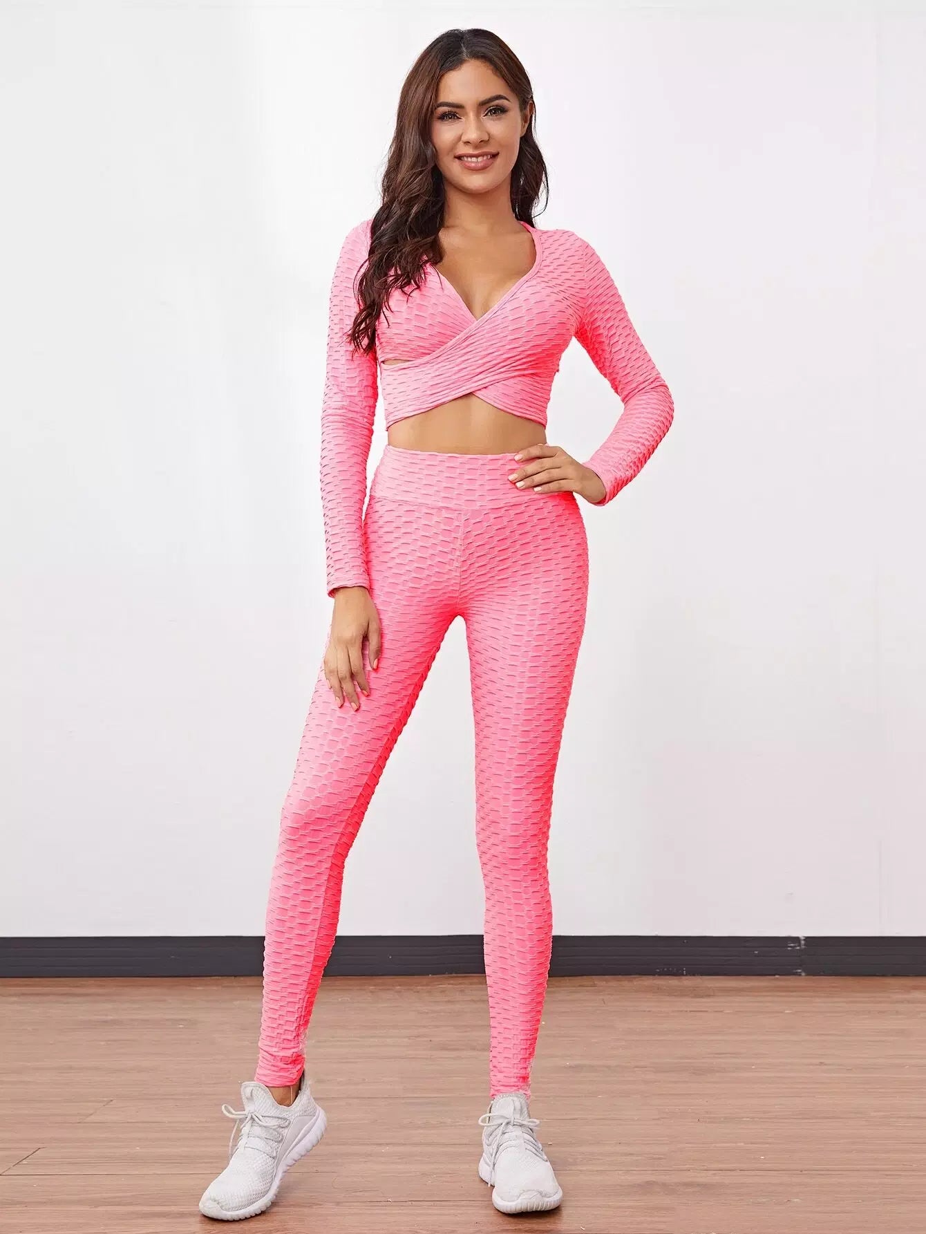 توب رياضي قصير محكم مع بنطلون رياضي ضيق