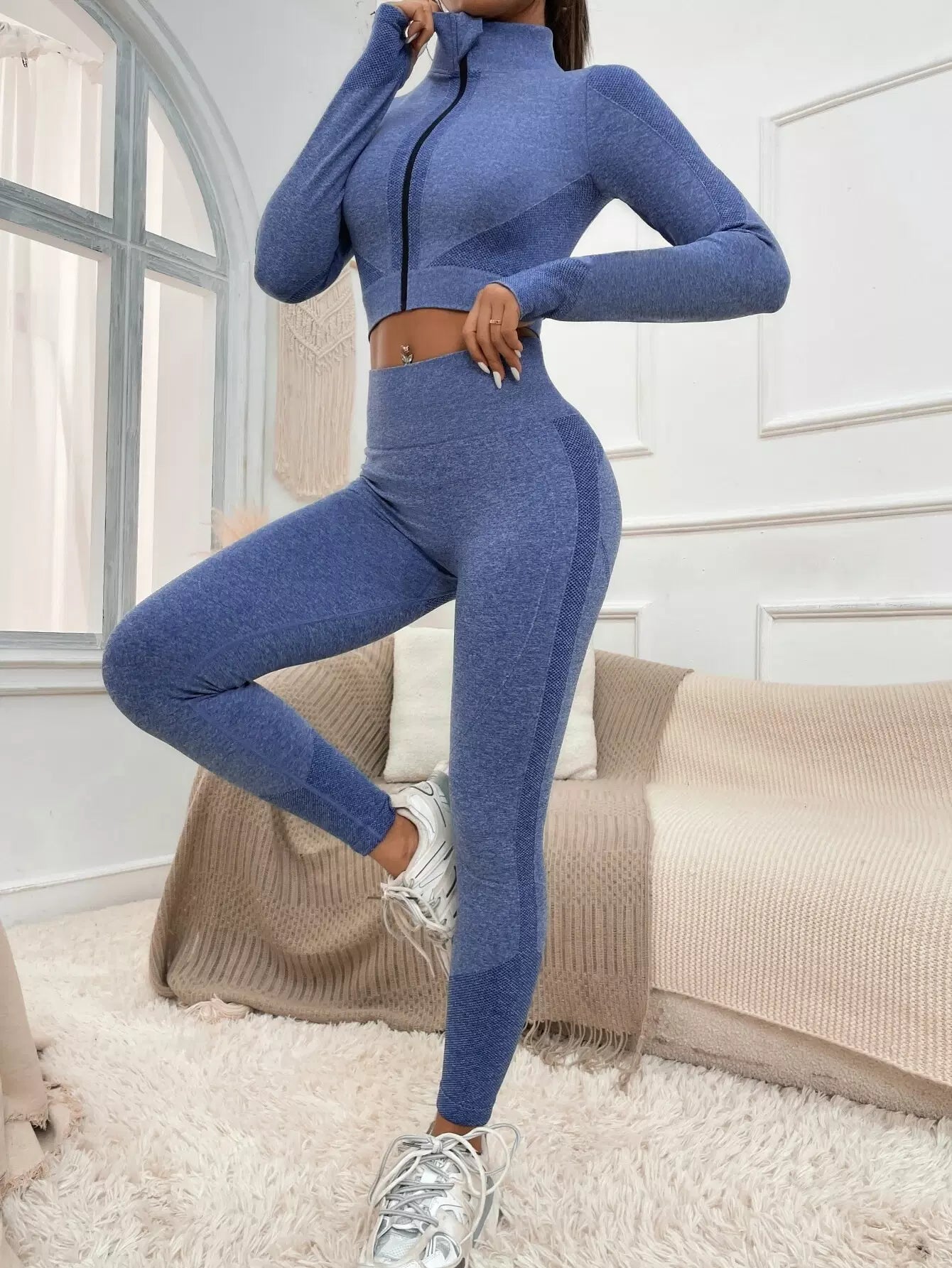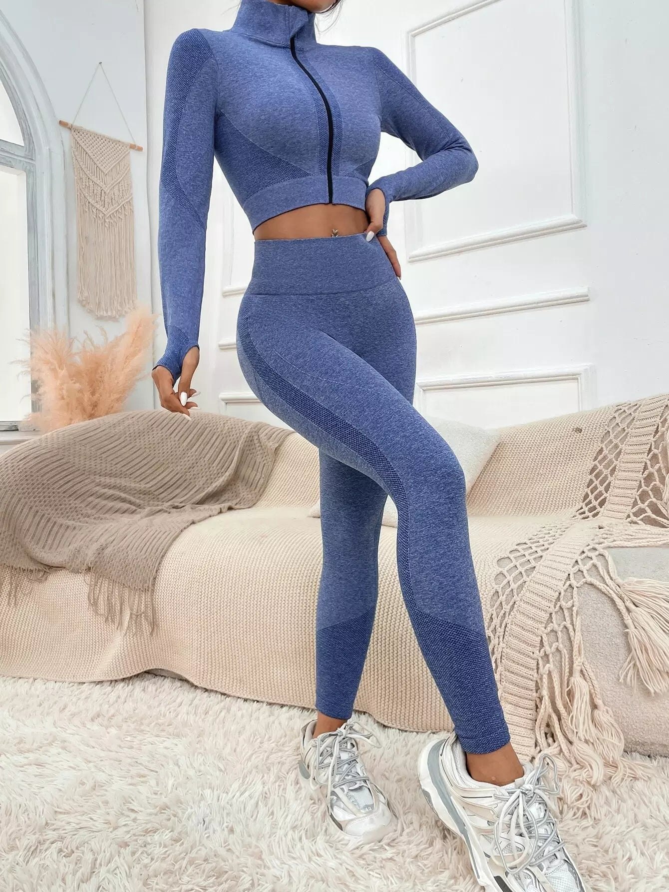 طقم رياضي بحزام خصر عريض بسحّاب مفتوح من الأمام والخلف