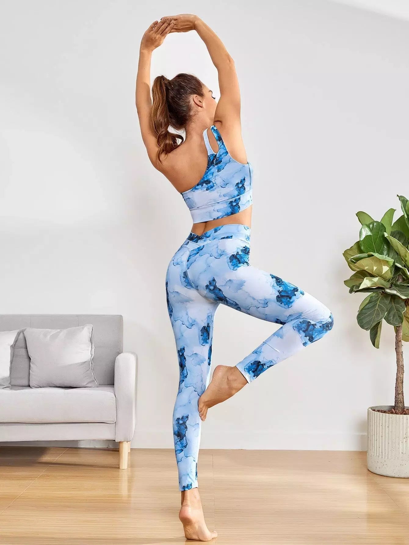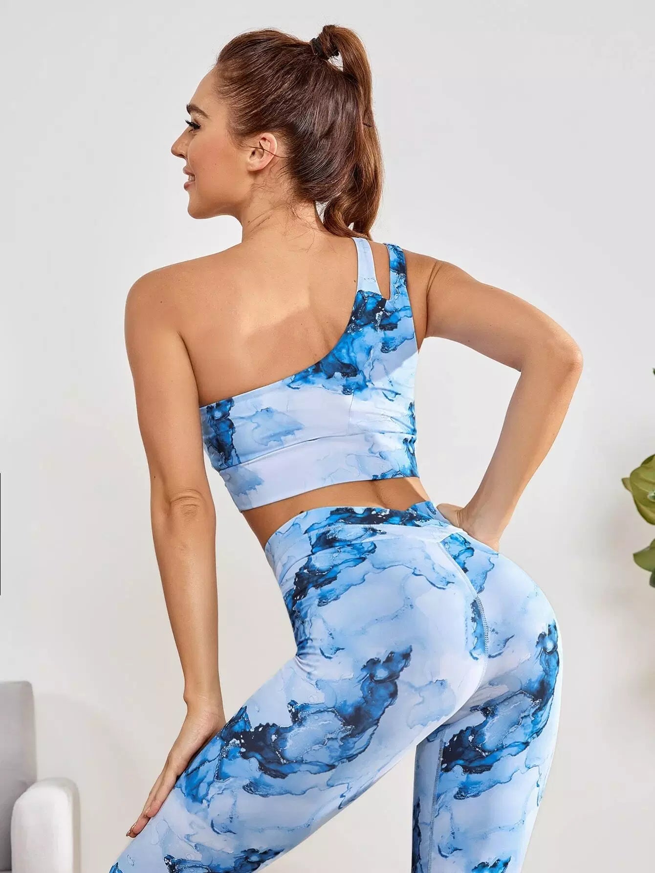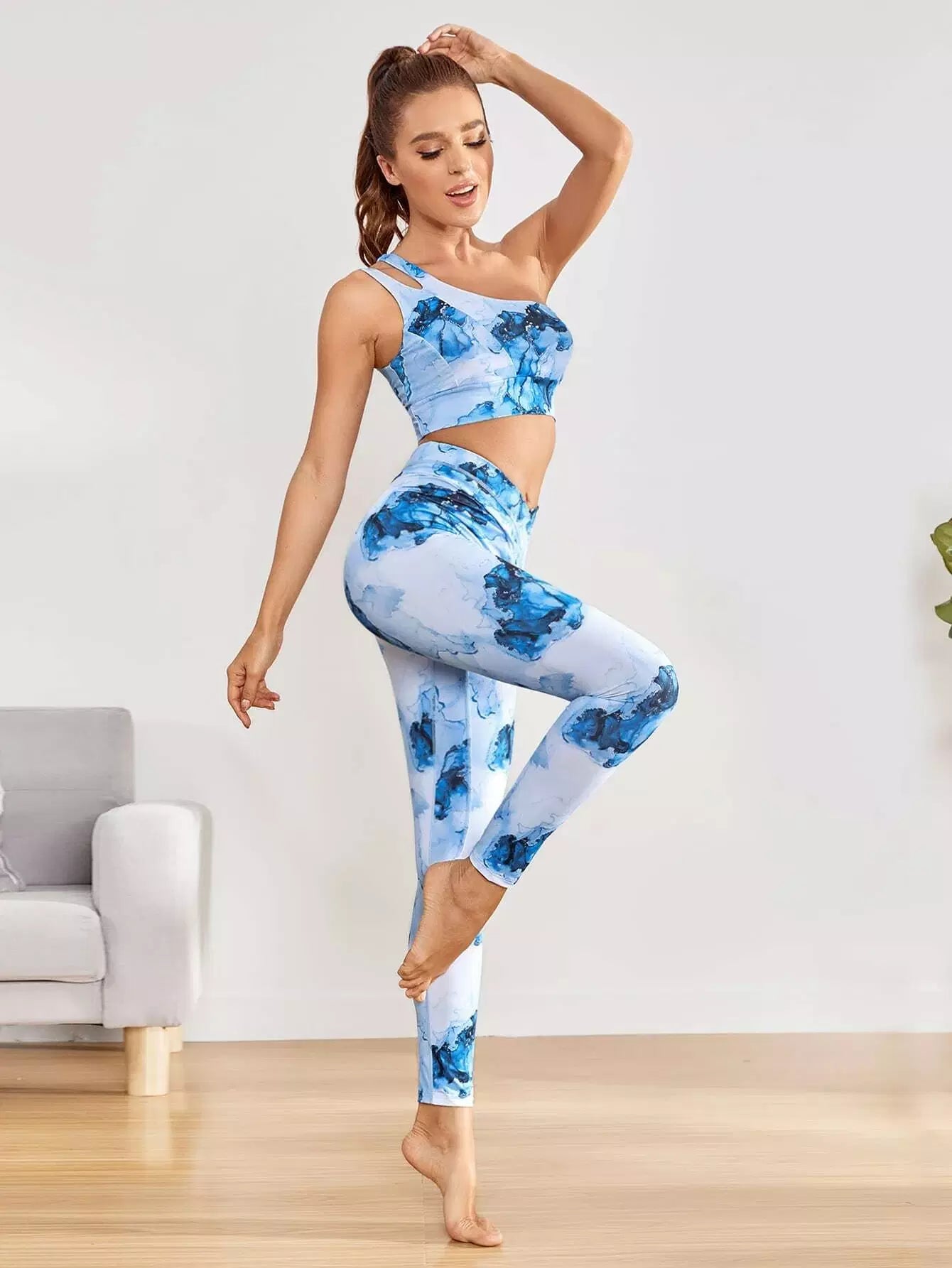 حمالة صدر رياضية ذات أكتاف واحدة مصبوغة بربطة عنق مع بنطال ضيق