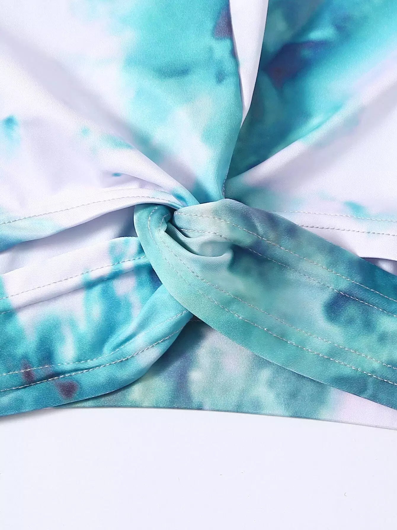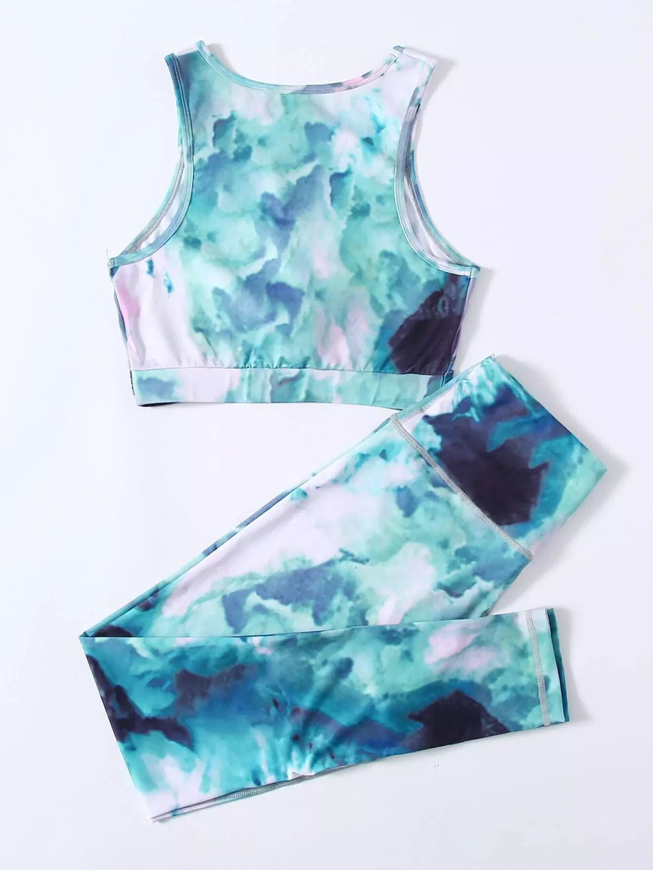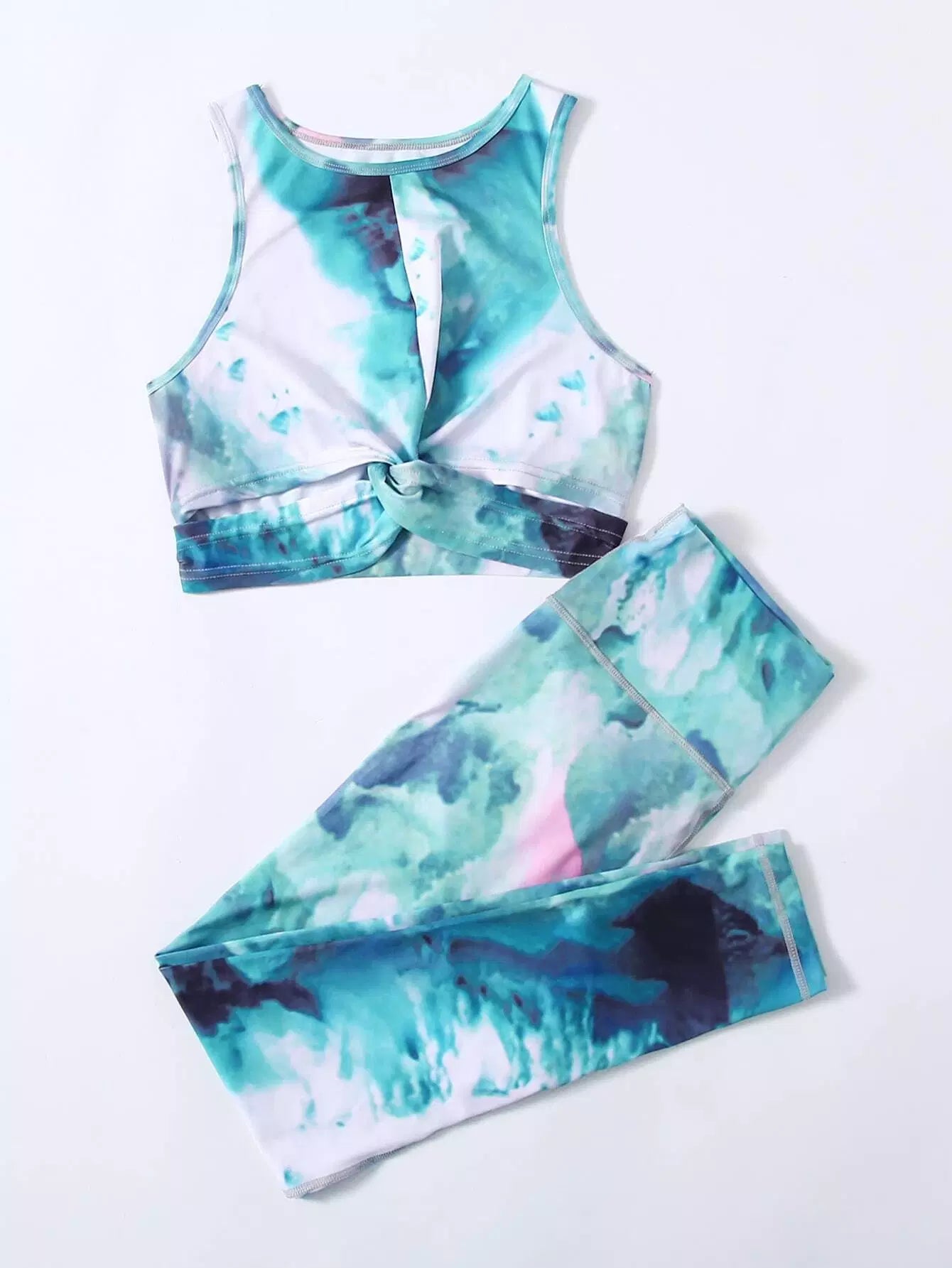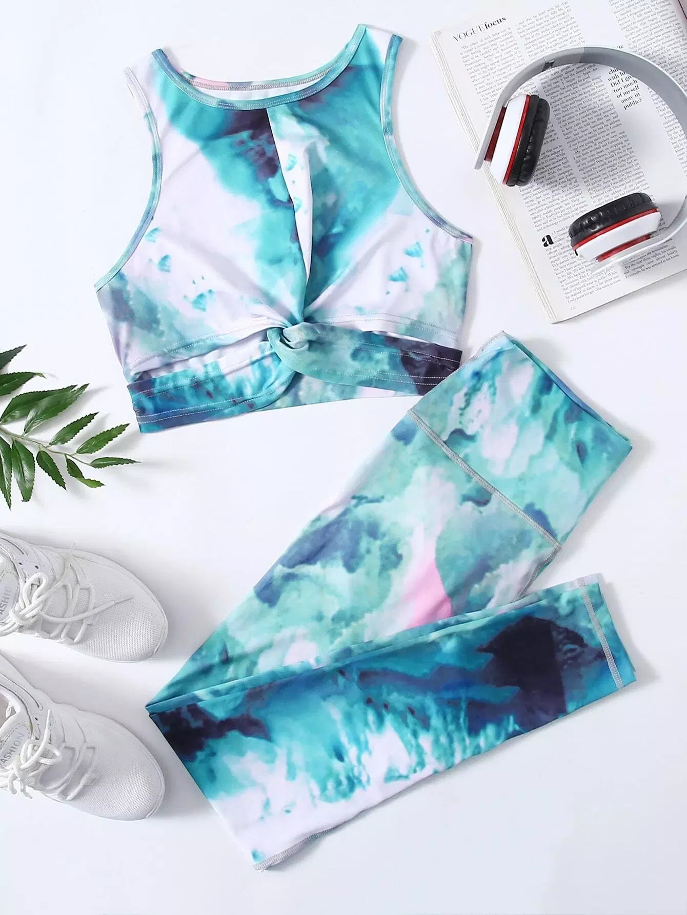 للنساء - طقم رياضي بدون أكمام بحاشية ملتوية وربطة عنق مع سروال ضيق