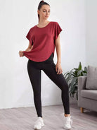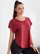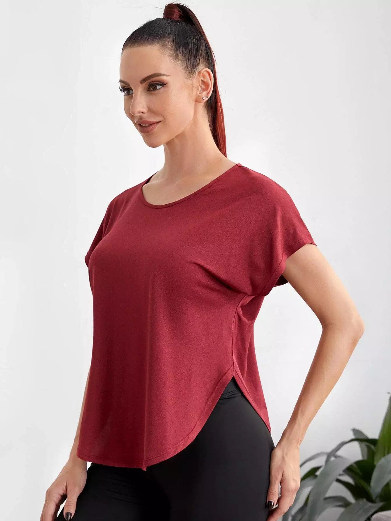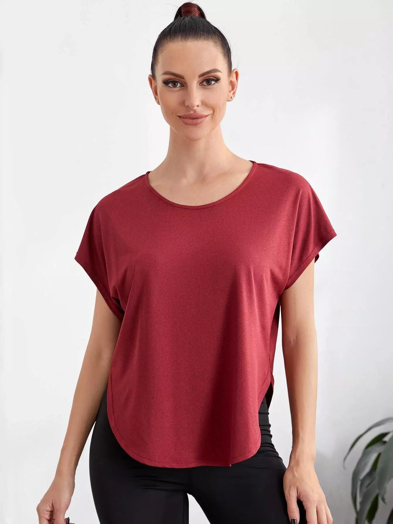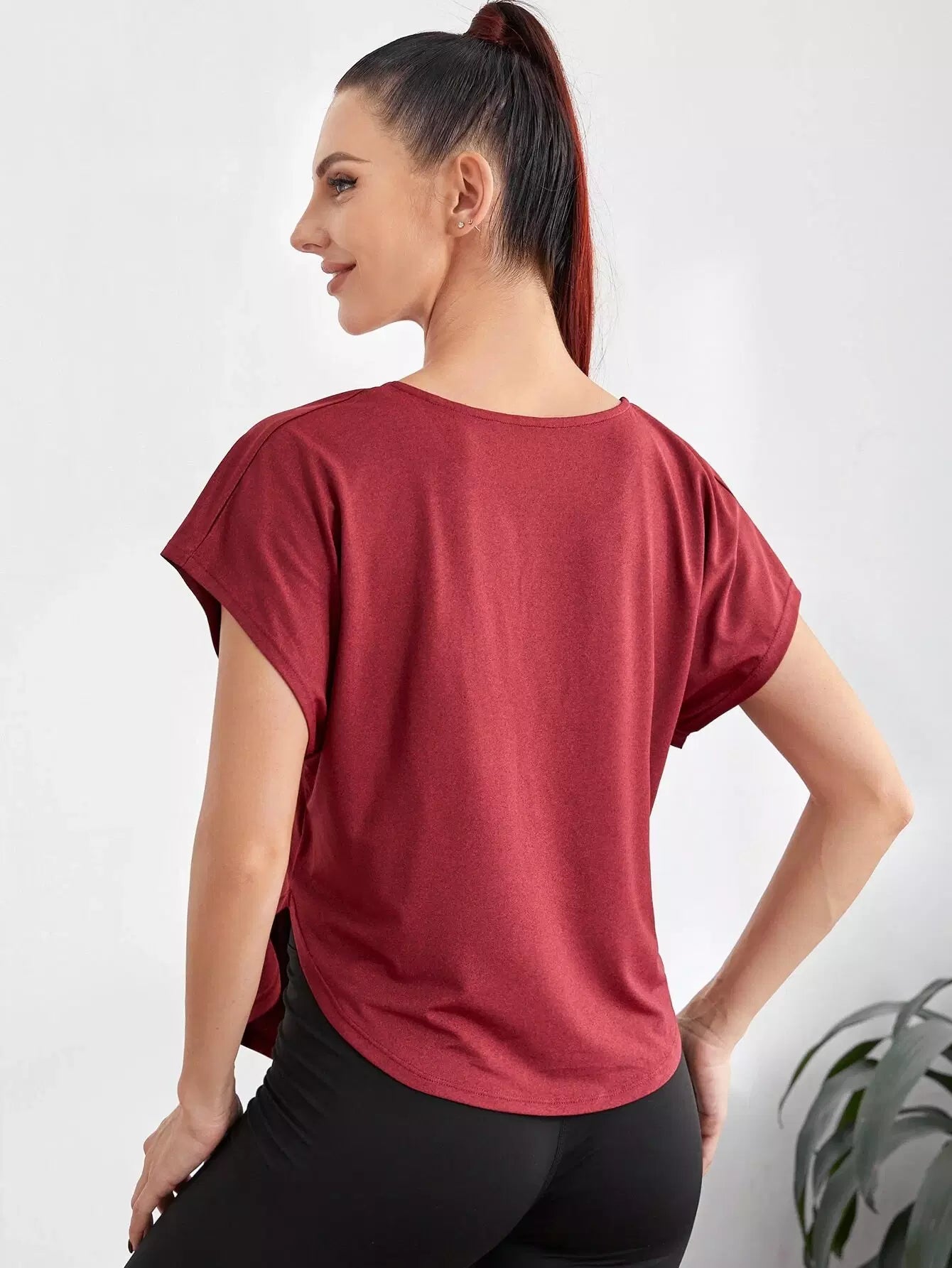 تي شيرت رياضي سادة بأكمام على شكل باتوينغ