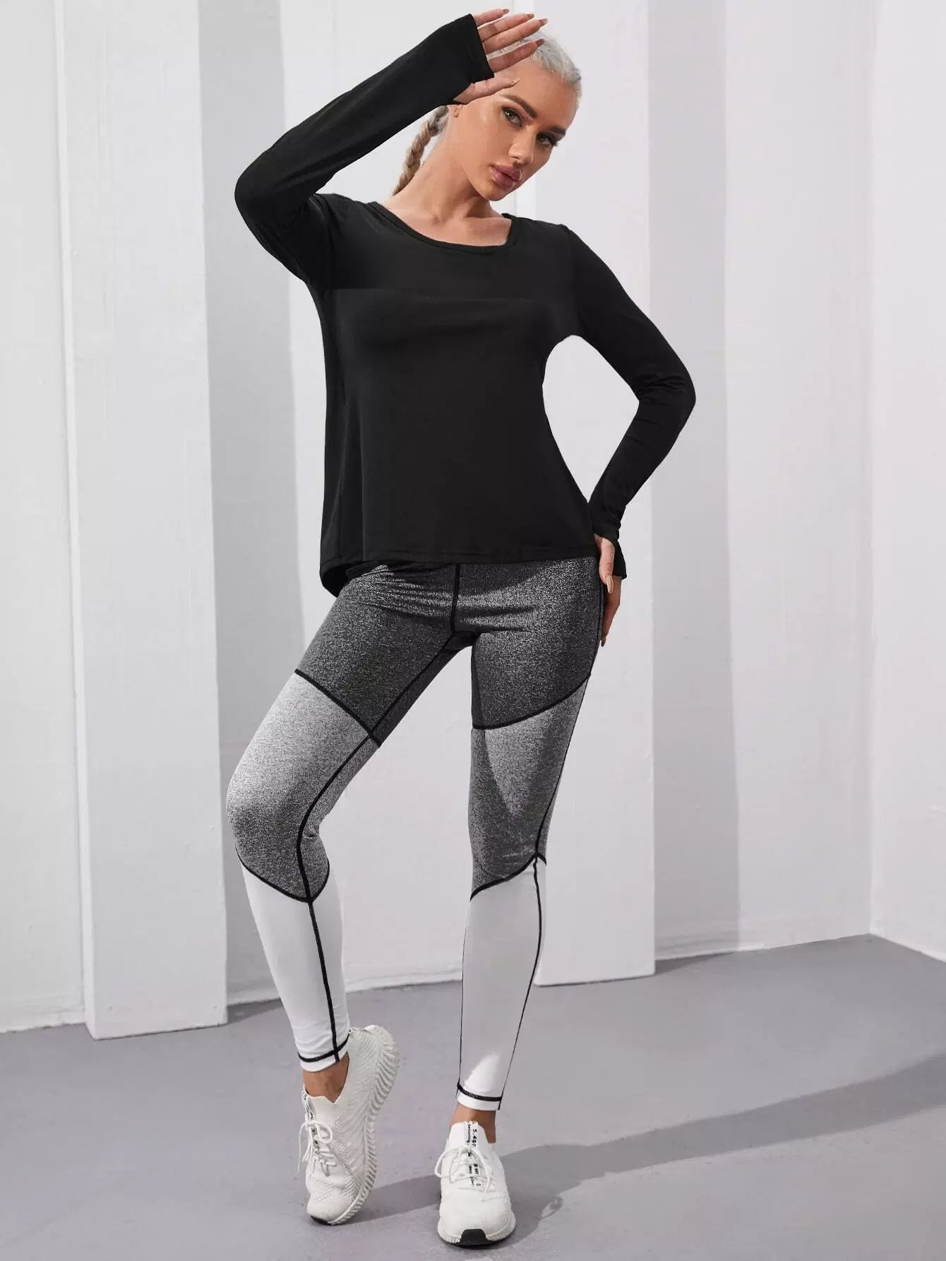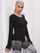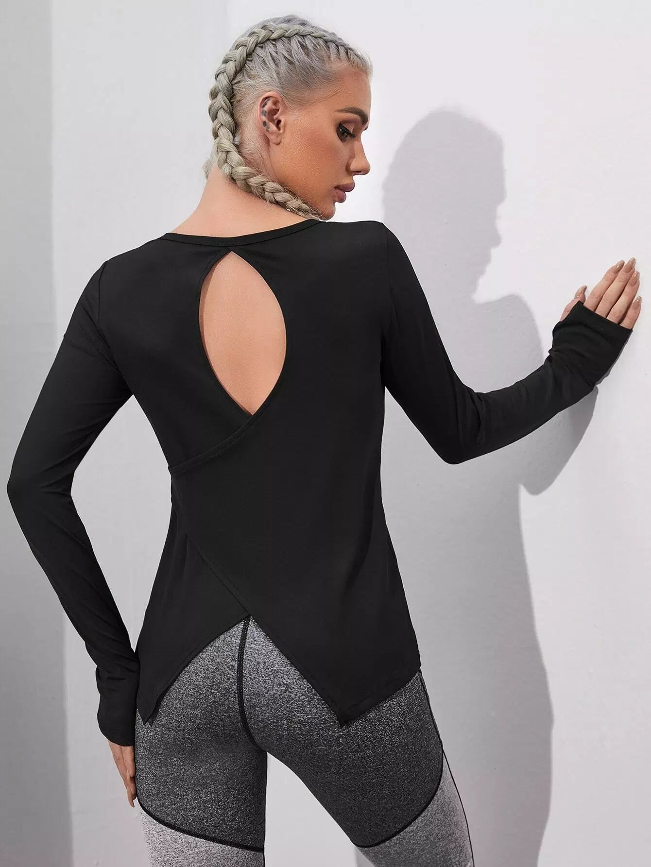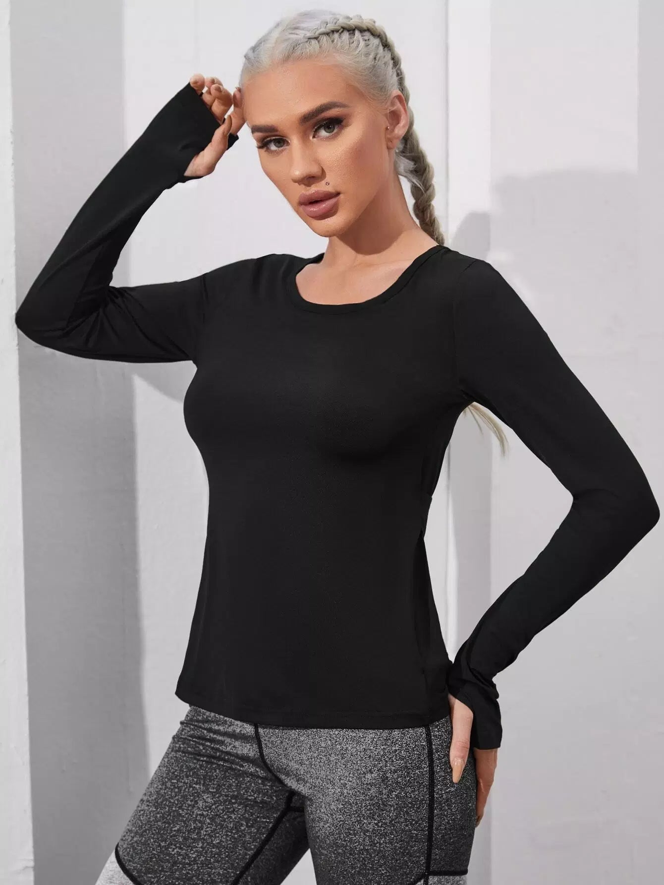 تي شيرت رياضي بقصّة من الخلف مع فتحات للإبهامين