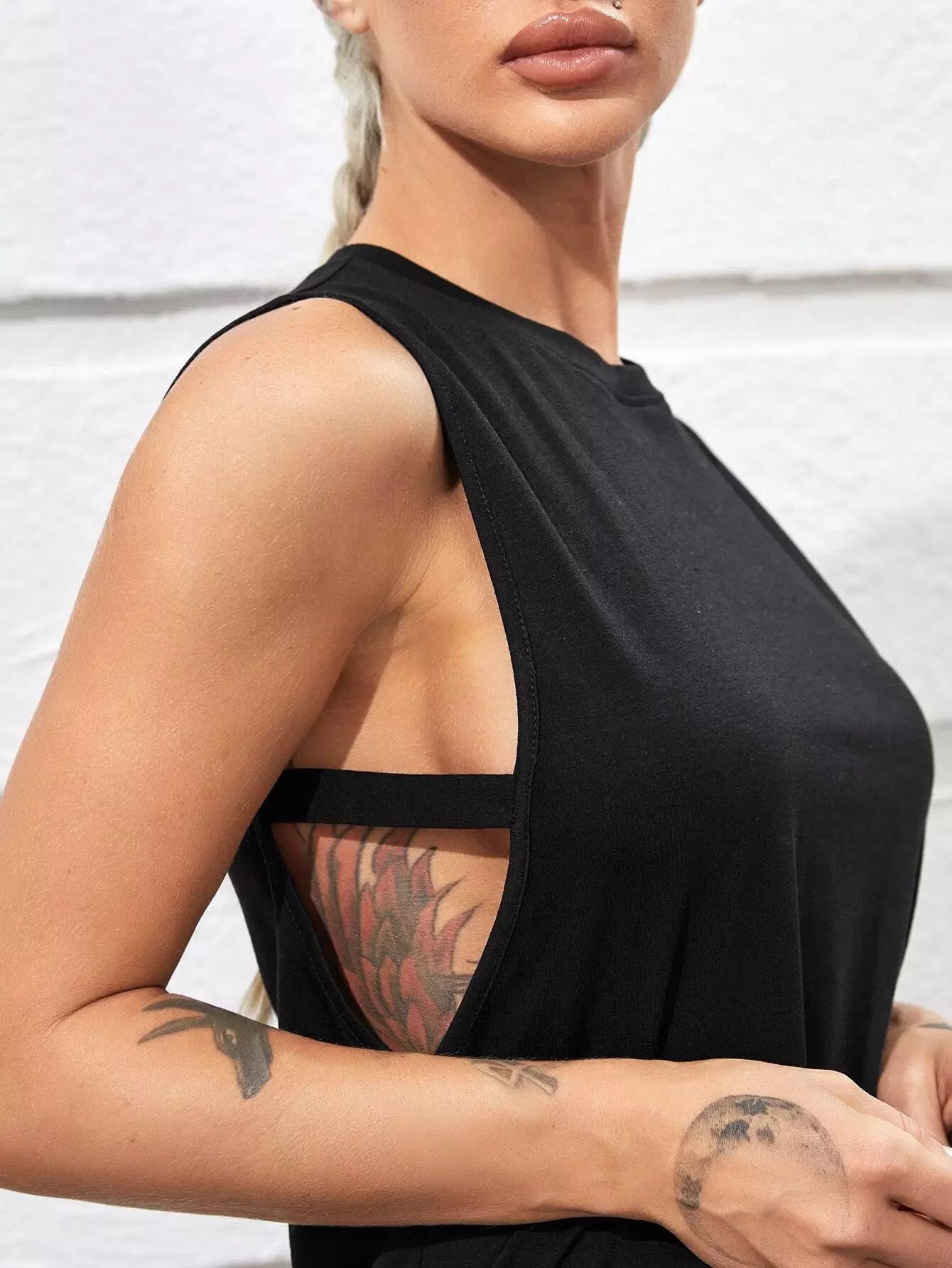 للنساء - قميص رياضي بدون أكمام بحاشية منحنية