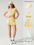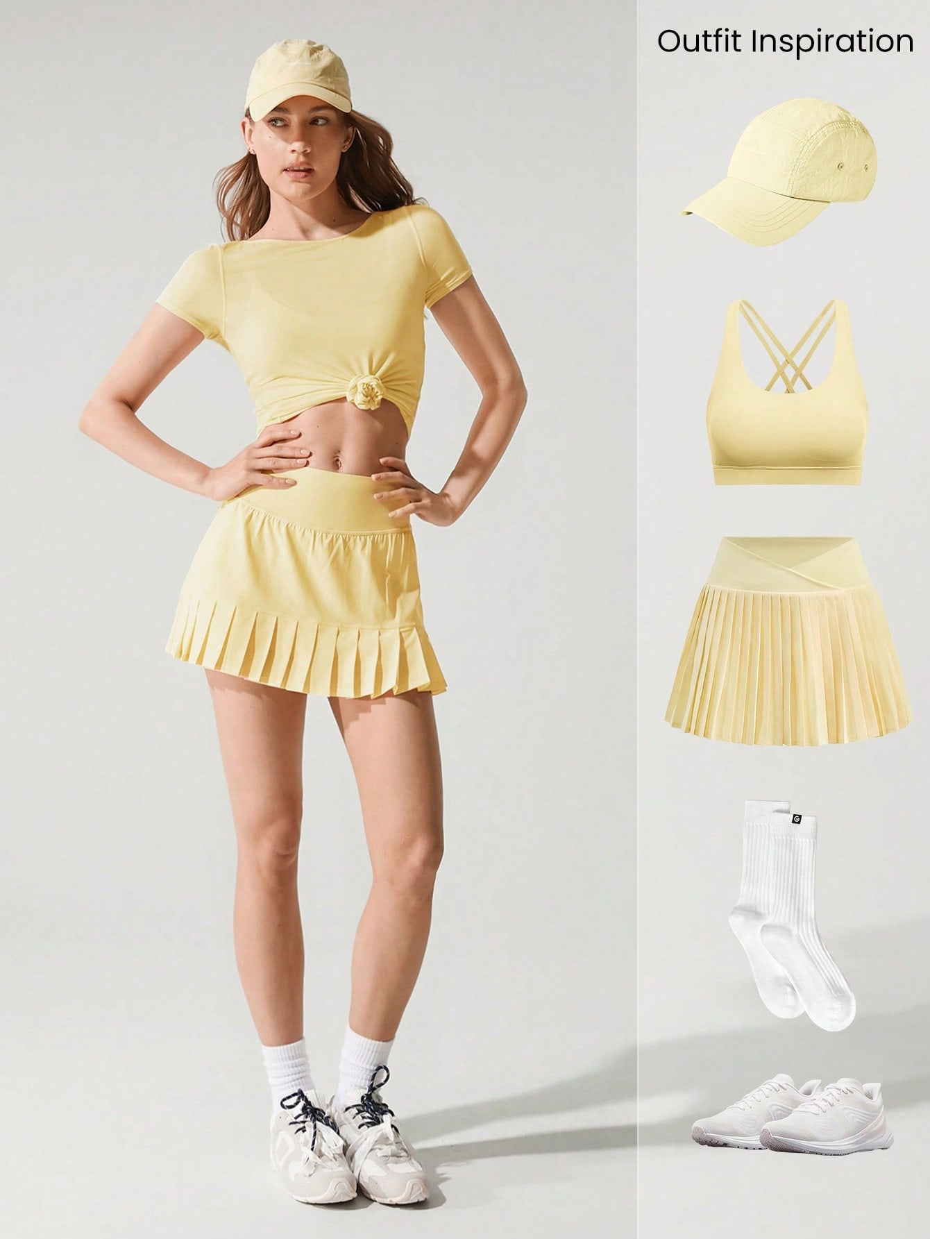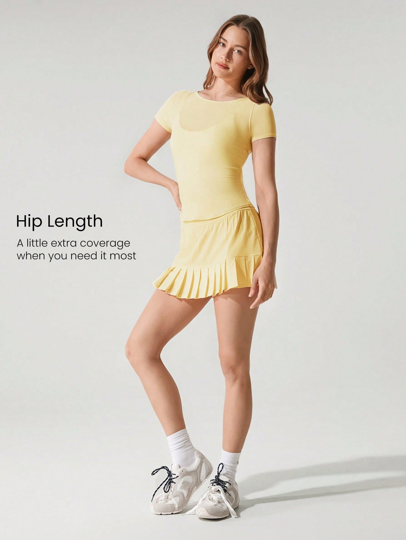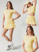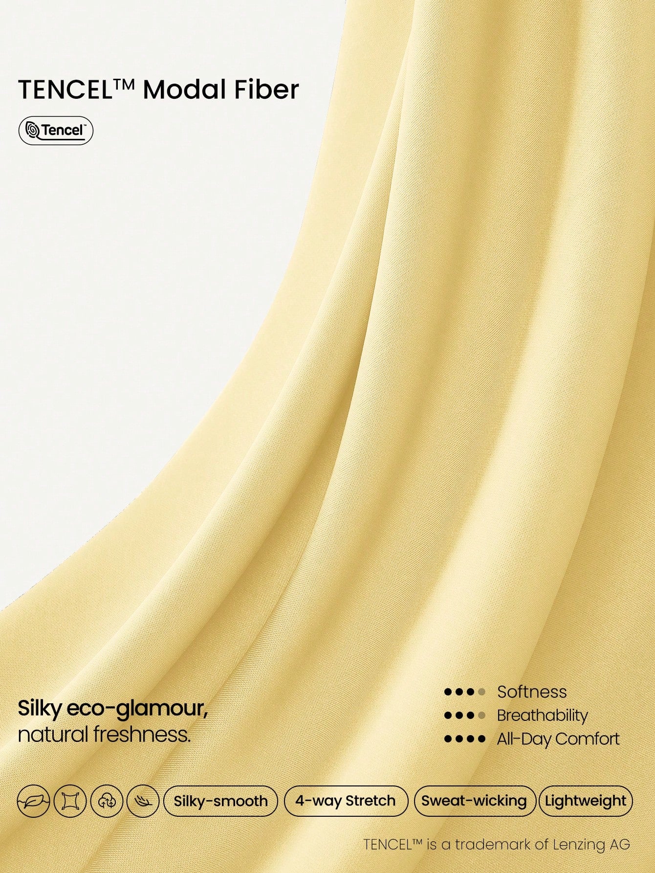 تي شيرت رياضي بأكمام قصيرة ورقبة قارب من GLOWMODE TENCEL™ مودال حريري ناعم معقود من الخلف للارتداء اليومي غير الرسمي