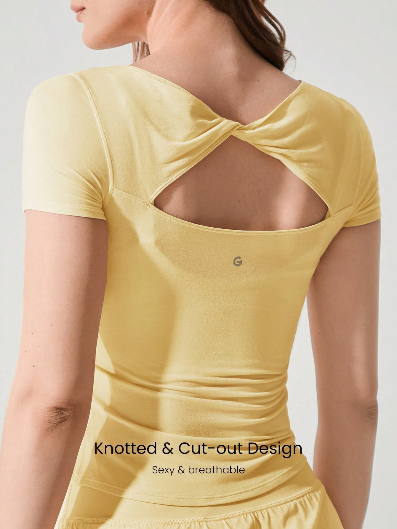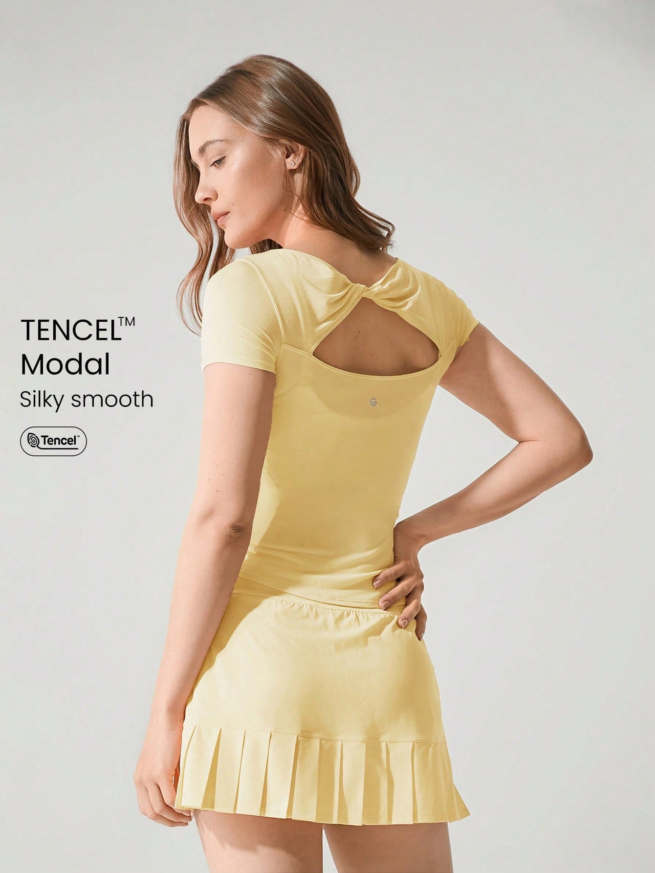 GLOWMODE TENCELâ„ Modal Silky Smooth Knotted Back Boat Neck Short Sleeve Active Tee Daily Casual Wear