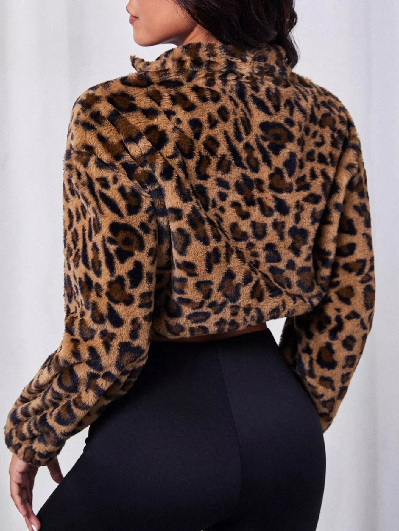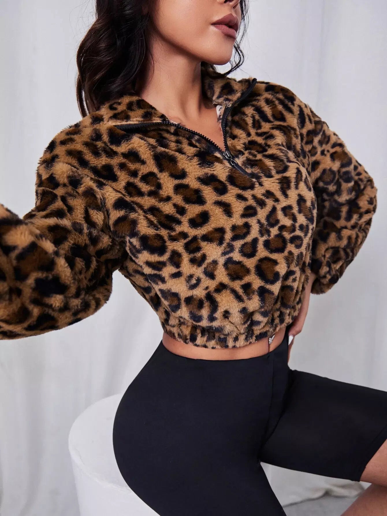 سويت شيرت رياضي تدفئة بنصف سحاب بنقشة جلد النمر