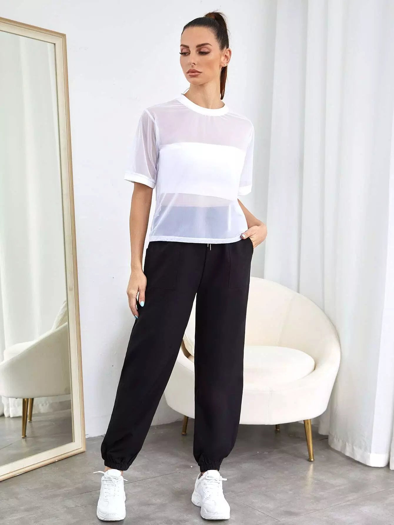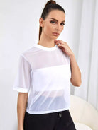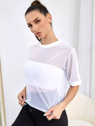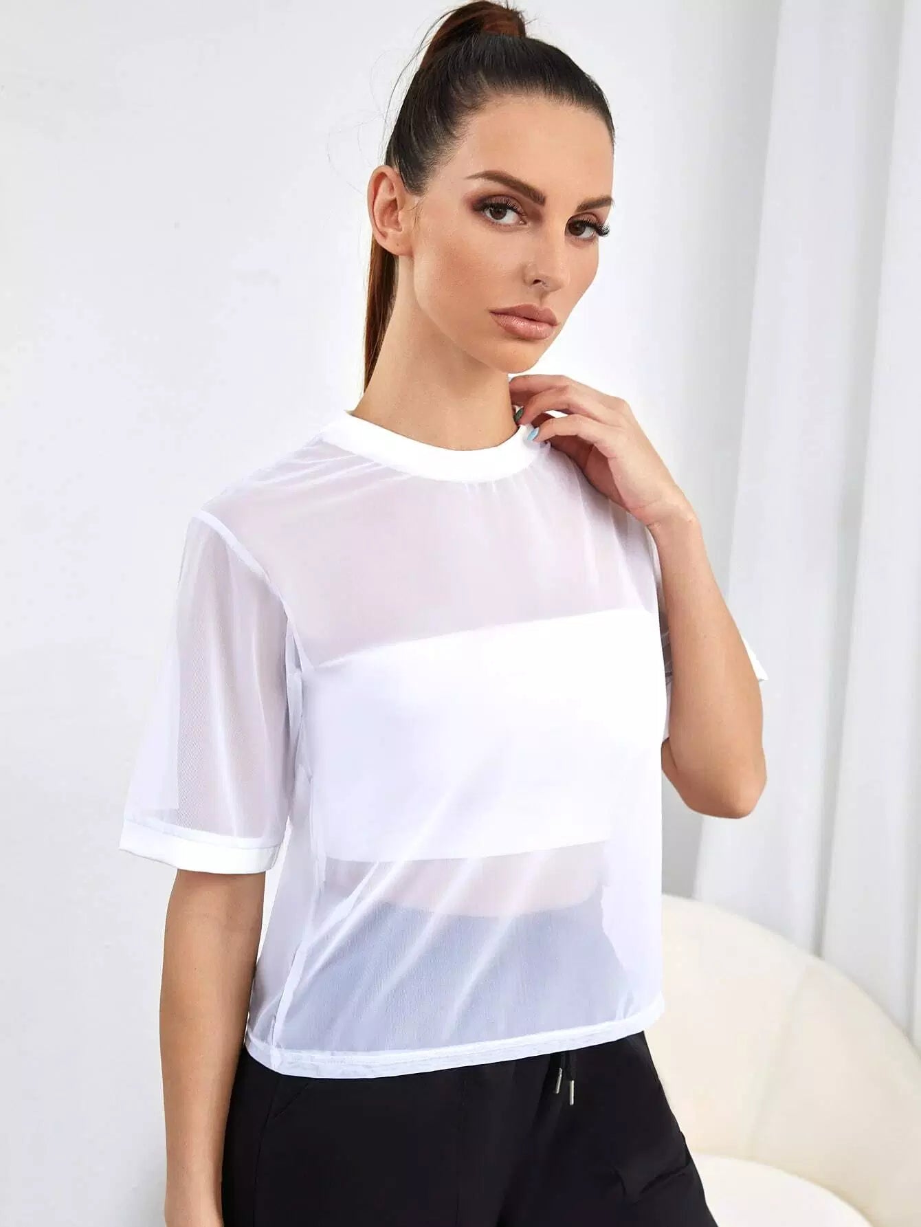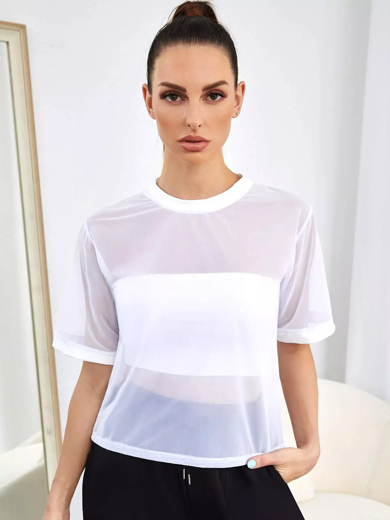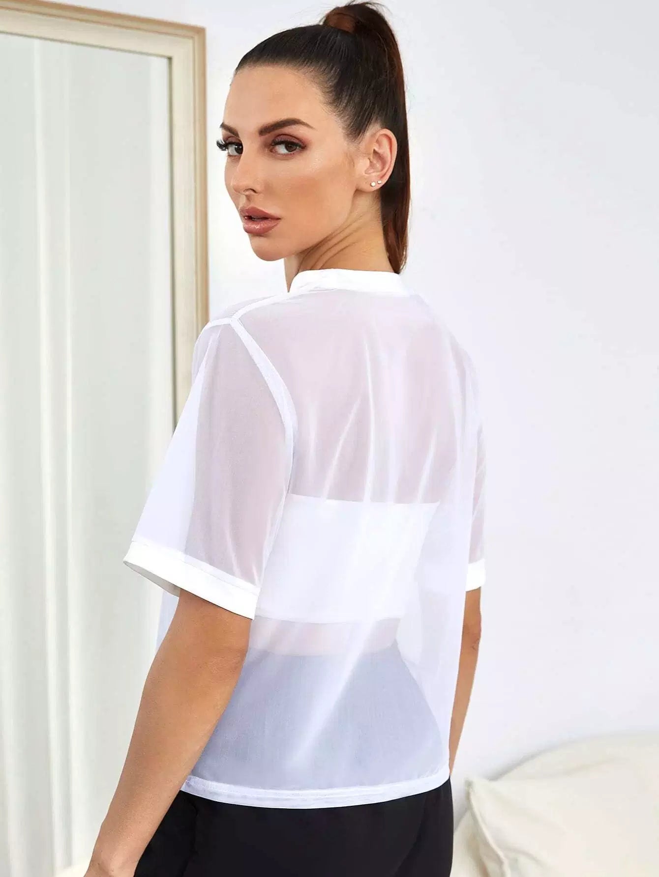 تي شيرت رياضي شبكي شفاف بدون حمالة صدر