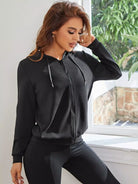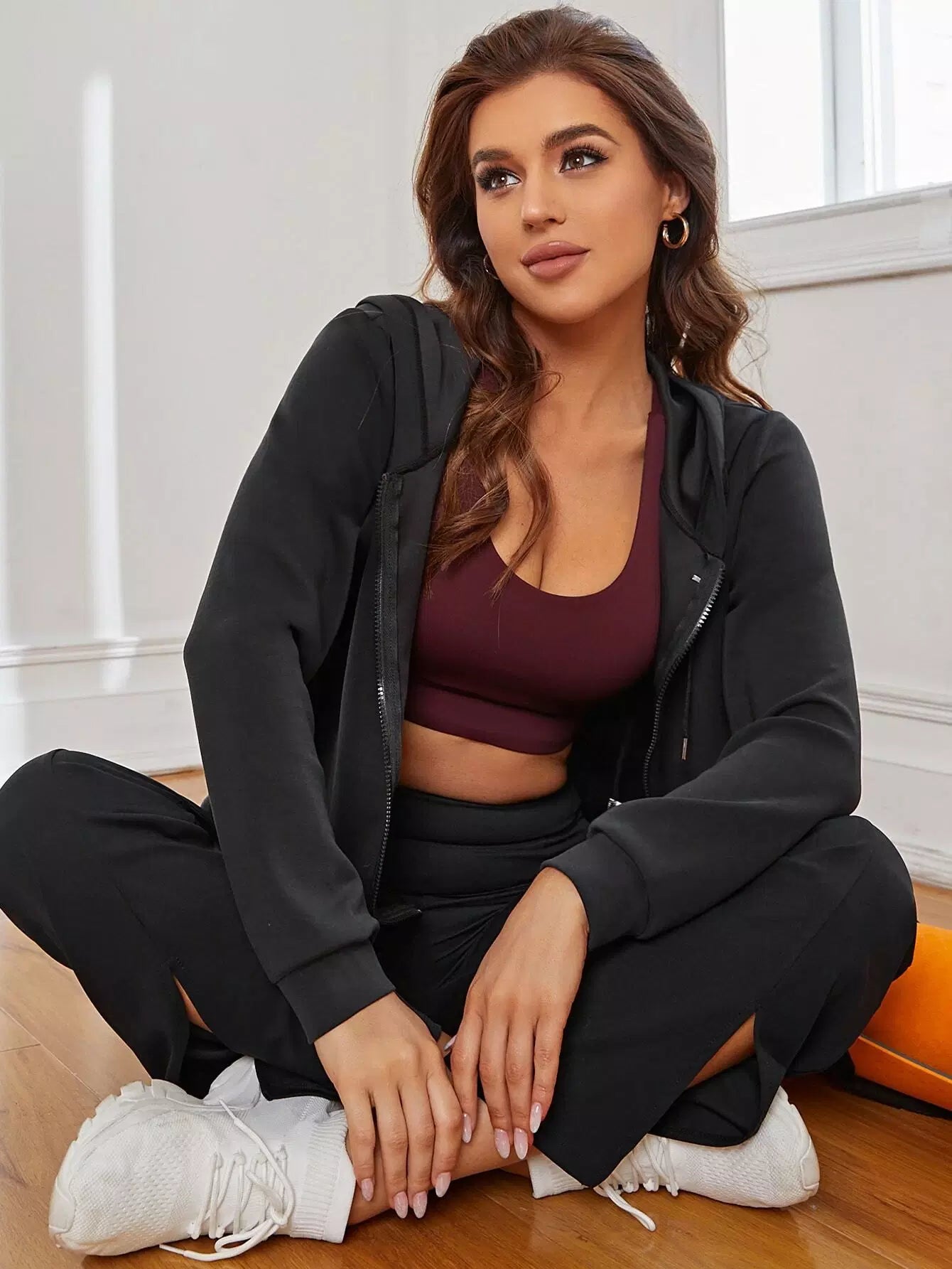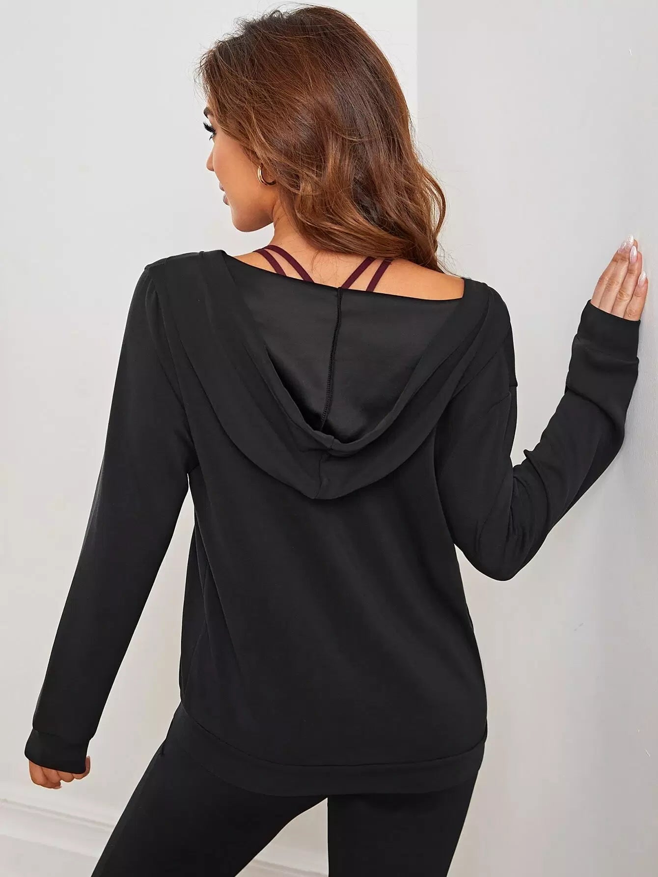 سويت شيرت رياضي بقلنسوة سادة بسحاب بسحاب لأعلى بقلنسوة