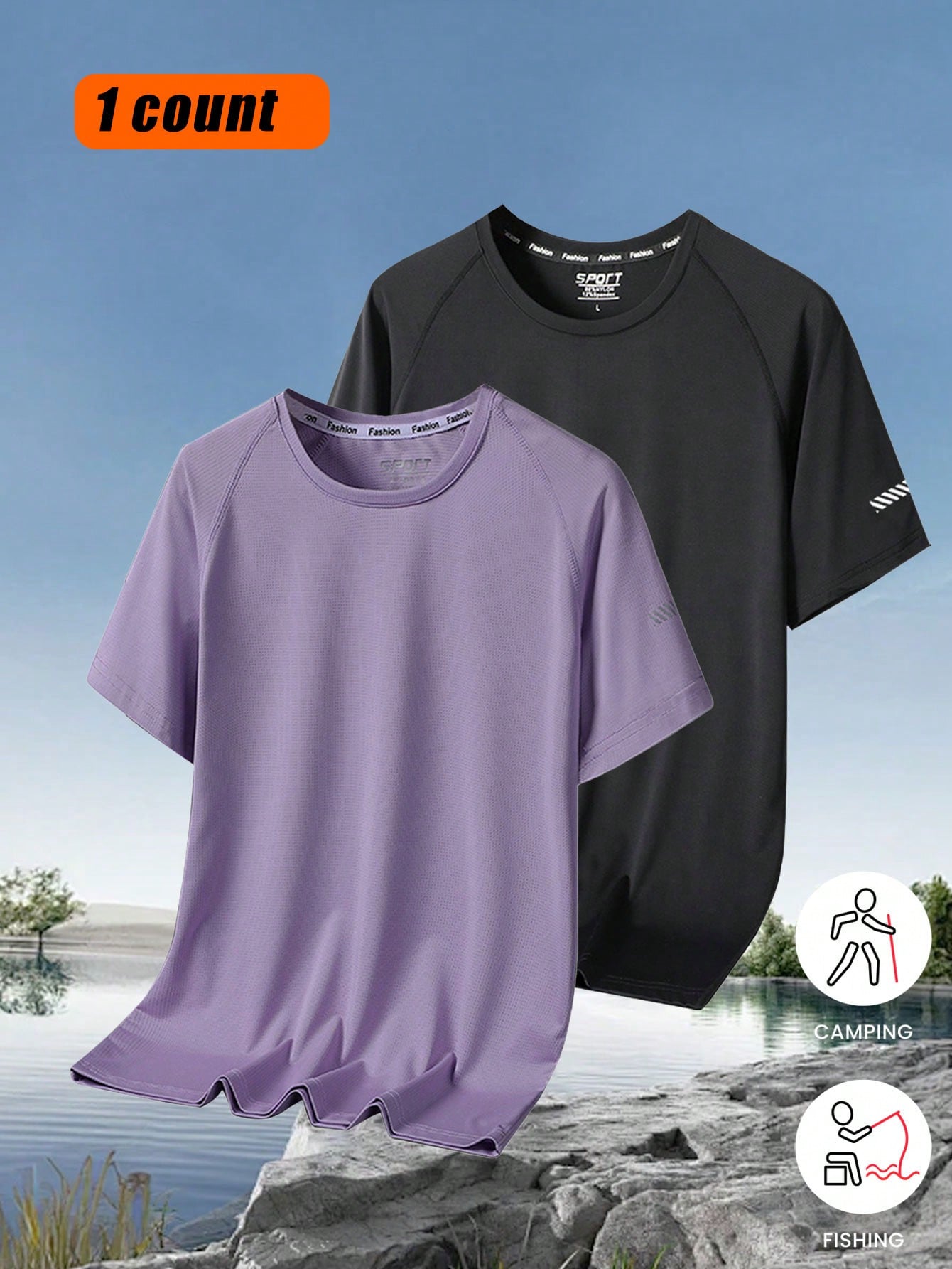 تي شيرت نسائي خارجي سريع الجفاف بأكمام قصيرة لممارسة رياضة الجري وخفيف الوزن وقابل للتنفس