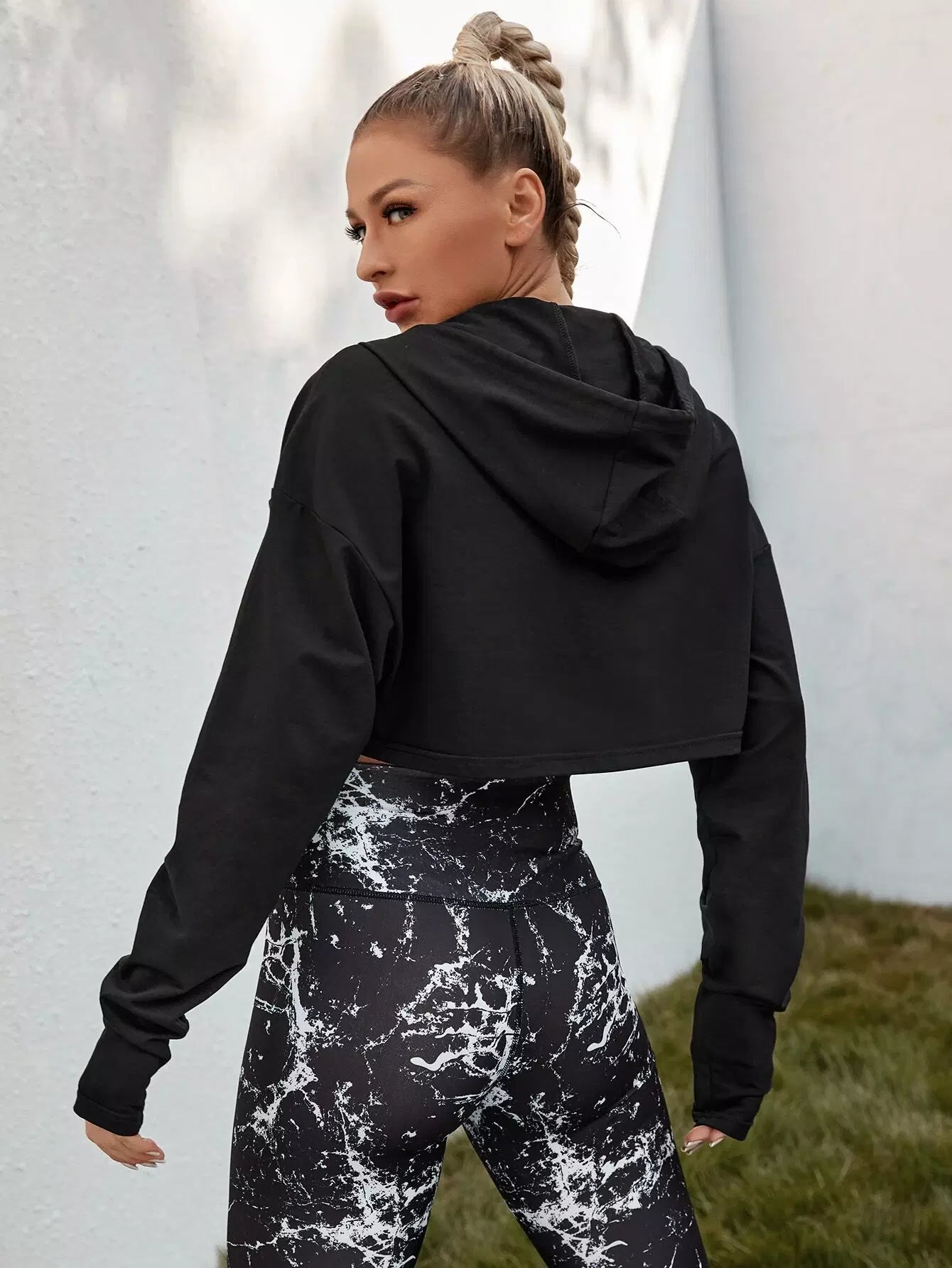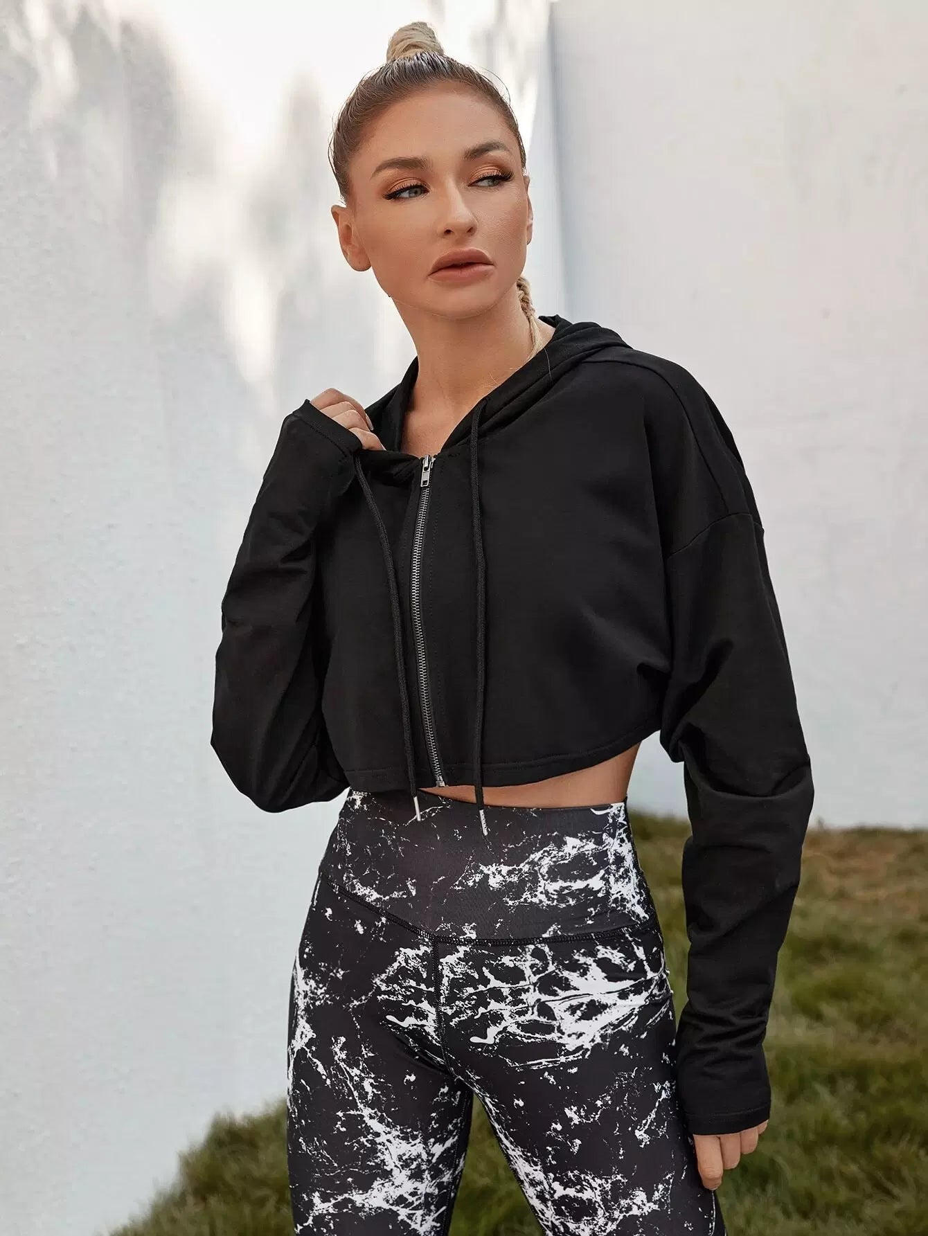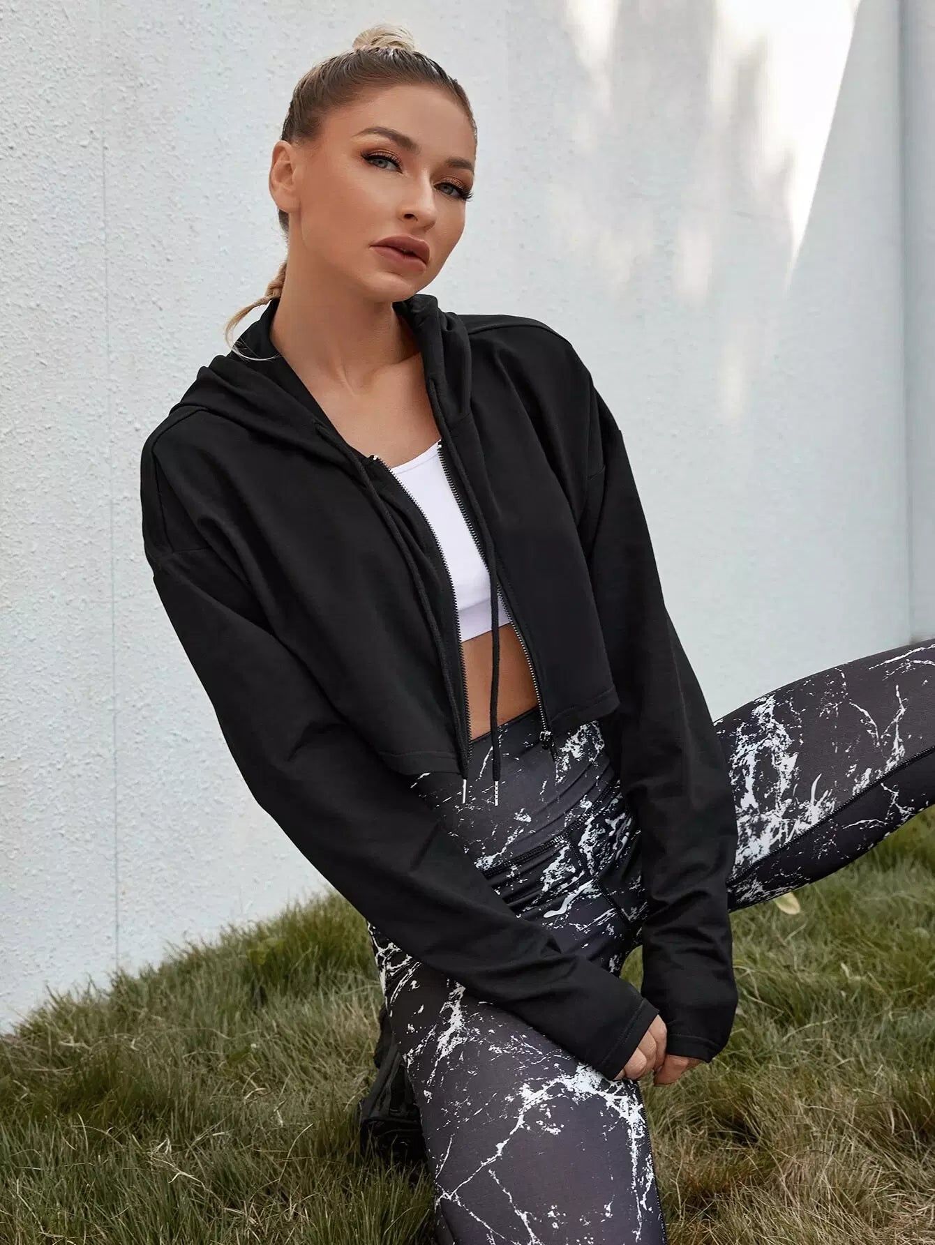 جاكيت رياضي قصير بقبعة بغطاء للرأس بسحاب
