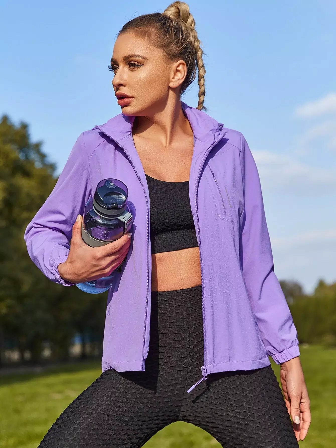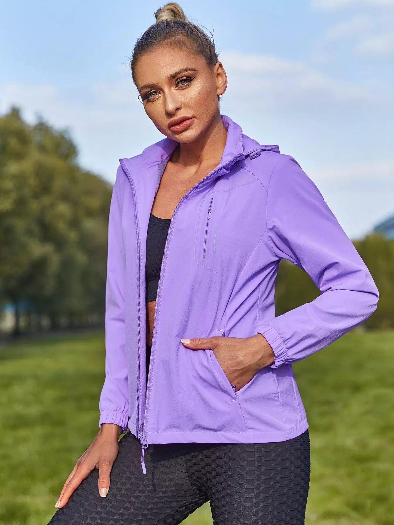جاكيت رياضي بقلنسوة بسحاب