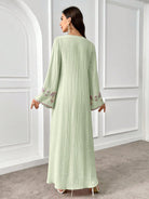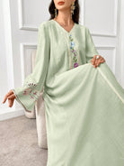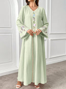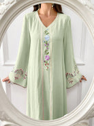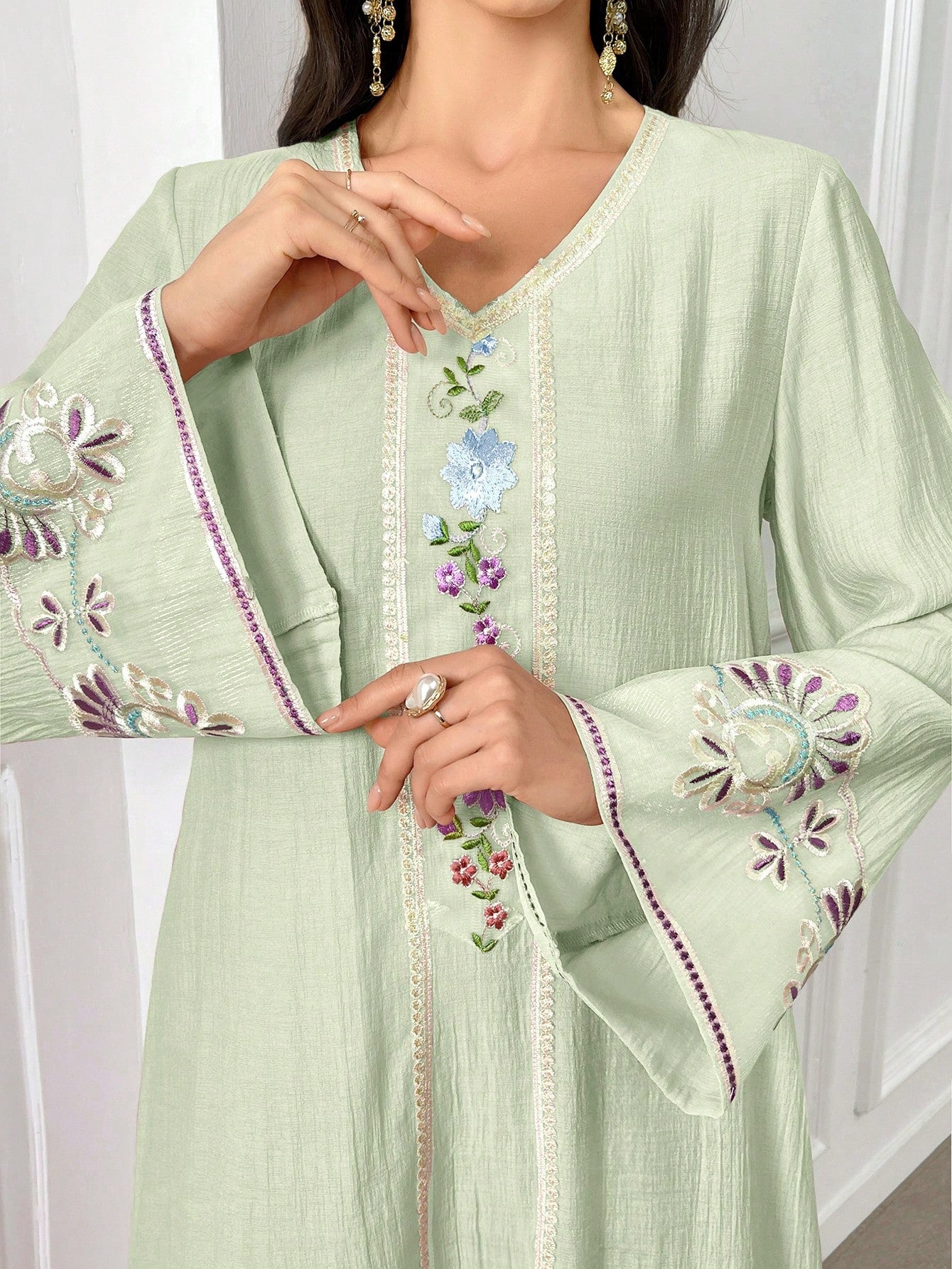 فستان النجمة النسائي الأنيق ذو الأكمام الواسعة والمطرز بالورود، بتصميم عربي طويل، محتشم