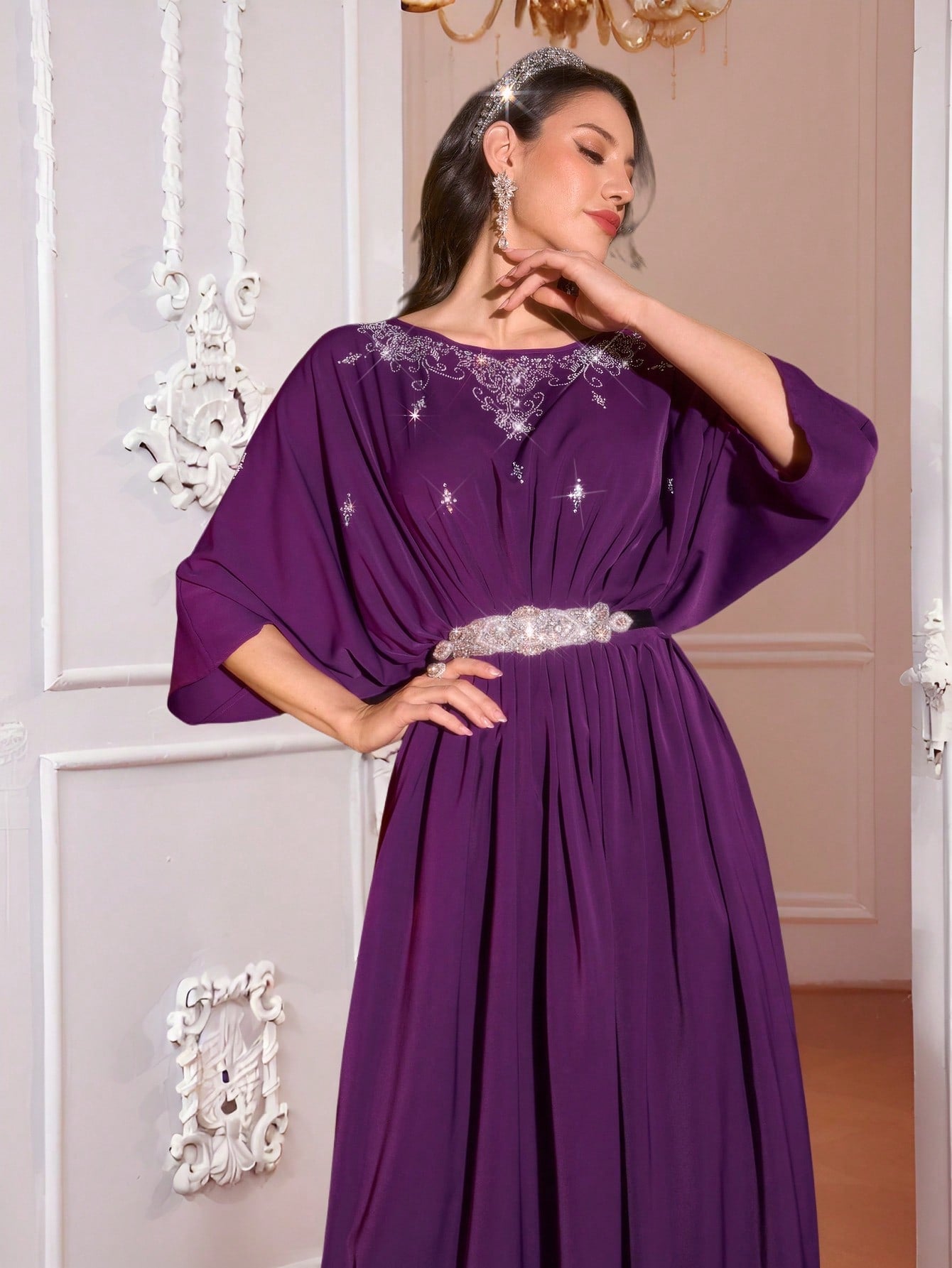 النجمة عباية تركية وفستان عربي تقليدي طويل، قفطان وجلابية