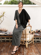 فستان قميص مخطط بطبعات زهور بدون حزام